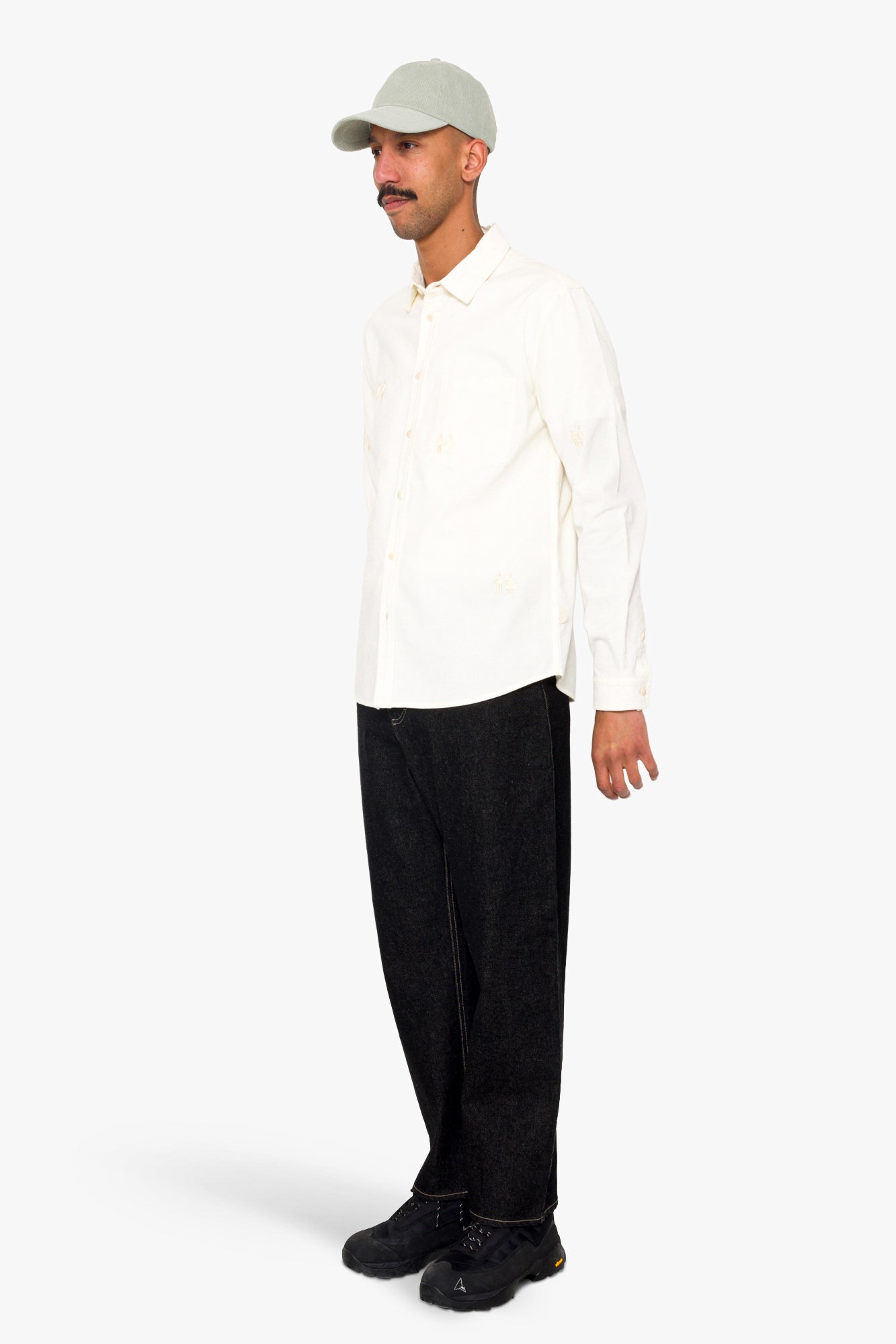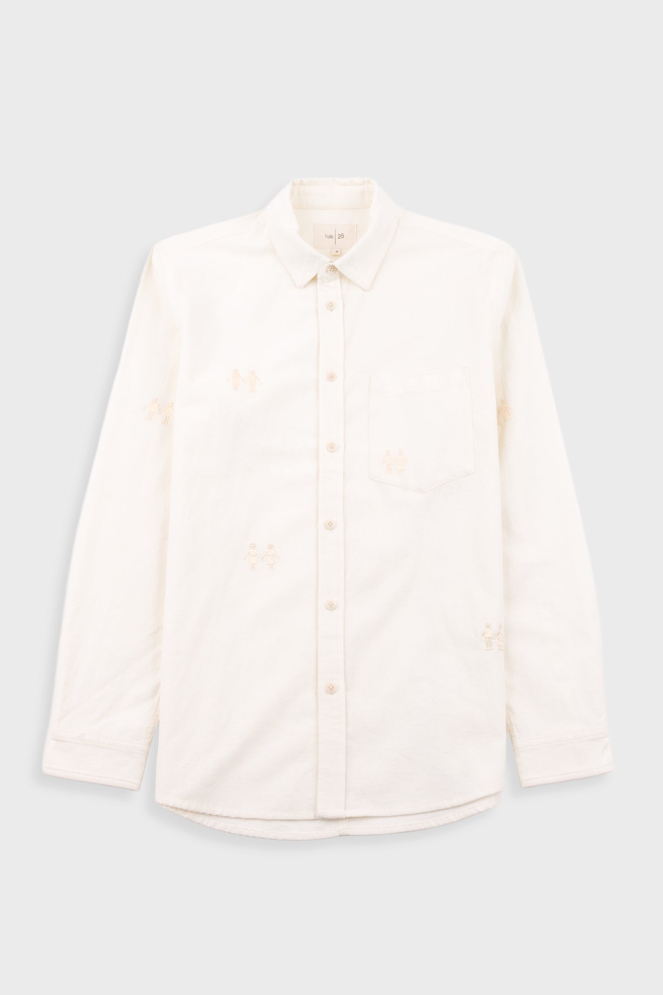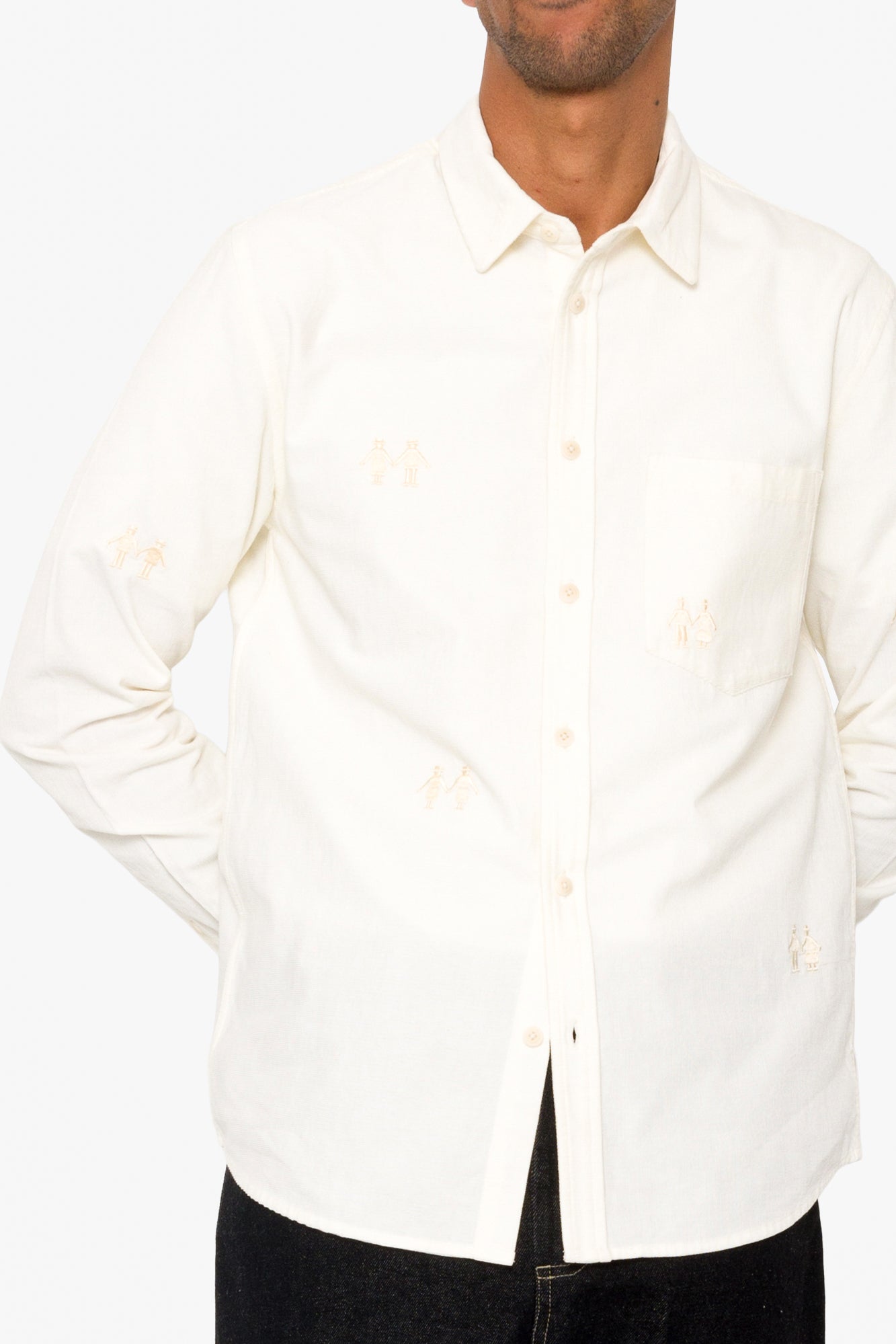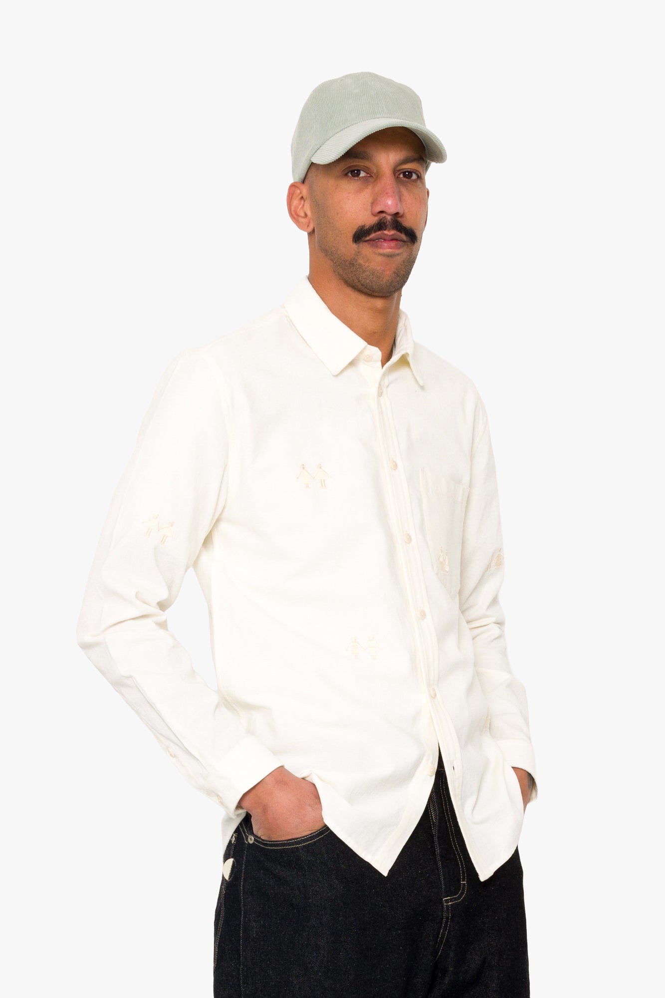 Our Direction Babycord Shirt has a relaxed fit. It features a patch pocket at the chest and Corozo nut buttons and is designed in cotton fine wale corduroy fabric with our 'Folk people' embroidered in tonal stitching across the surface.