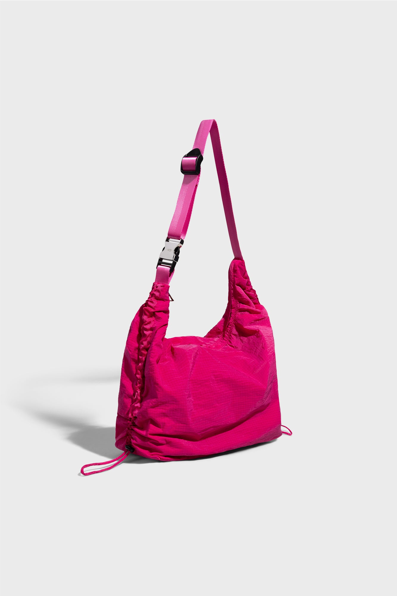 A perfect everyday bag, so big that it becomes part of your outfit and featuring draw strings either side to compact itself and hide under your arm.