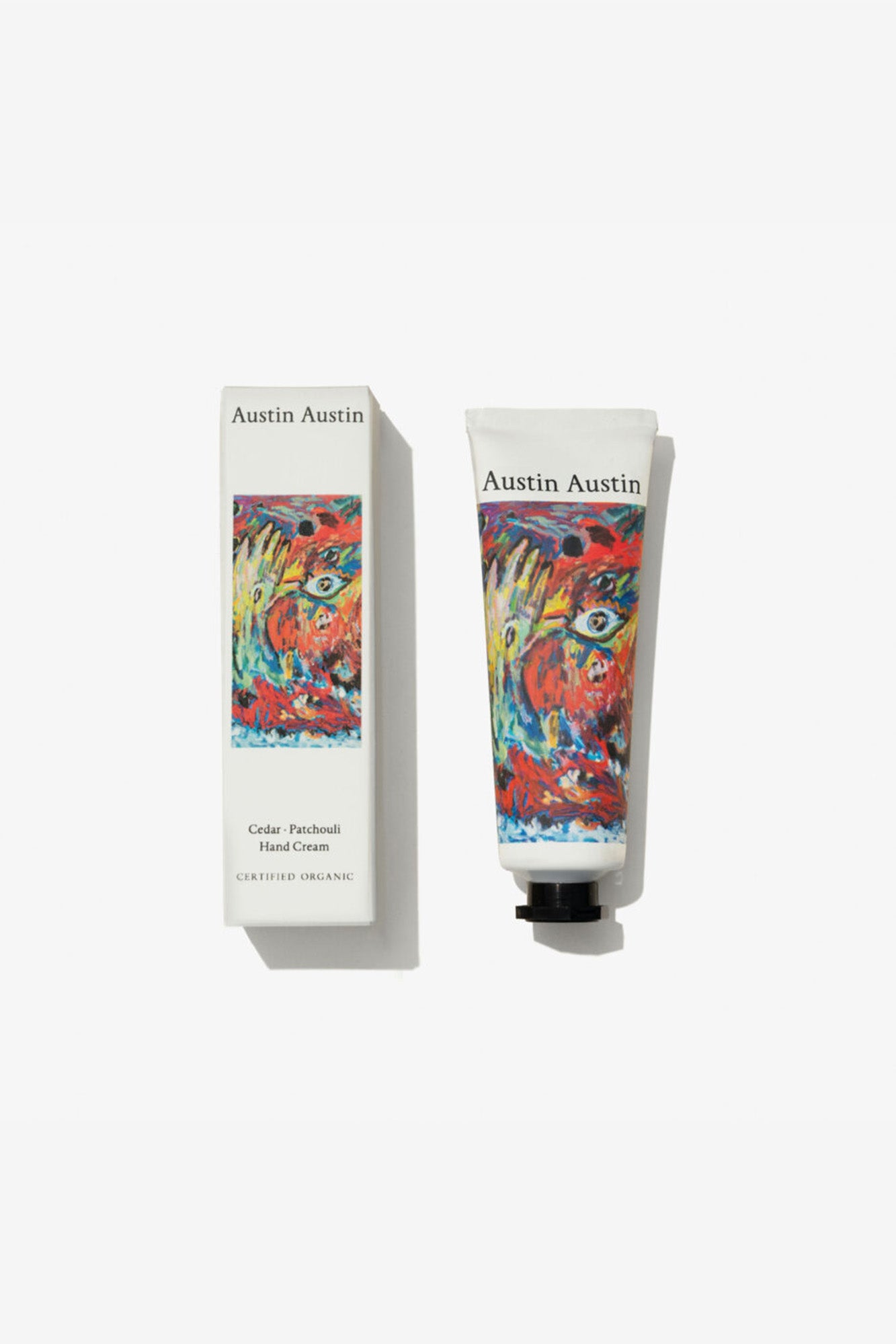 The hand cream features the artwork Magic Hand by Rubenstein, which