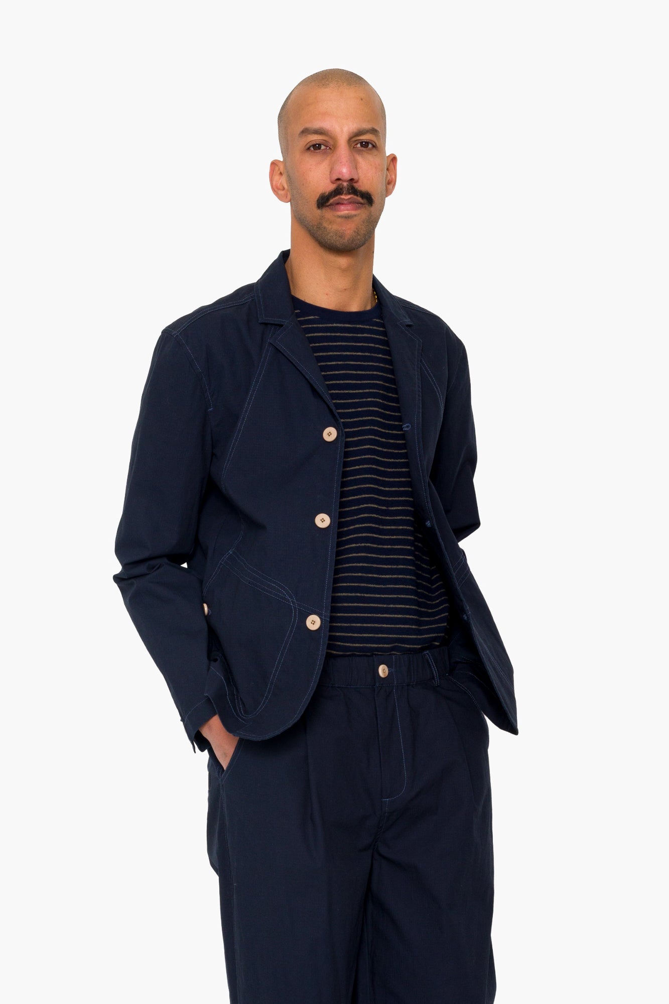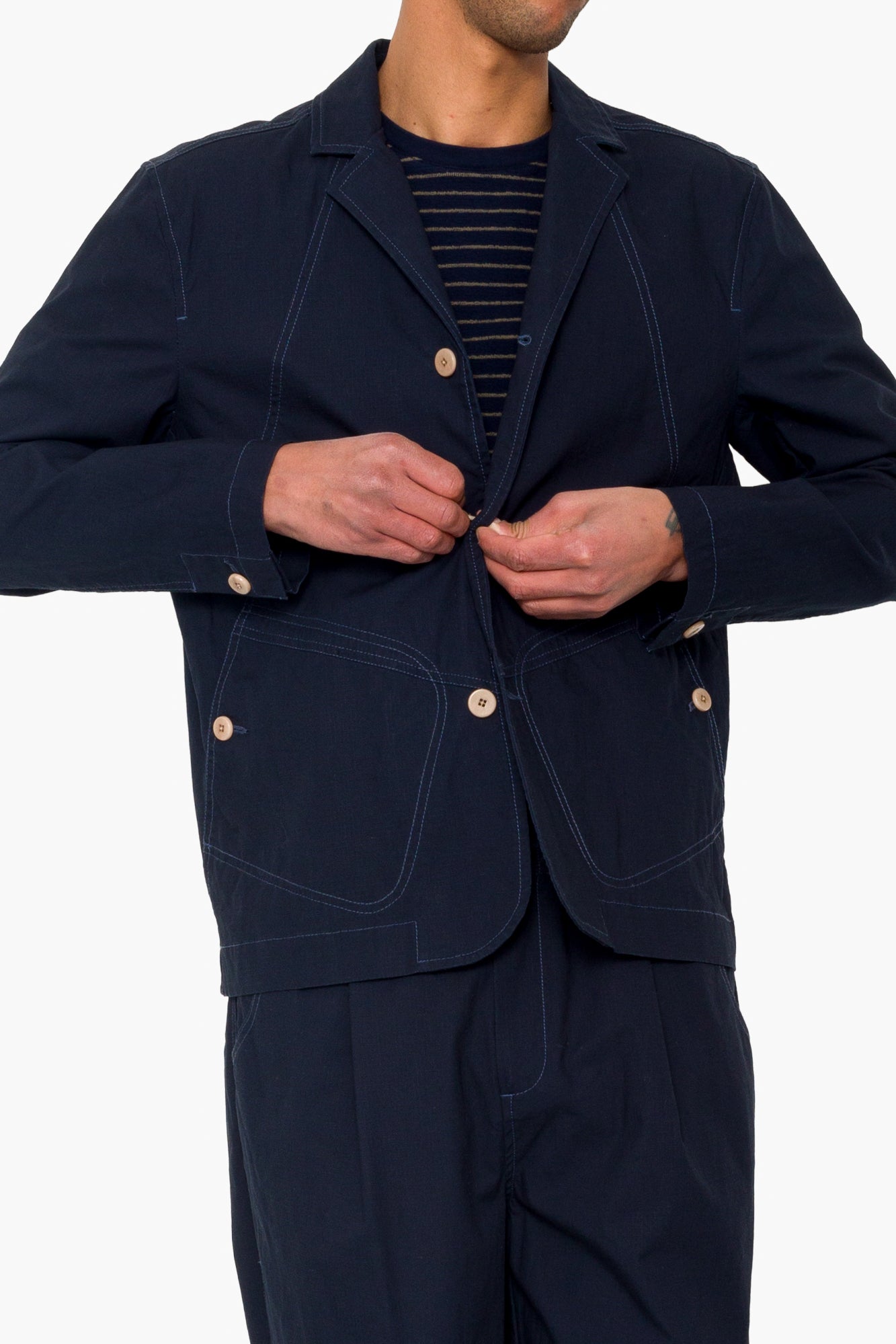 A new offering to our soft tailoring collection, the Anniversary Blazer, designed in a compact cotton ripstop fabric from Spain and cut with a relaxed fit, drawing inspiration from an Archival Folk design.