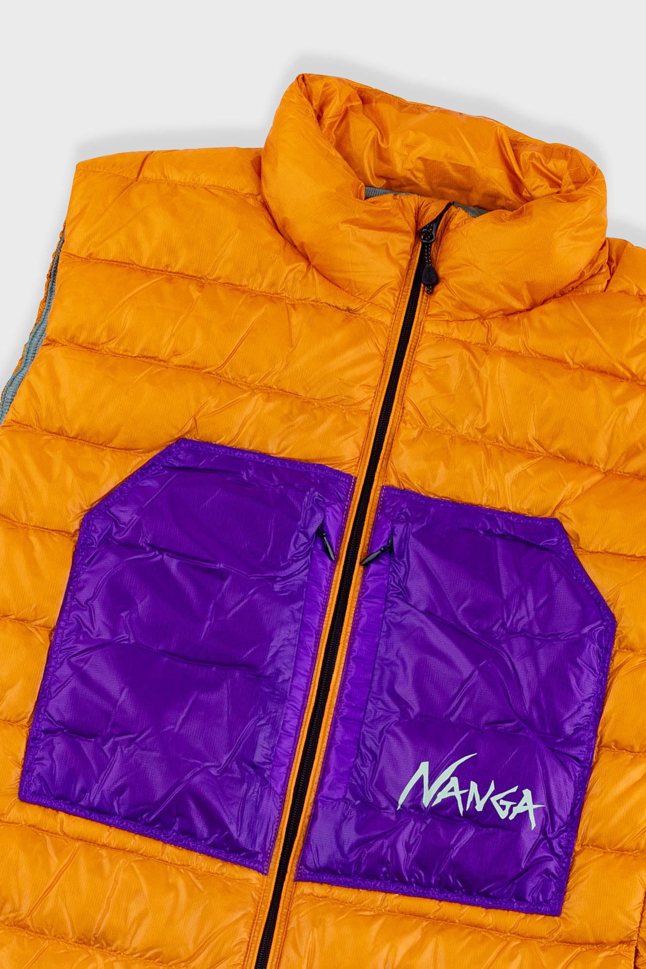 Hyper-light. Nanga’s Ultilight Down packable vest is for the ultralight crowd. With an emphasis on minimising weight, it’s produced in a featherweight nylon ripstop with narrow baffles and a 750-fill-power down sourced from Spain.