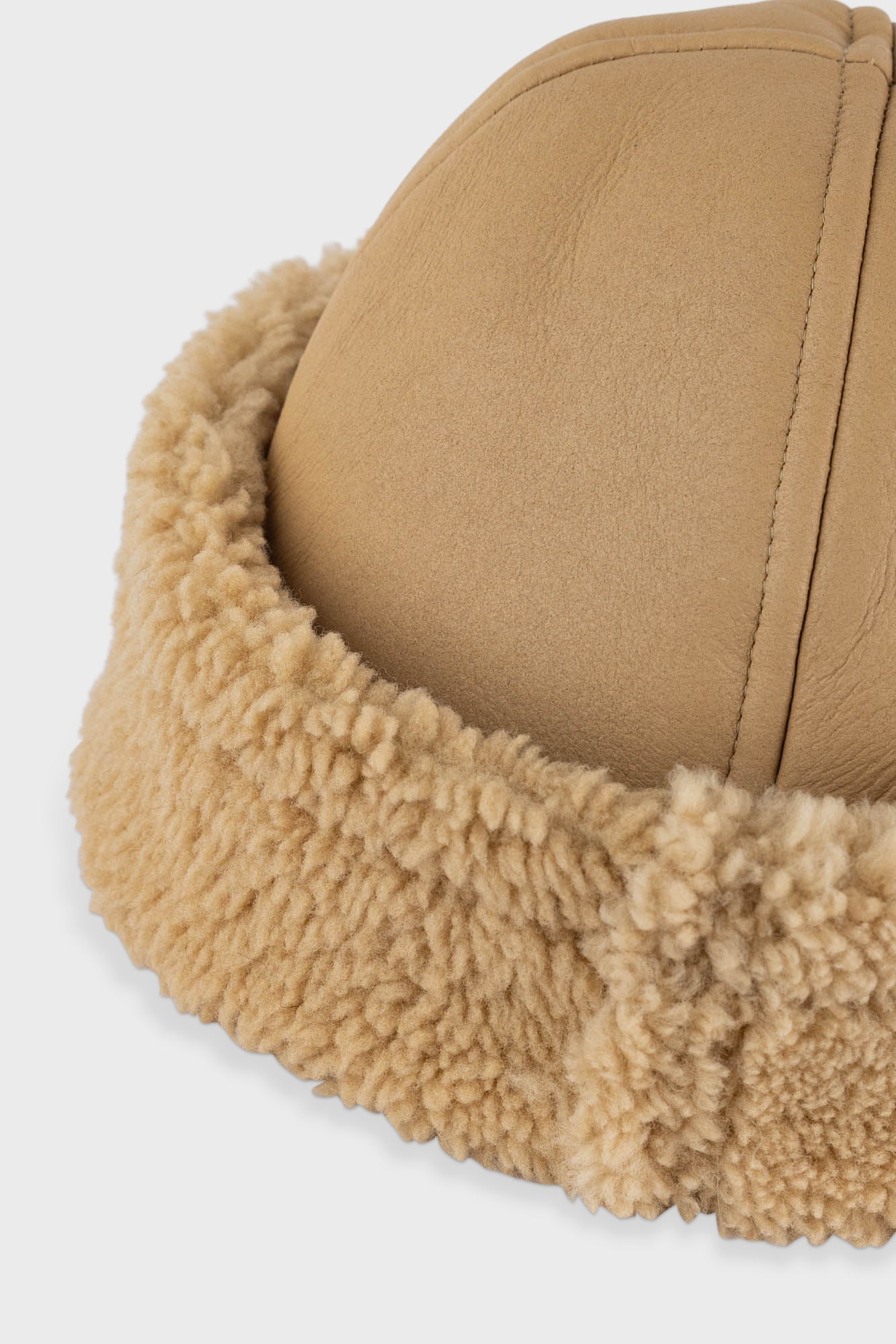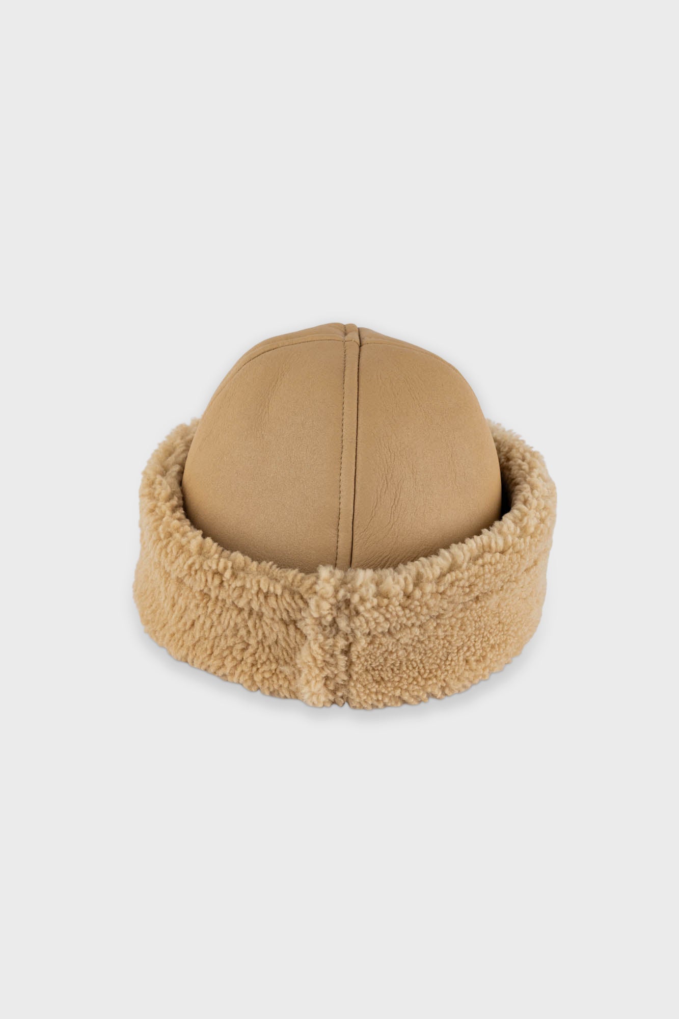 OUR CLASSIC SHEEPSKIN CAP, IN A SUEDE BACK WITH CURLY HAIR INTERIOR. SUPER WARM AND COZY, PERFECT FOR A COLD DAY.