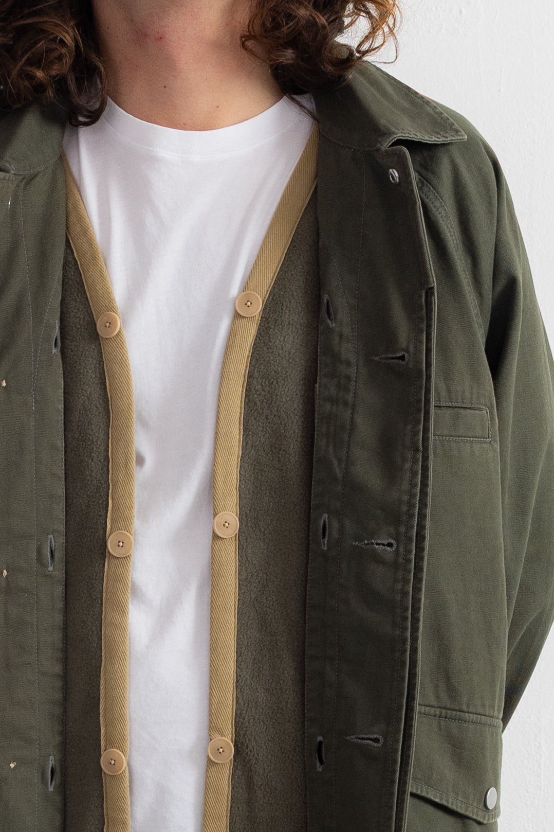 A heavyweight cotton coat with detachable fleece liner for extra warmth.
