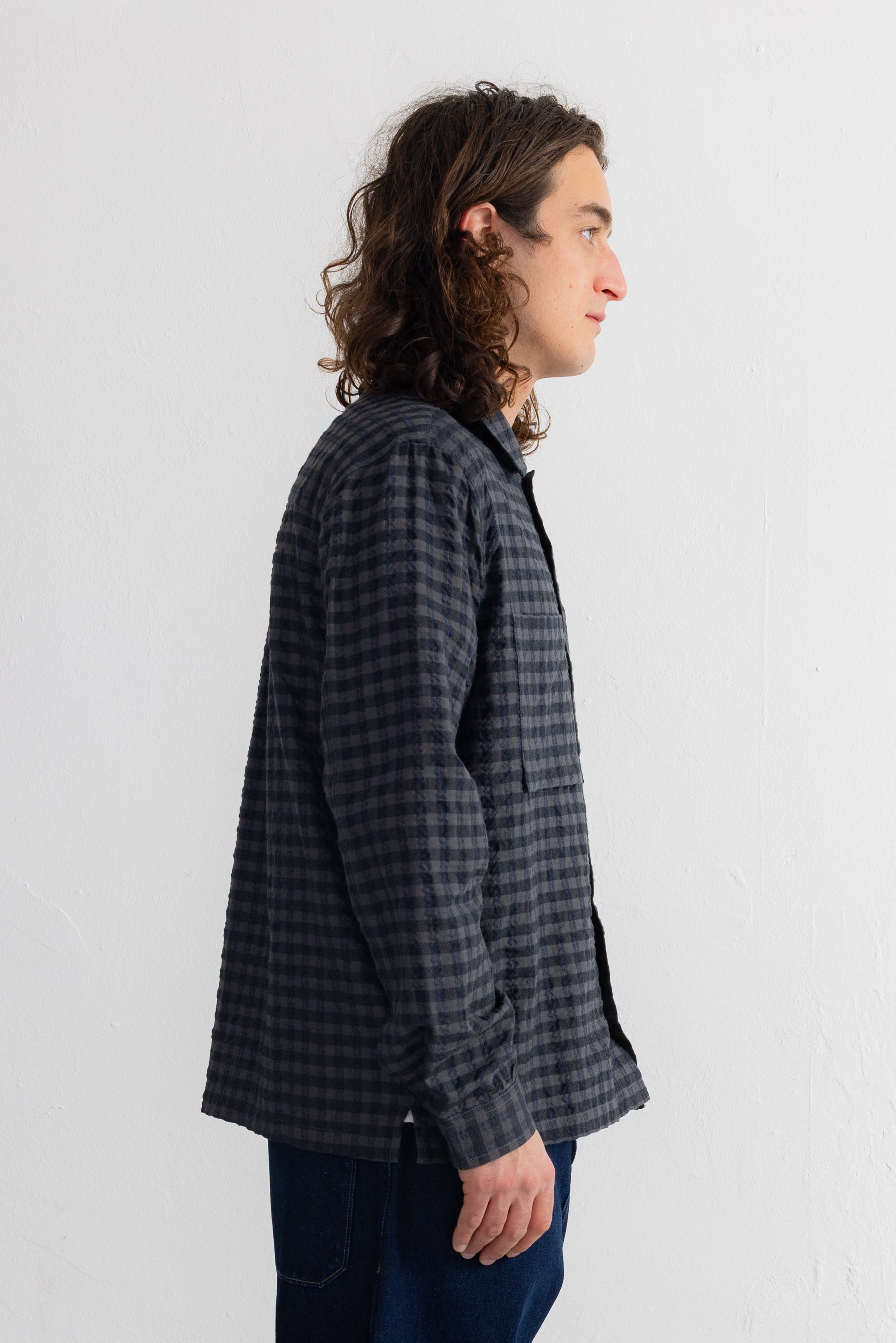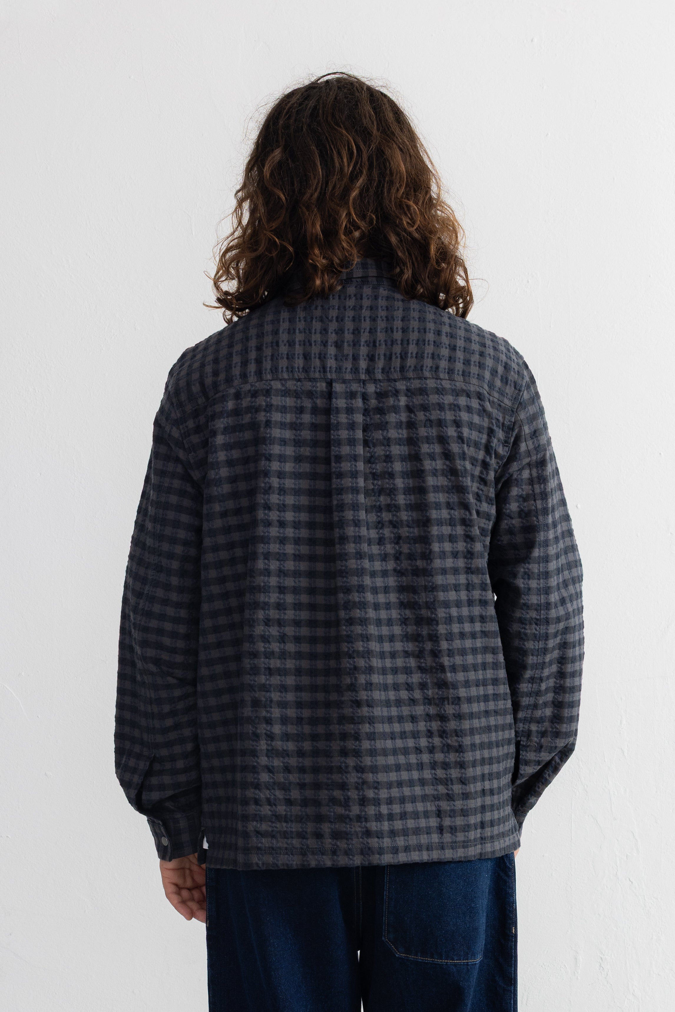 Patch Overshirt - Navy Crinkle Check
