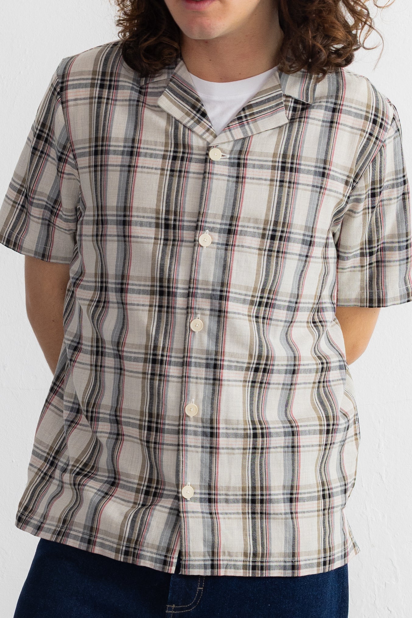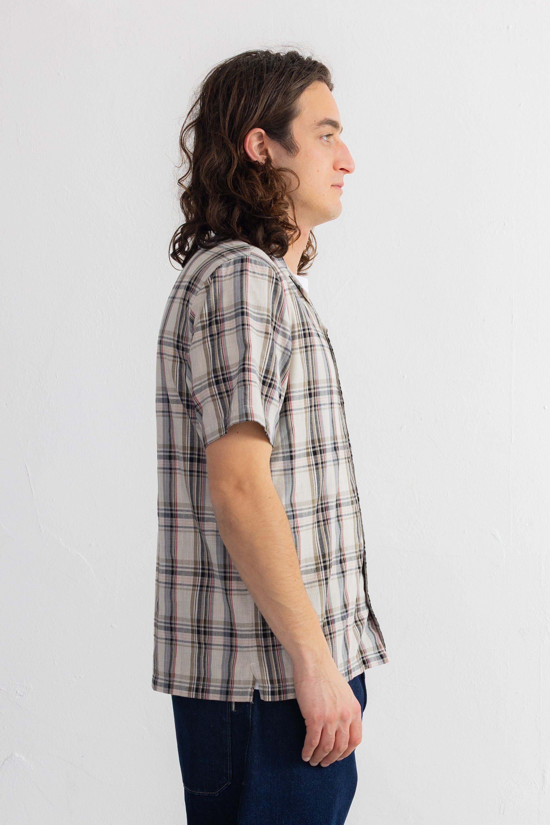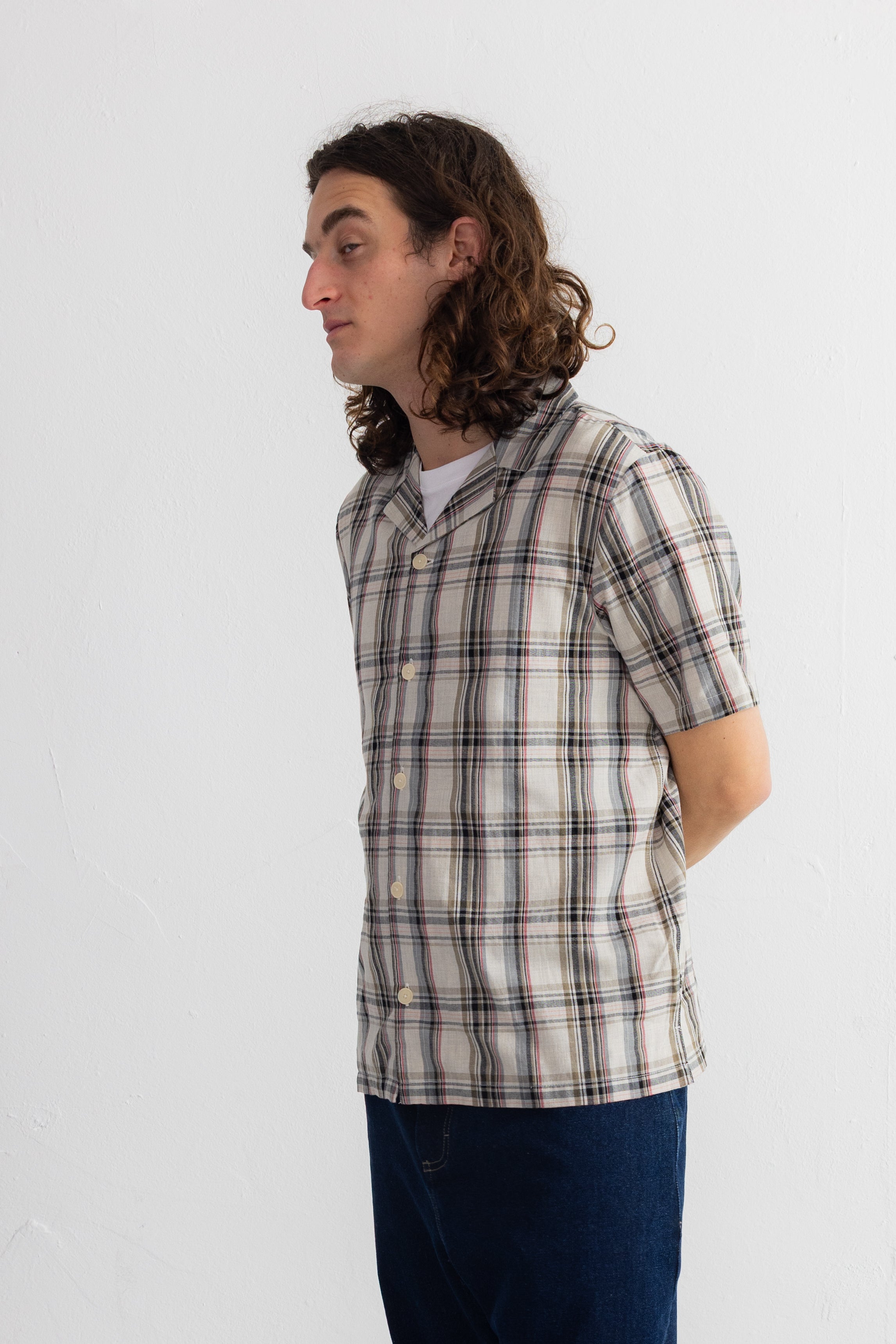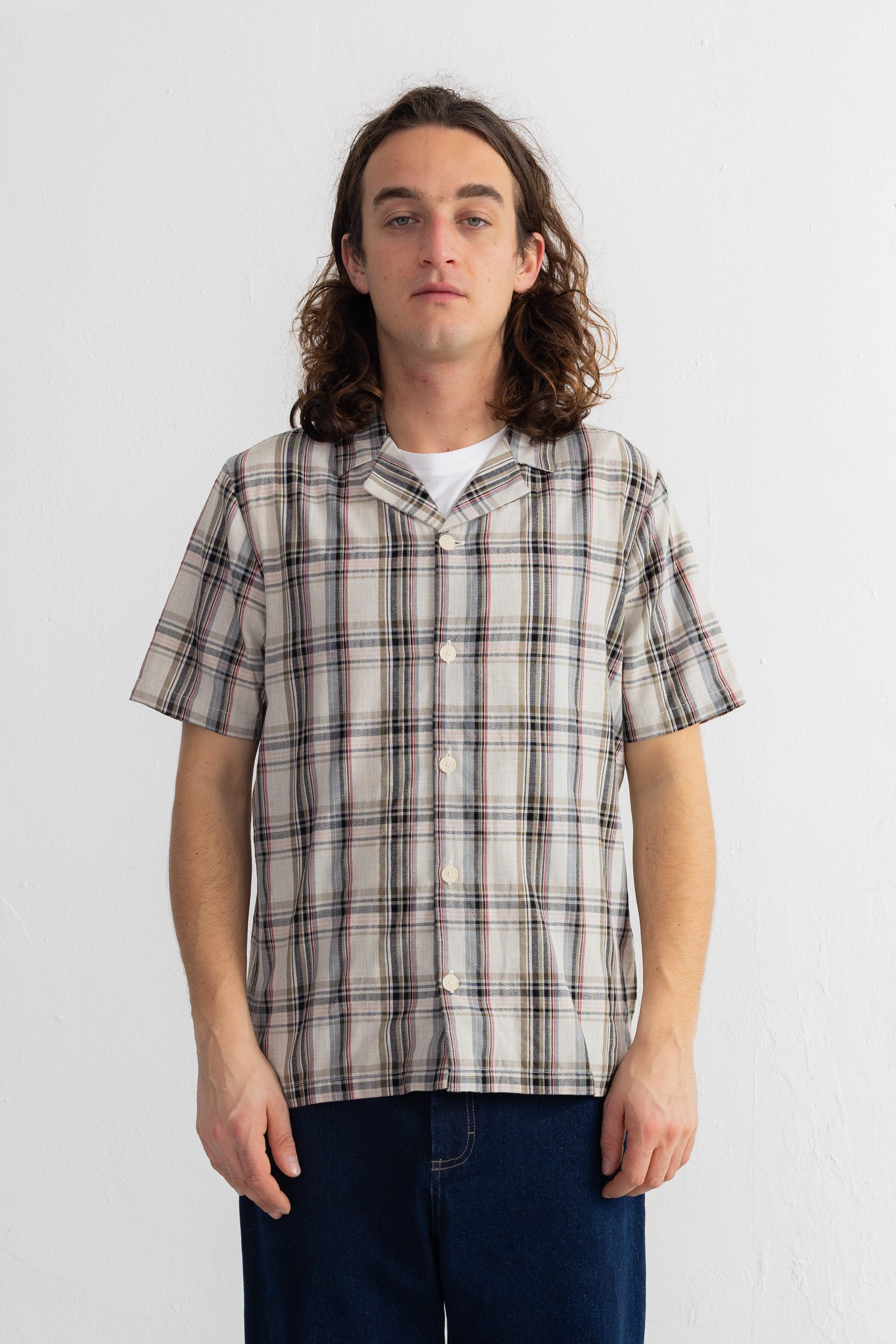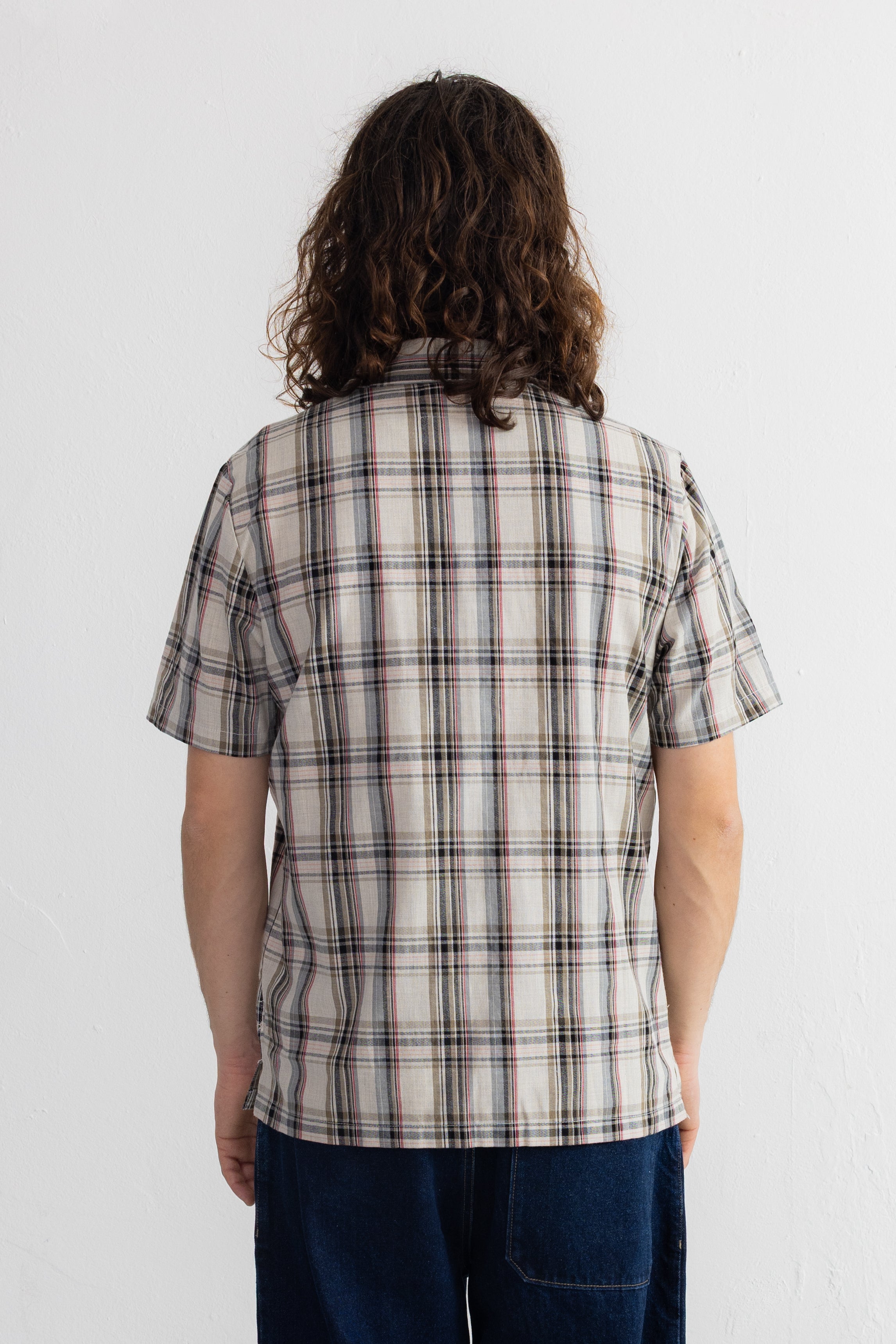 Short Sleeve Soft Collar Shirt - Natural Black Check