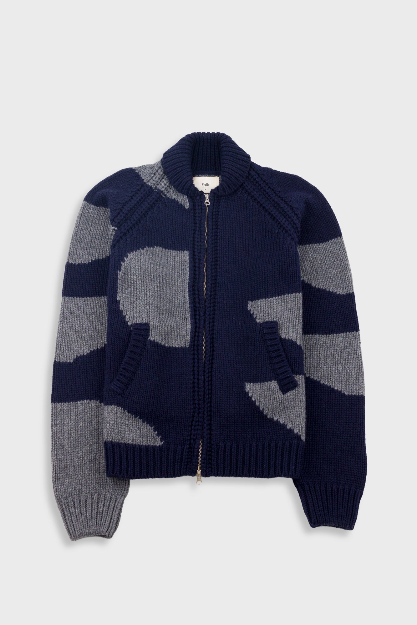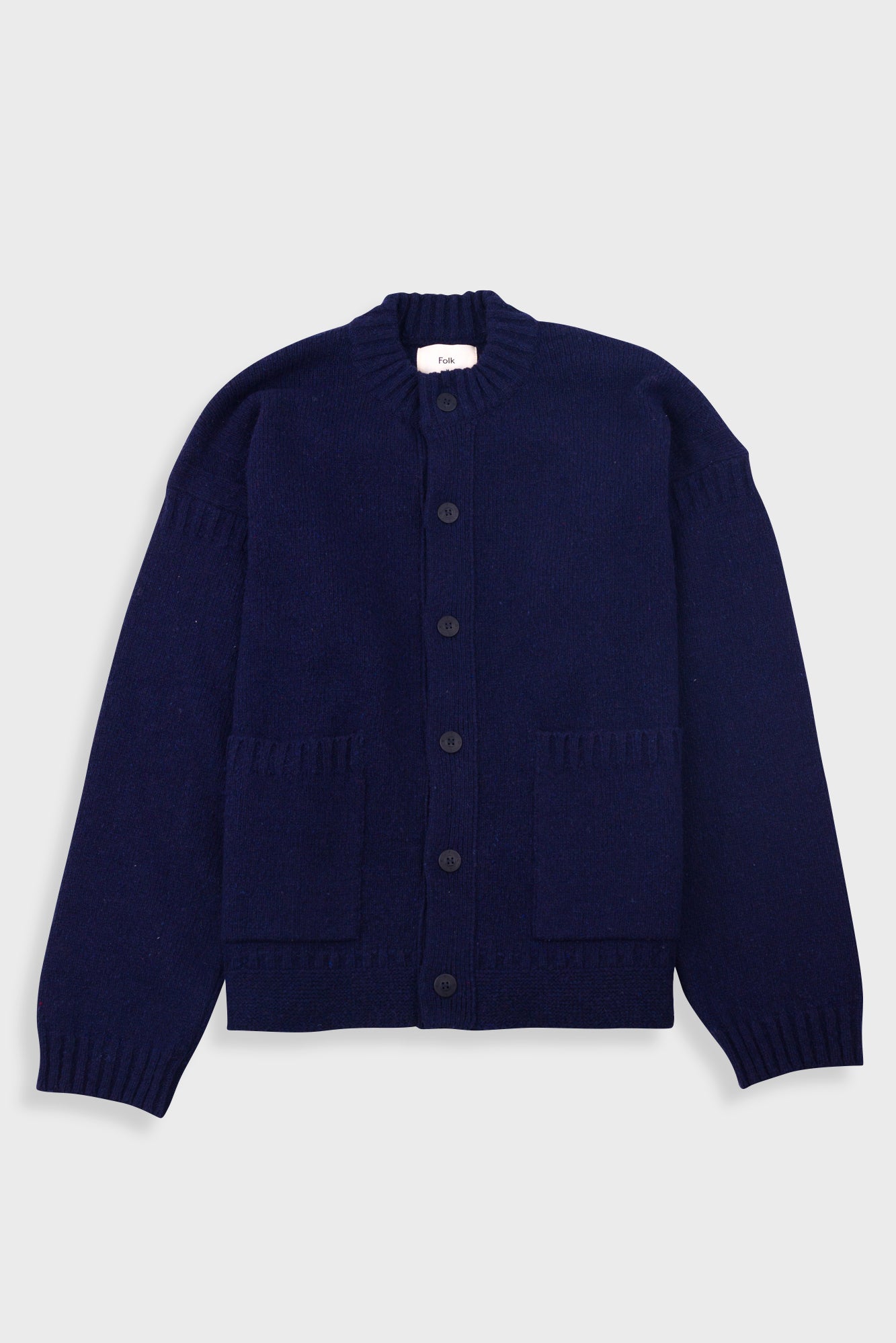 Pocket Cardigan - Navy Espresso Brushed Wool