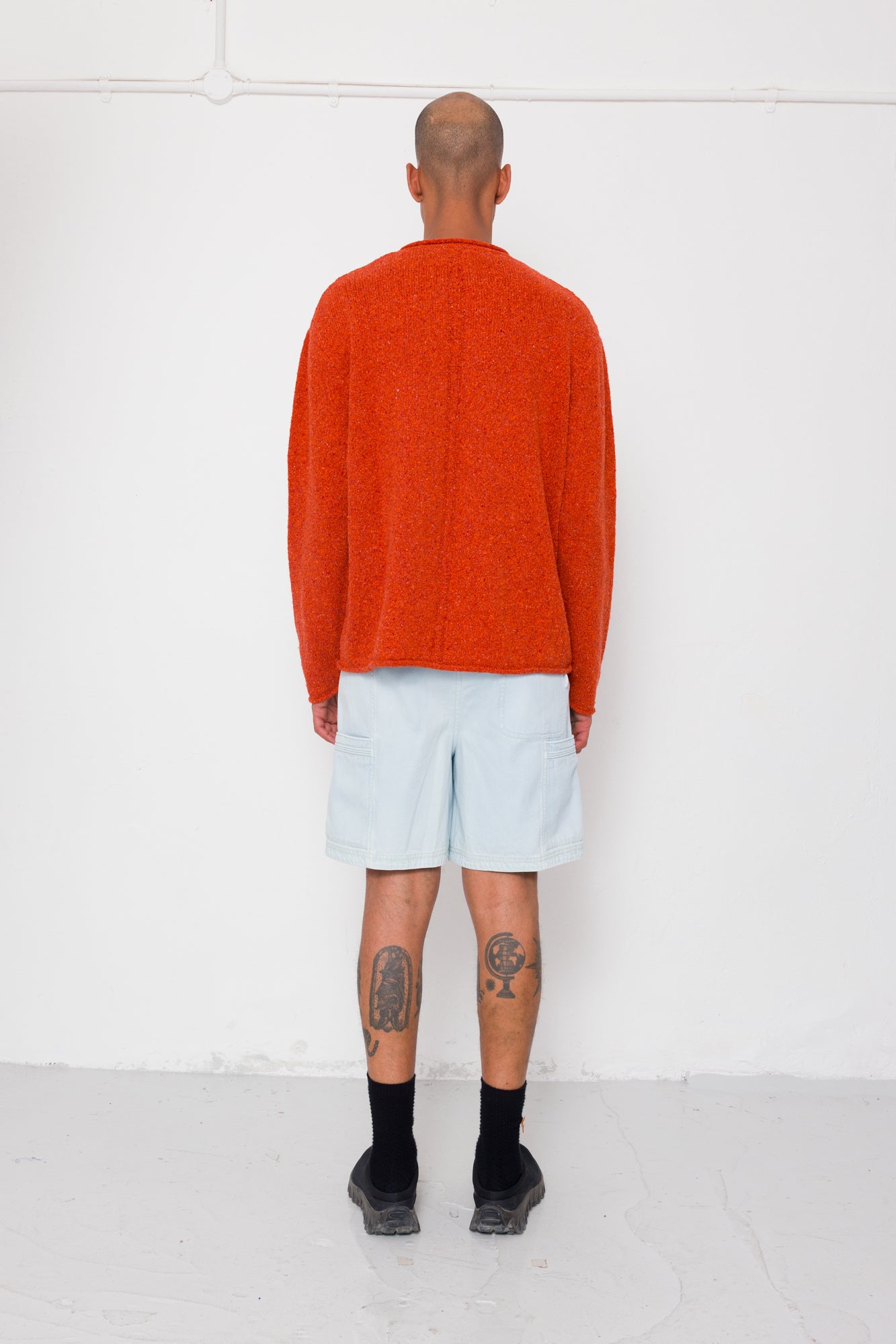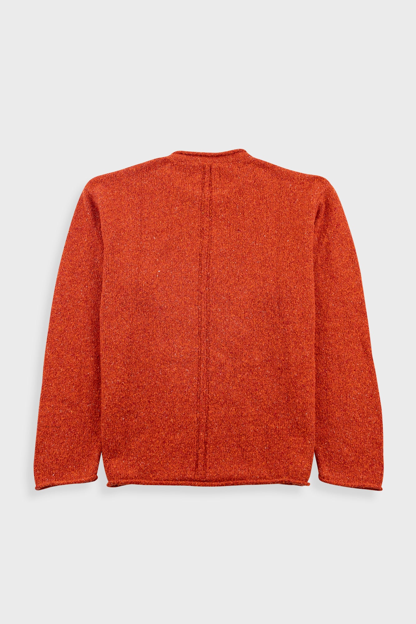 An easy wear layer for the warmer months, designed with raw cast off seems for a relaxed, natural look. This garment is made using summery cotton linen blended yarns and has nep detailing across its surface.