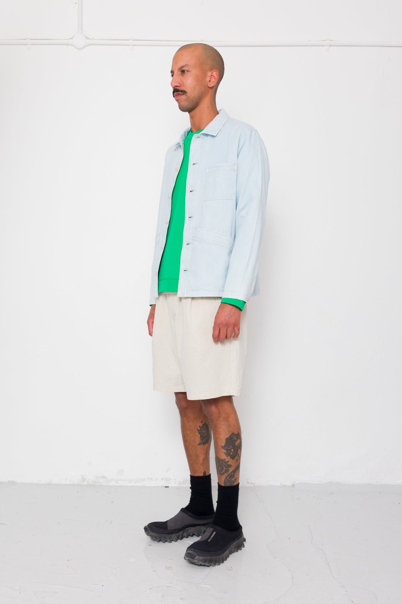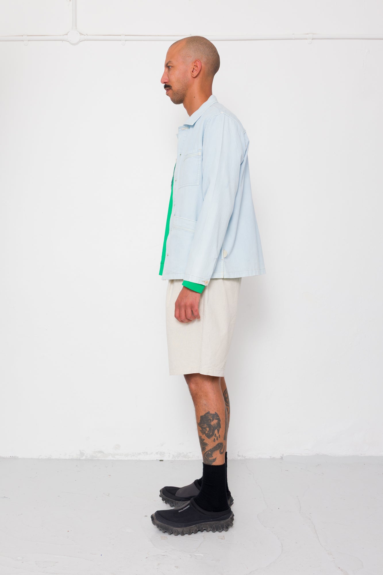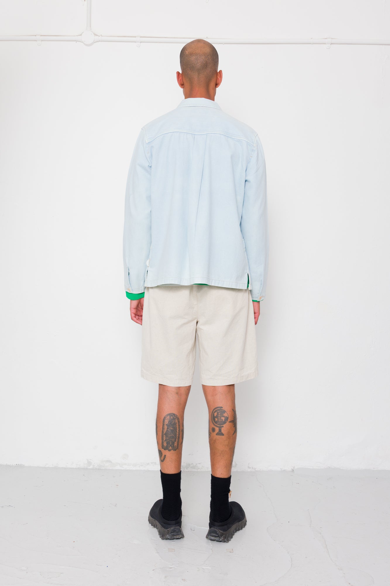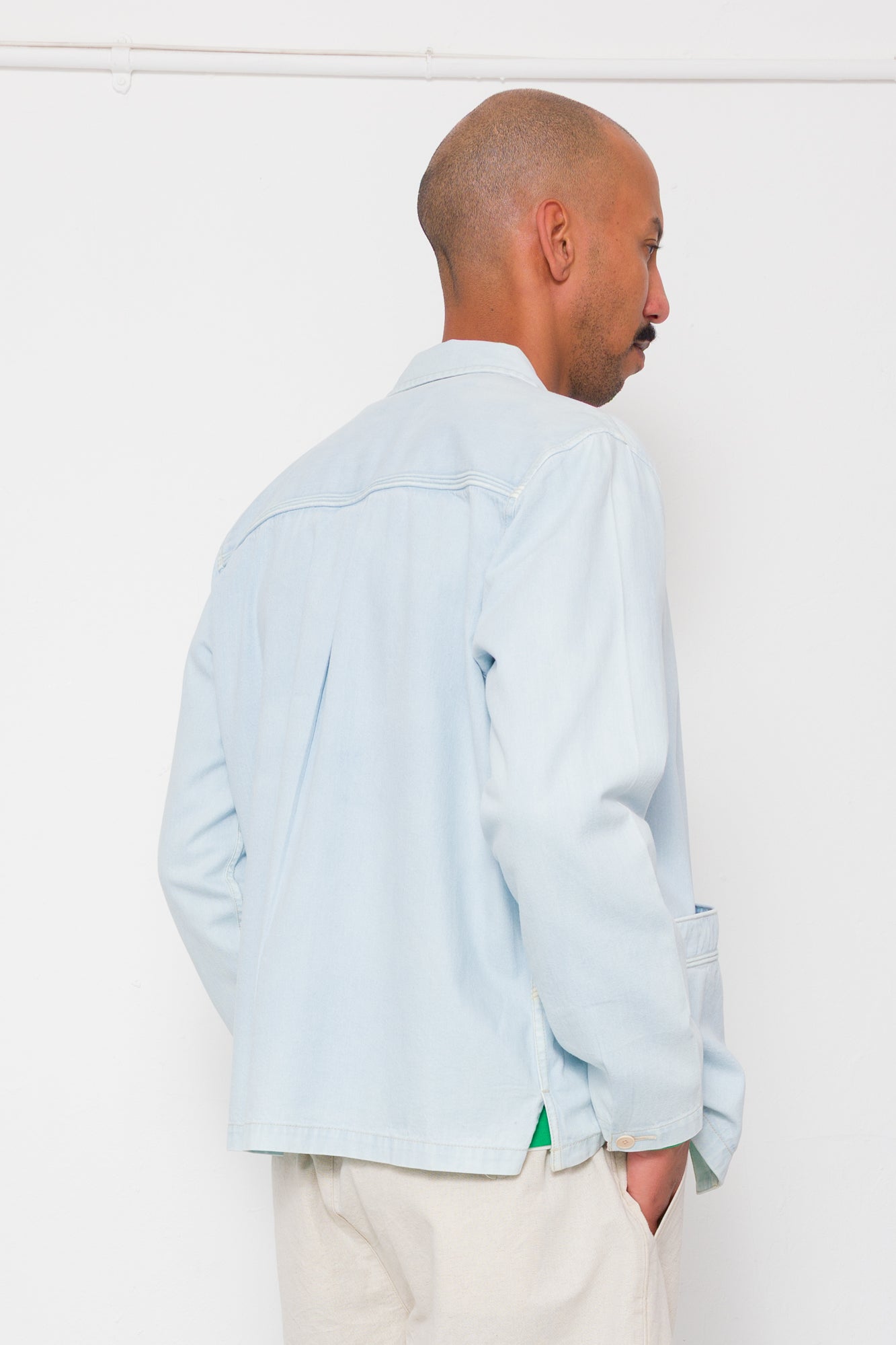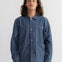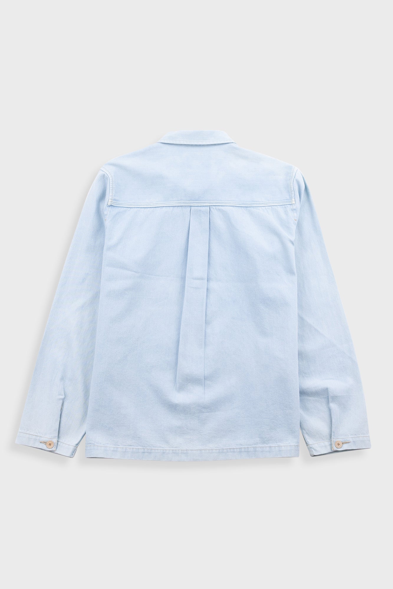 Boxy cut denim overshirt. It has been designed in a cotton denim fabric with soft handfeel and has been garment washed to lighten colour.