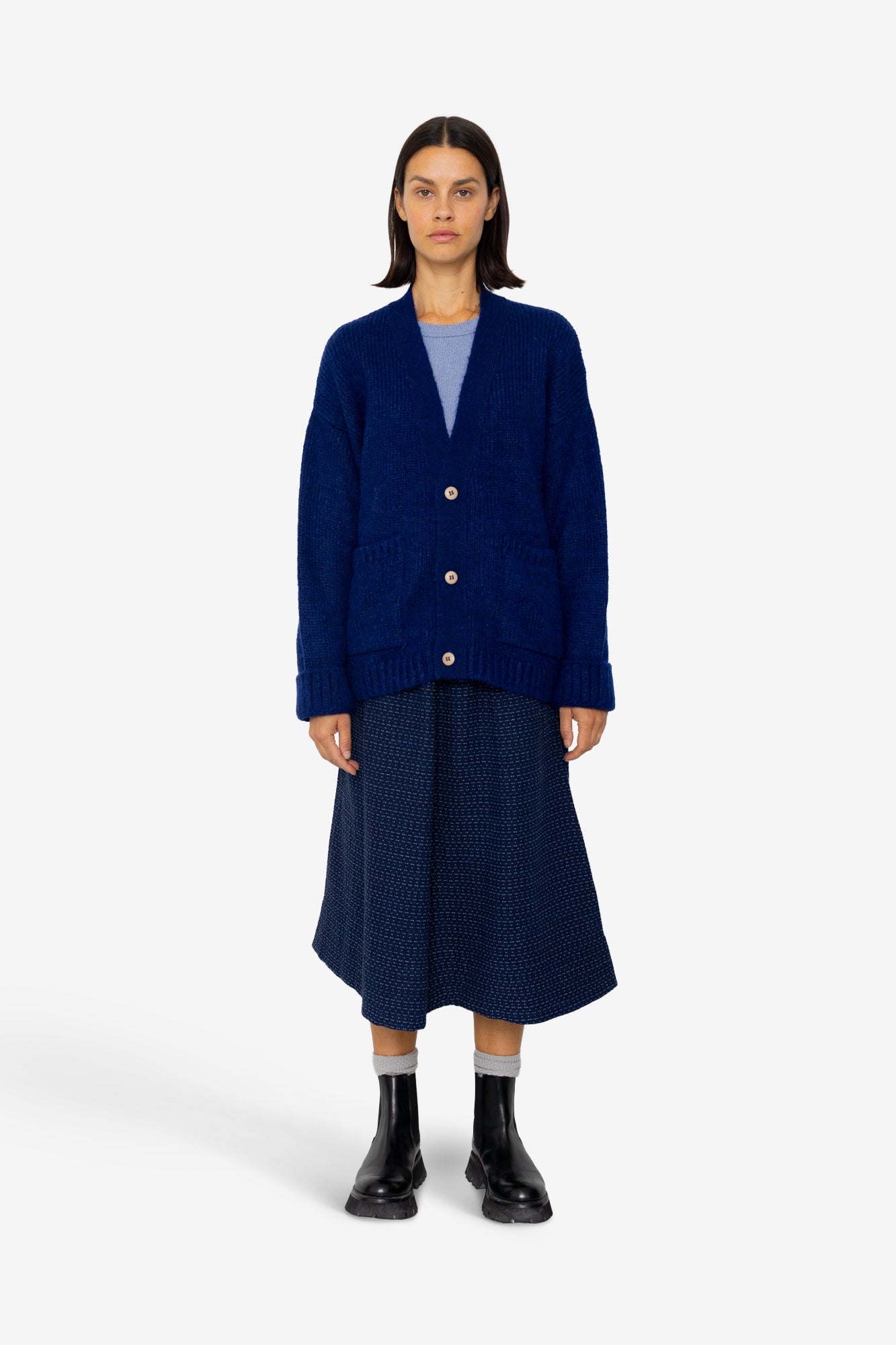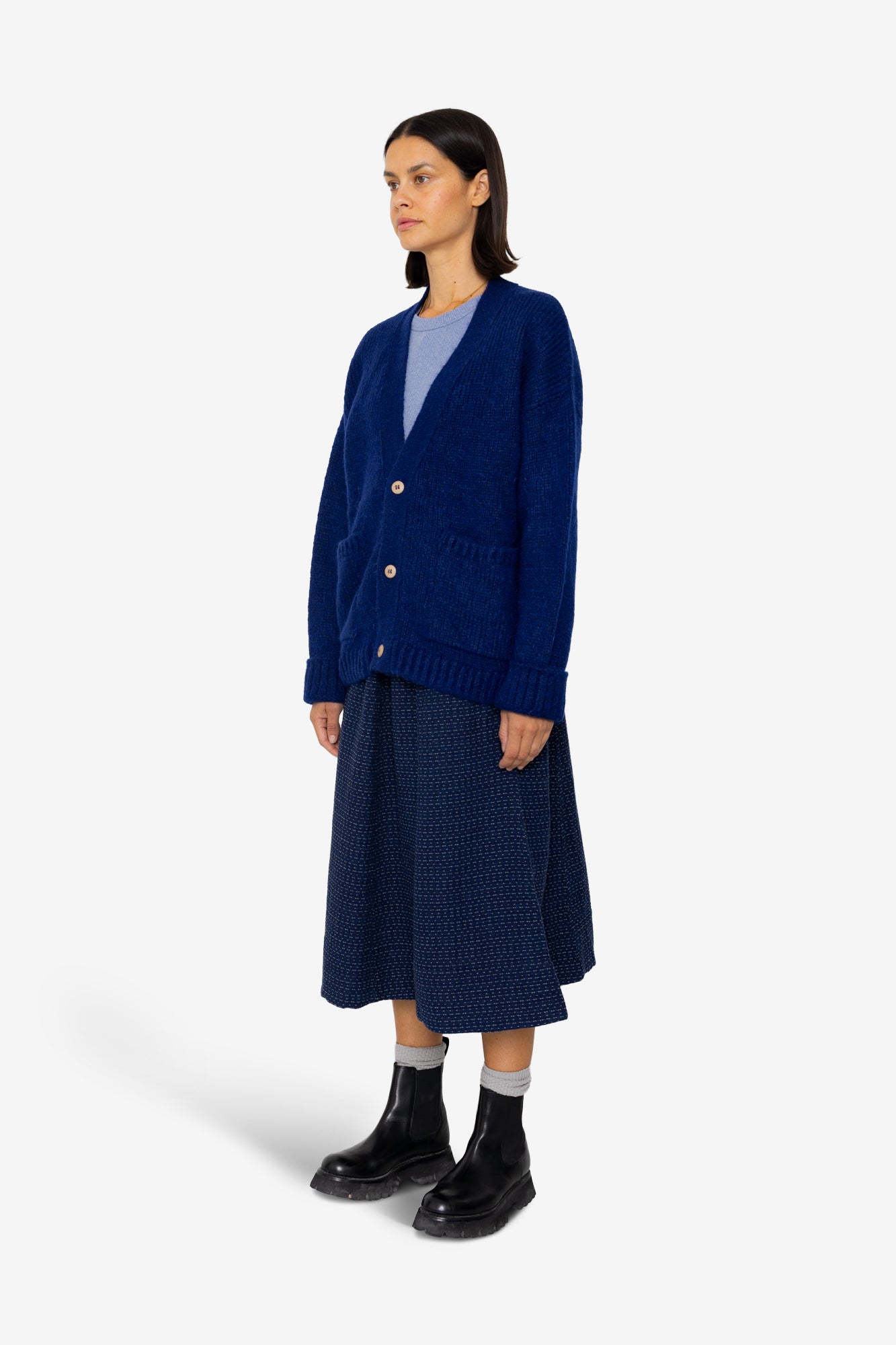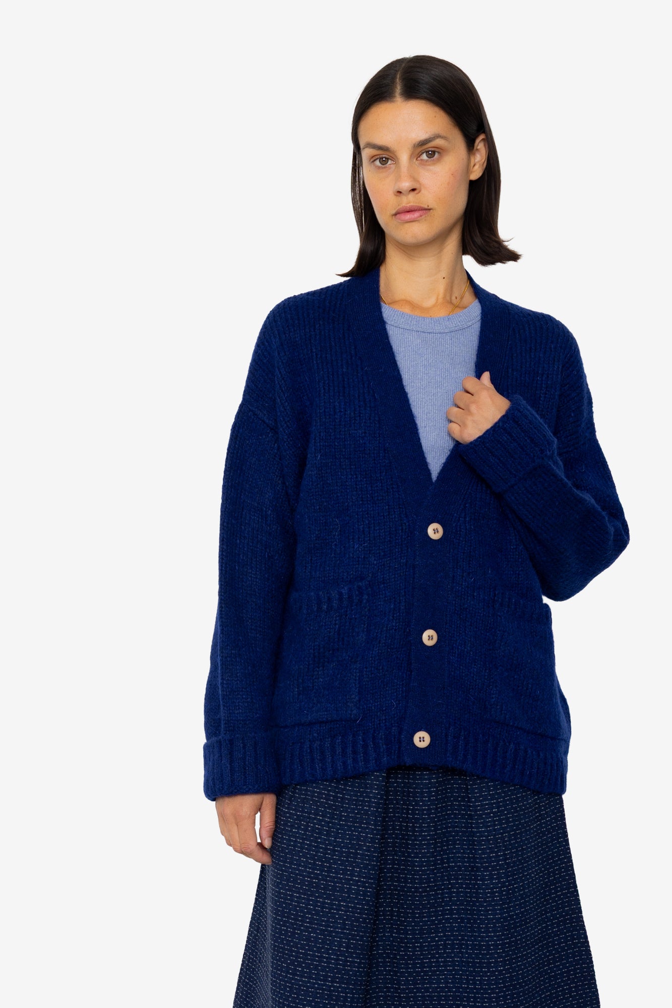 Our relaxed cardigan has a slouchy, effortless fit and feel. Designed in a soft mohair blend yarns and finished with corozo nut button fastenings and ribbed detailing at hem, cuffs and pockets.