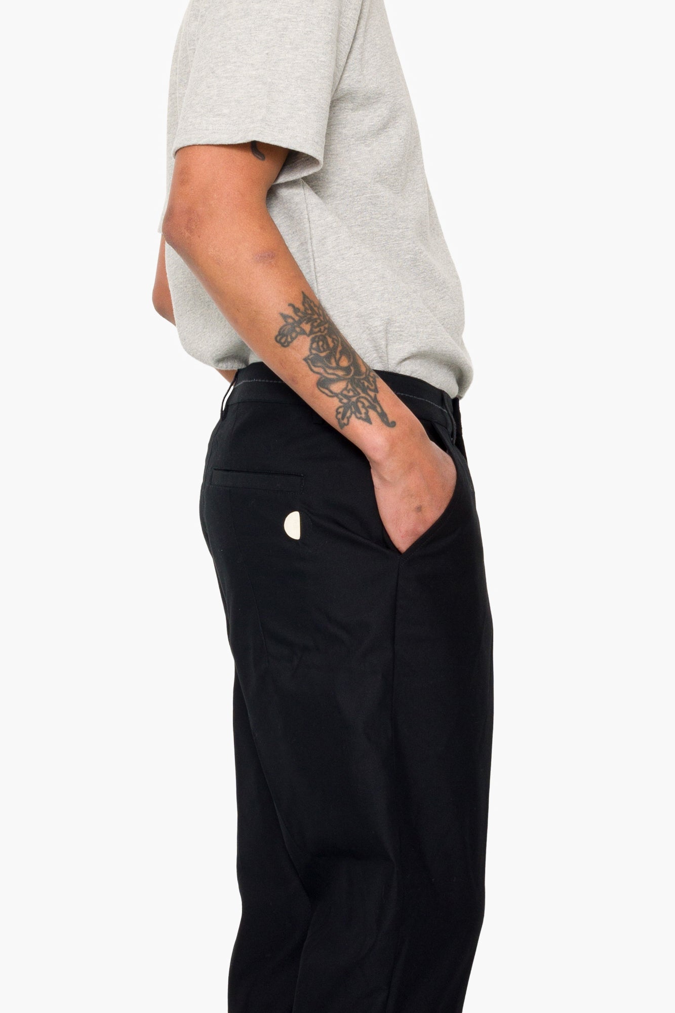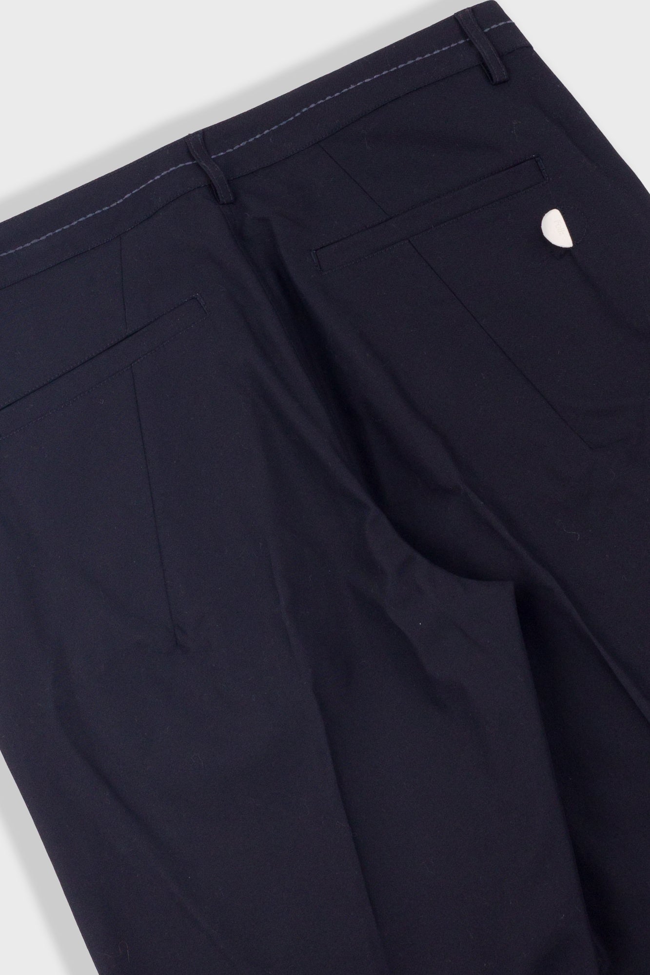 A smart style, slim cut trouser, inspired by our archive. Designed in a cotton blend twill fabric with a dry, technical feel, the waistband has been accented with a triangular embroidery stitch detailing.