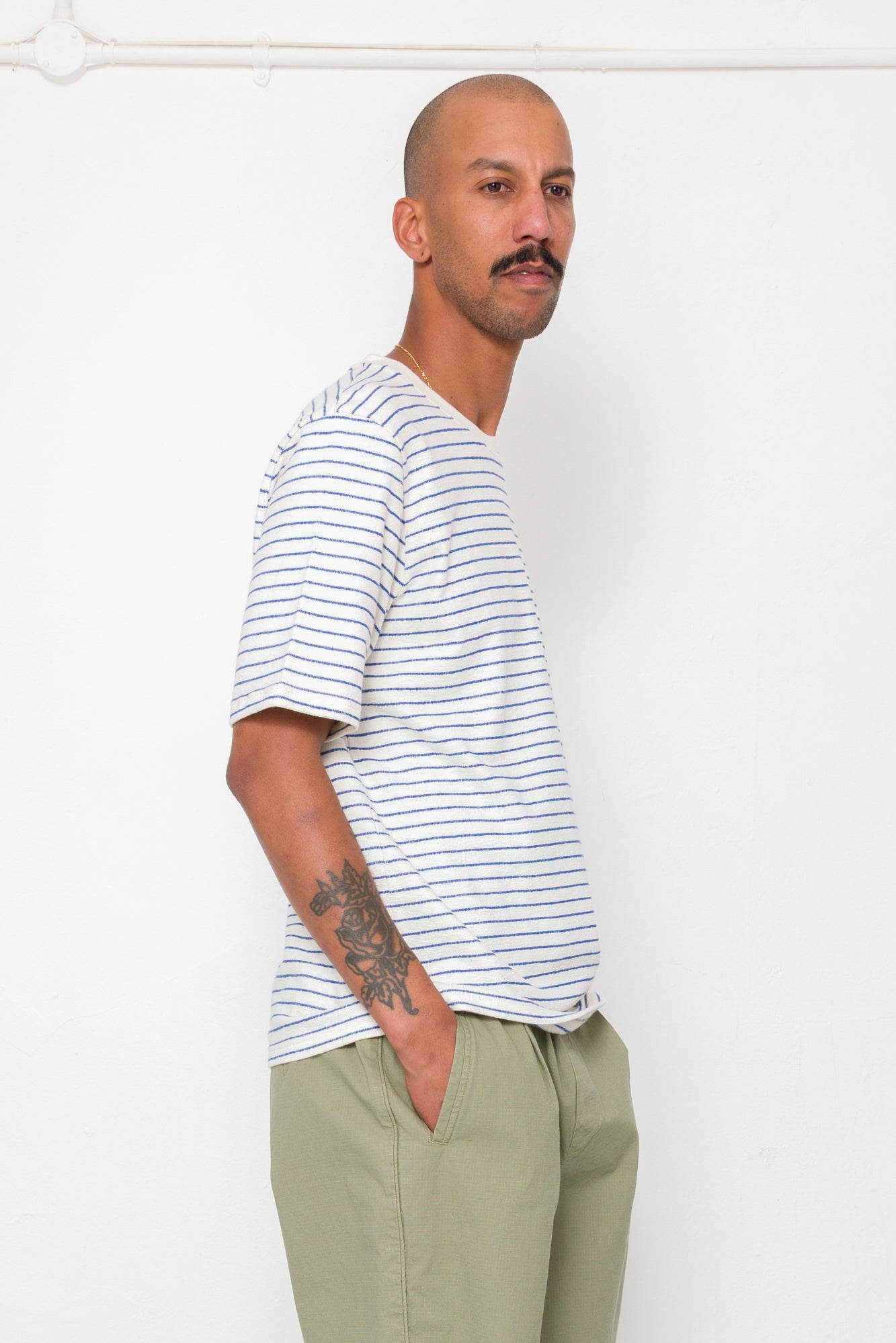 Short Sleeve Textured Striped T-Shirt - Ecru / Bright Blue