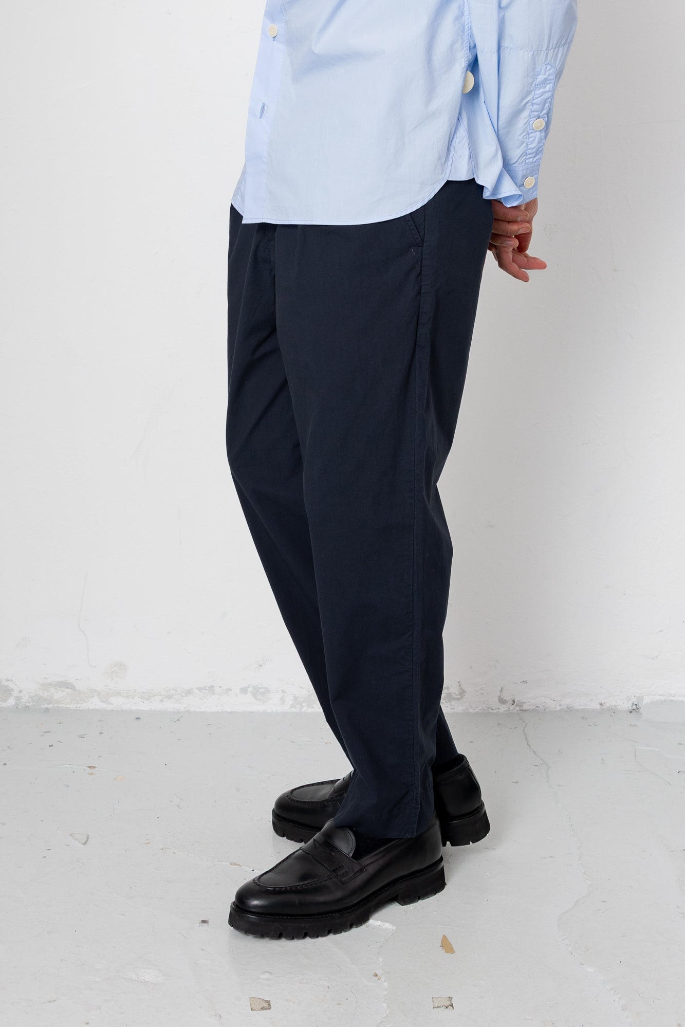 Our Signal Pants have a slightly cropped length and a straight cut leg with pleat detail, constructed in a lightweight compact cotton poplin fabric with paper-like handfeel.