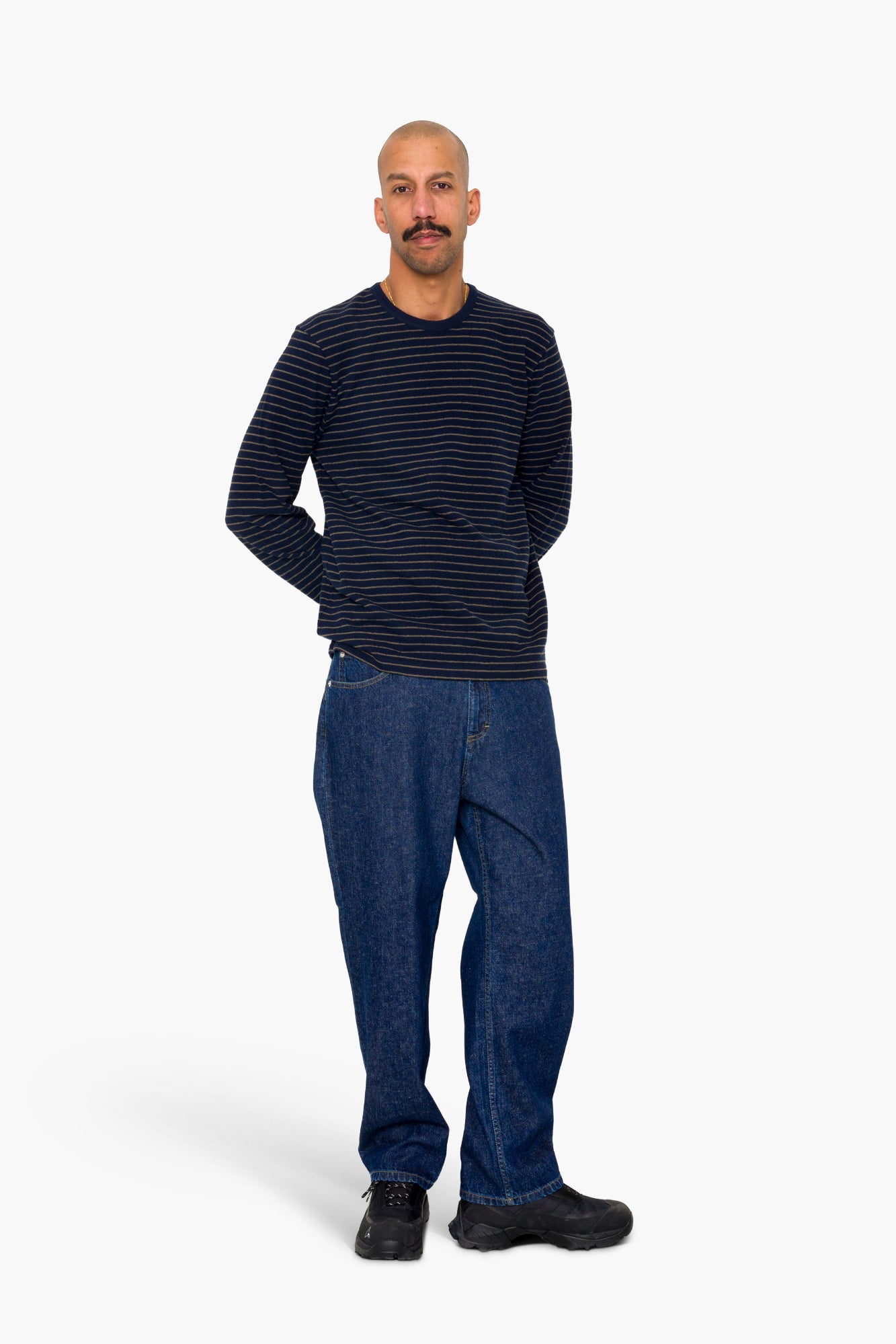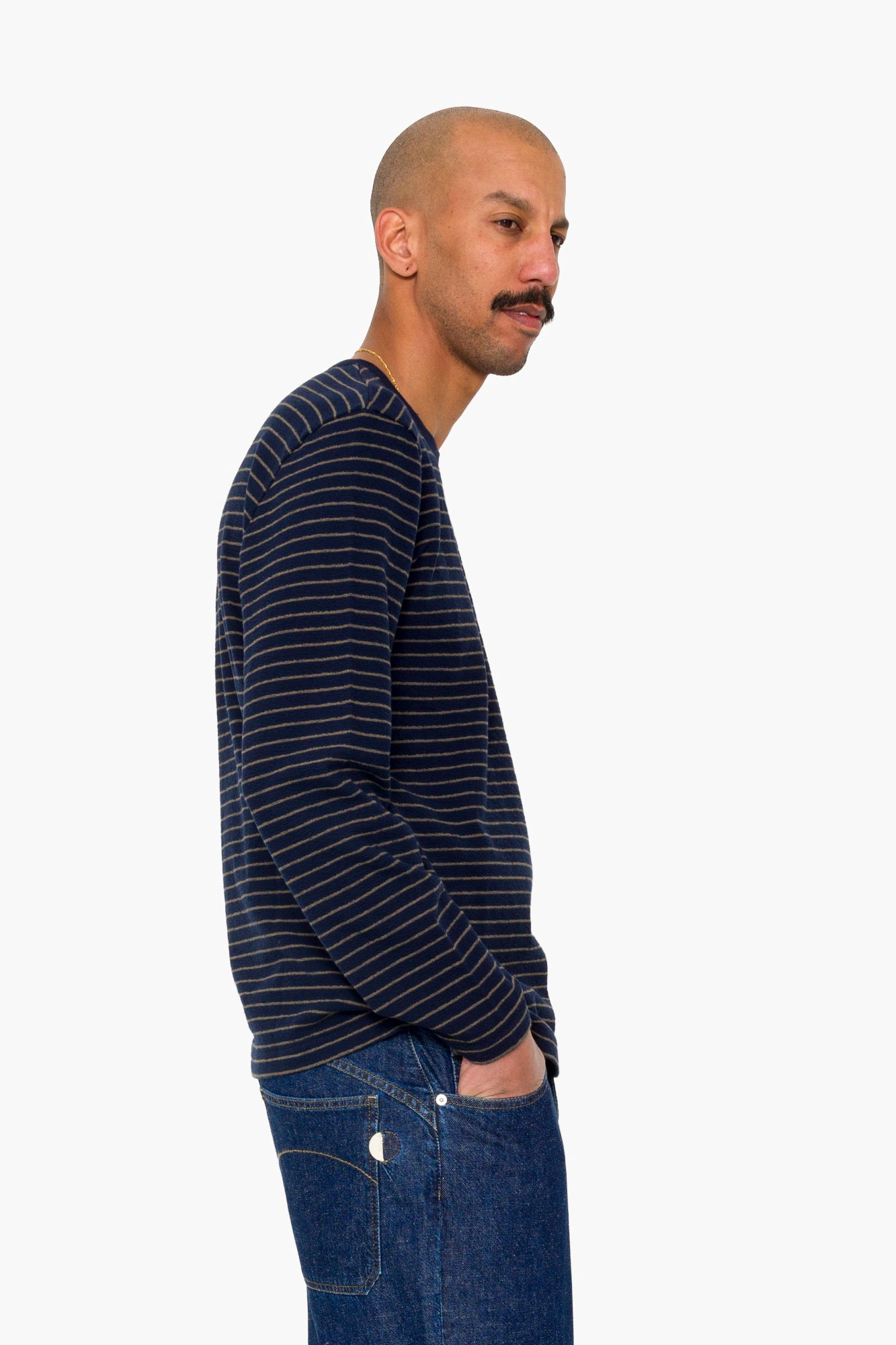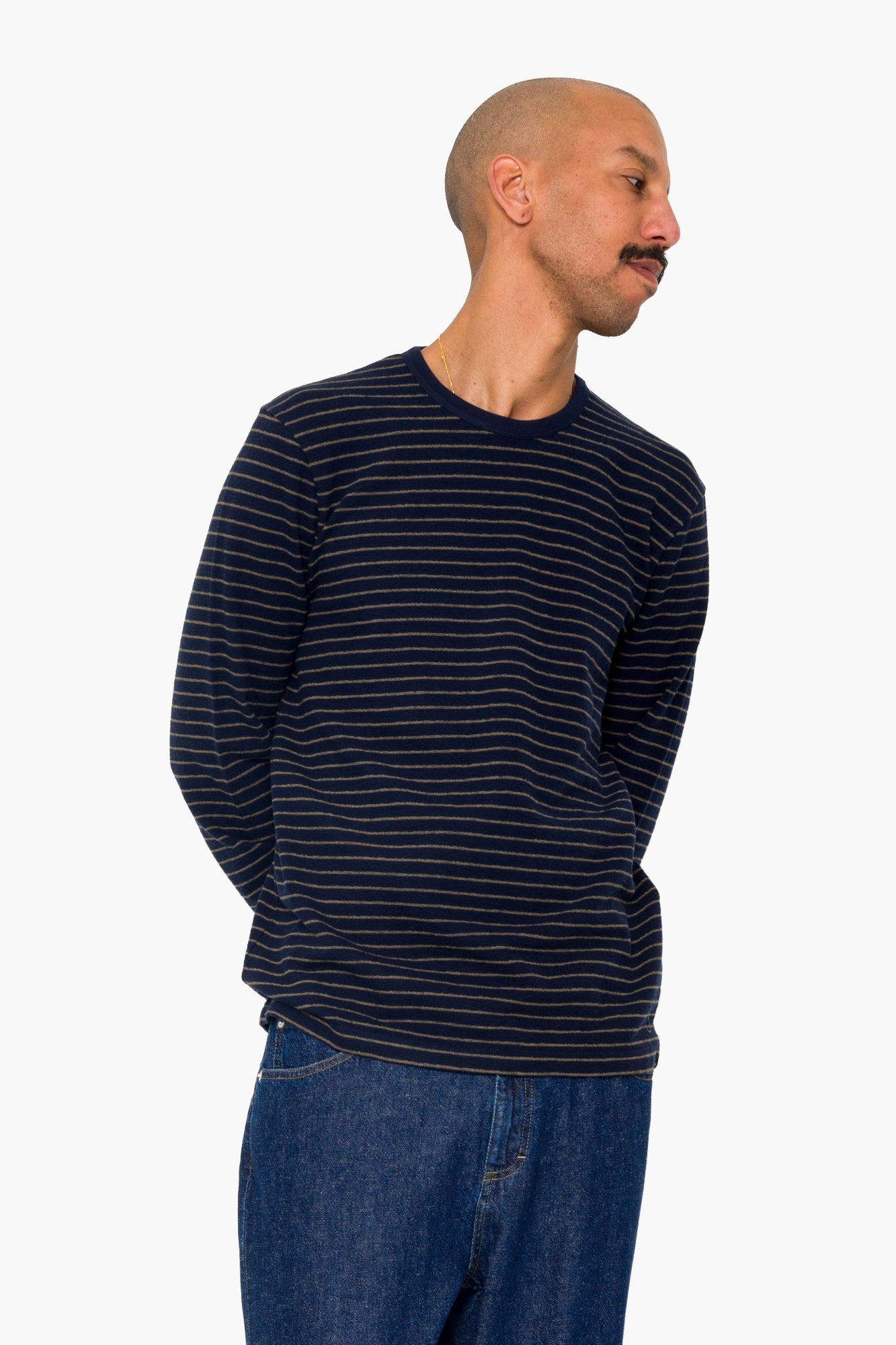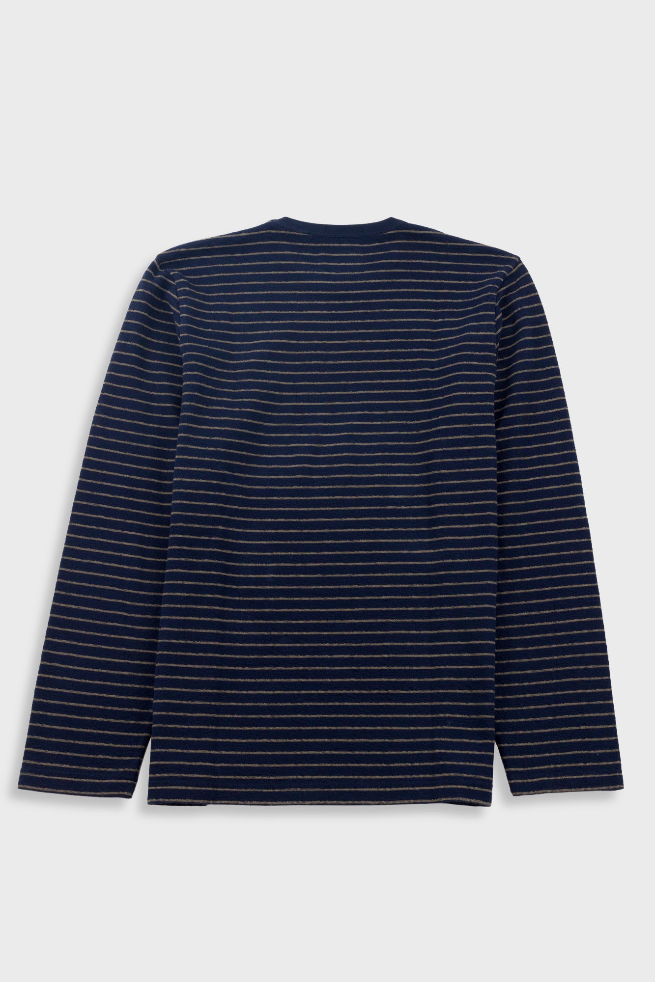 Long Sleeve Textured Stripe T-Shirt - Navy / Olive