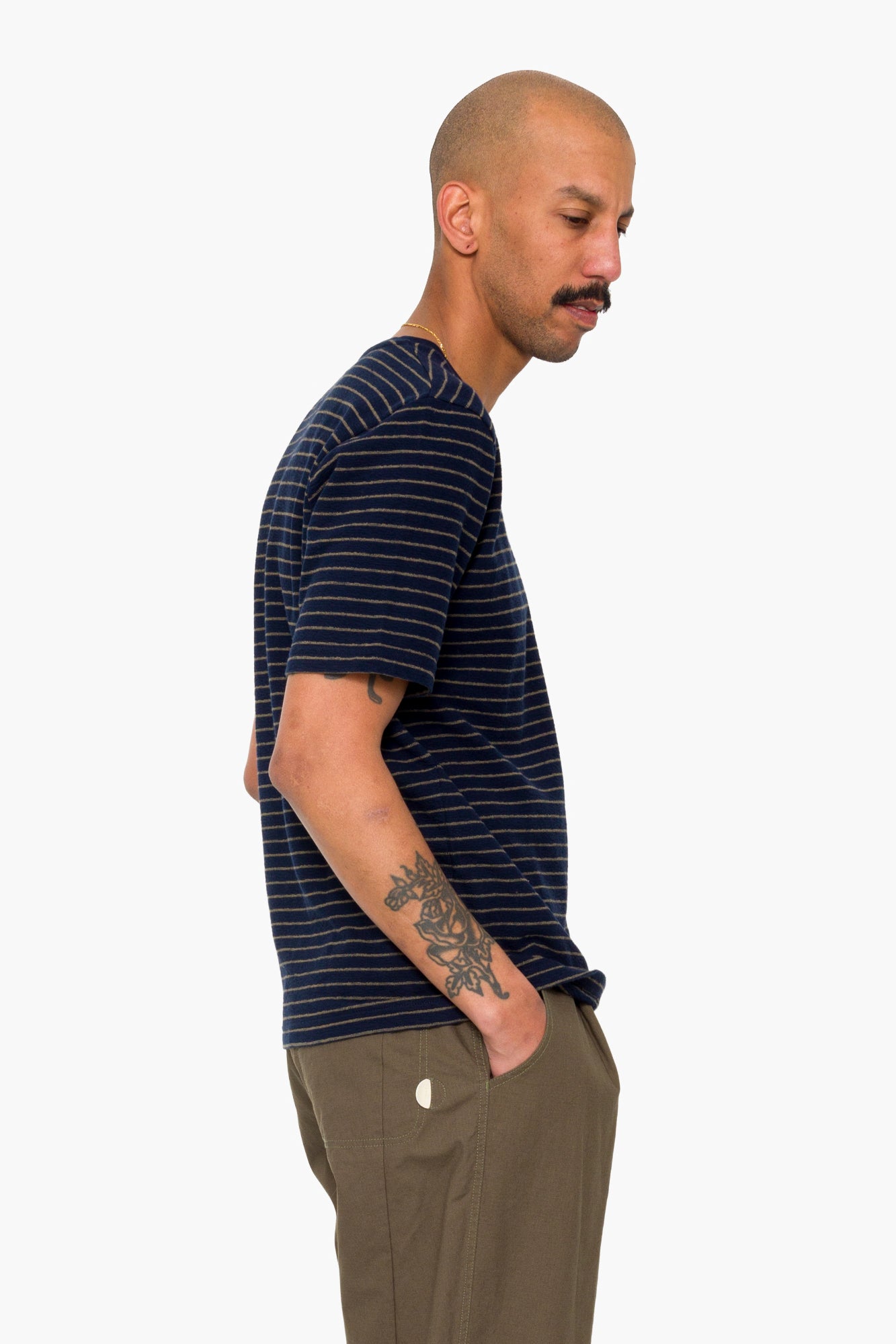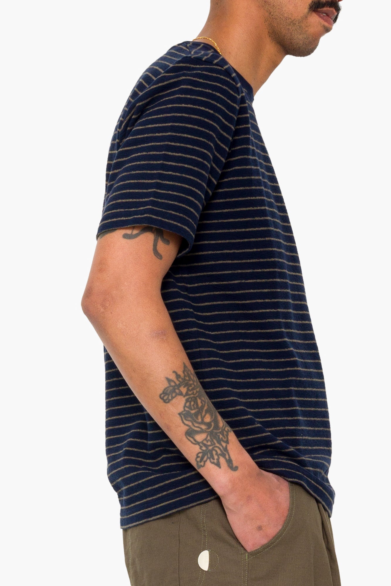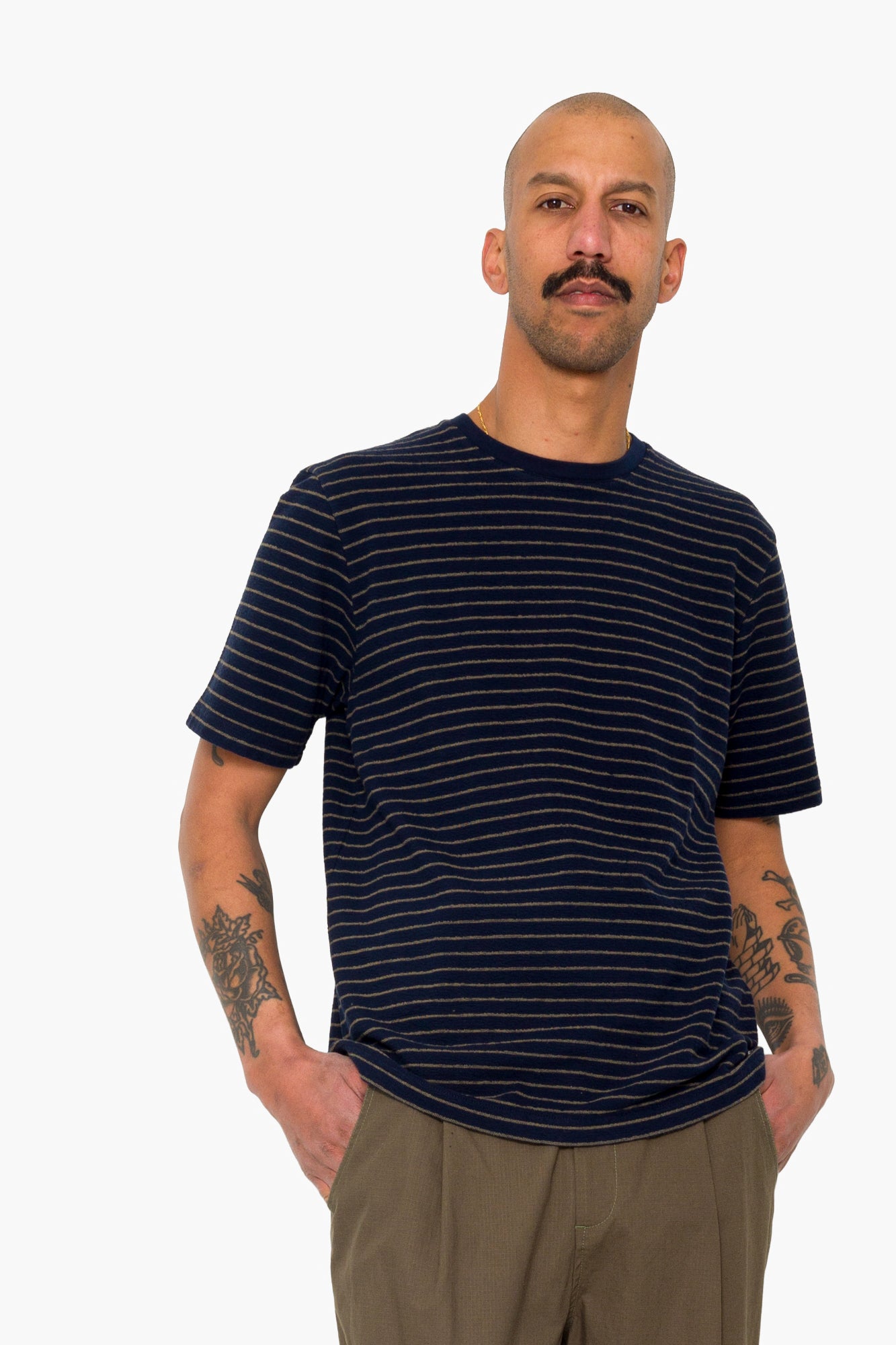 Short Sleeve Textured Stripe T-Shirt - Navy / Olive