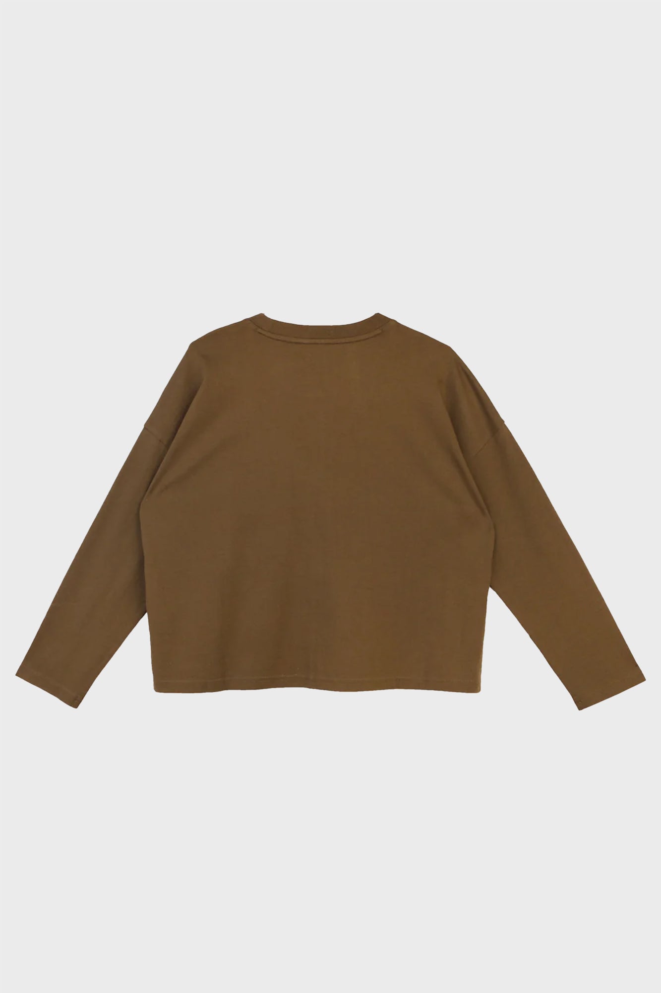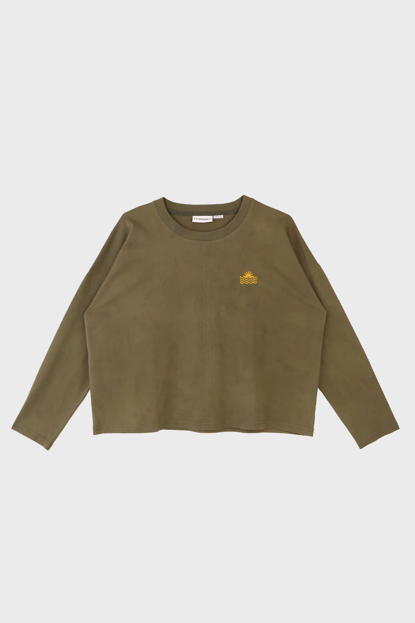 The Lesley Top is a relaxed fitting longsleeve tee with a boxy fit. In cotton jersey with our embroidered sun and wave logo on the chest.