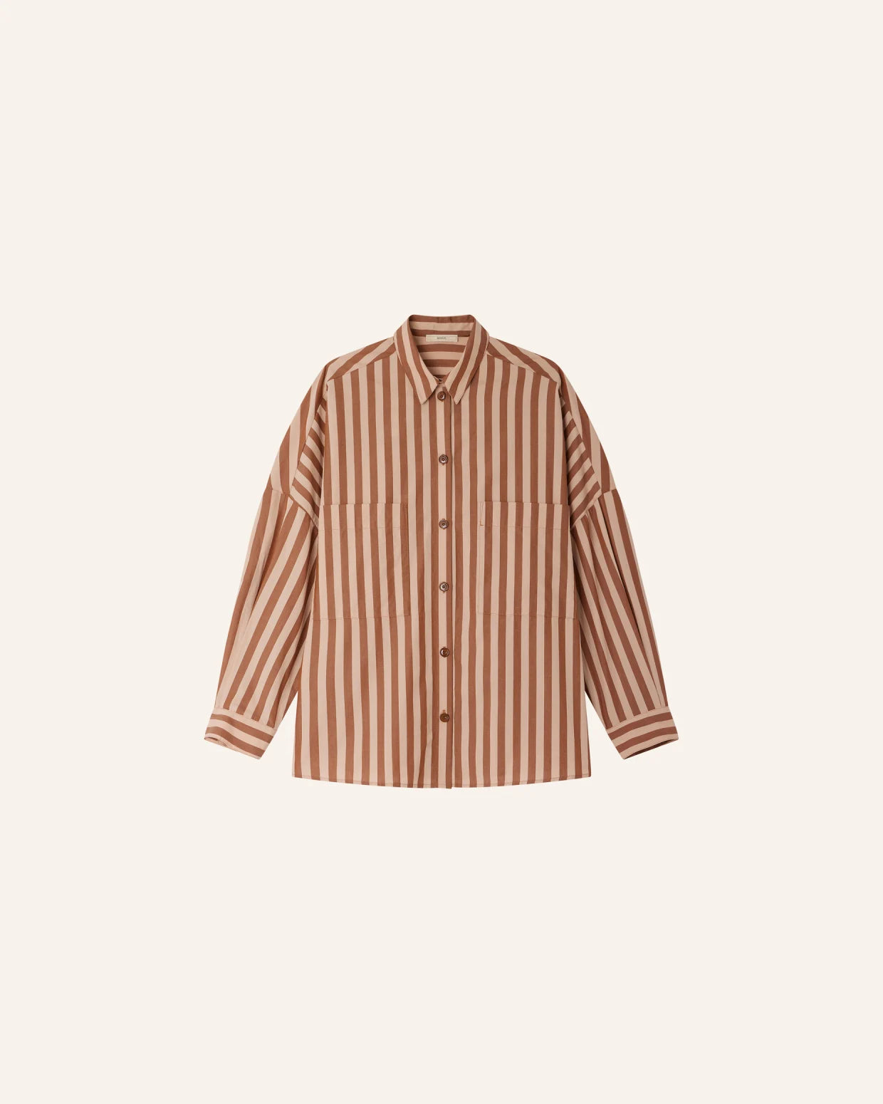 Oversized shirt with patch pockets in compact cotton poplin with two-tone stripes, woven in Italy, exclusive to Sessùn.