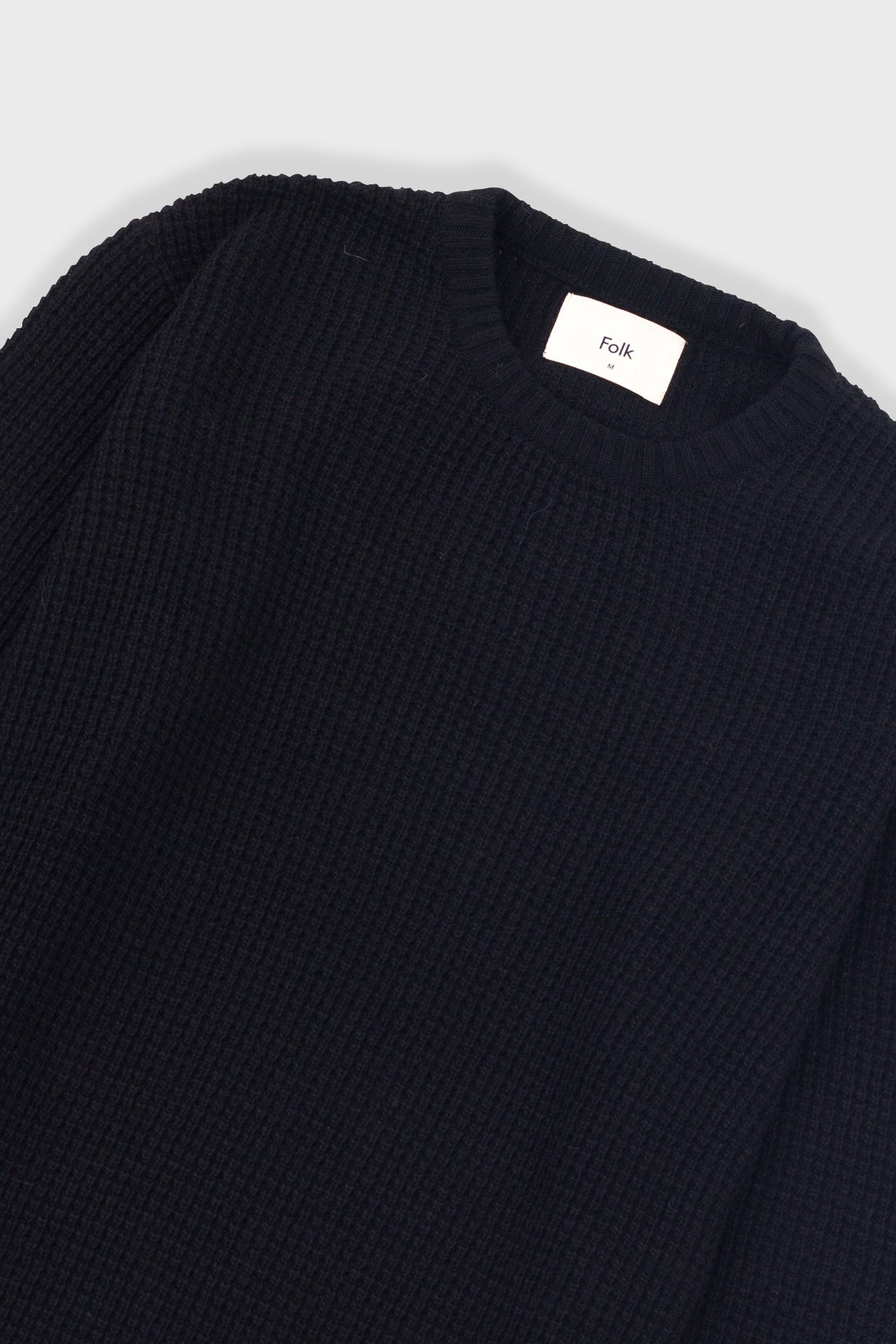 Waffle stitched crew neck jumper, cut boxy with a gently cropped fit.