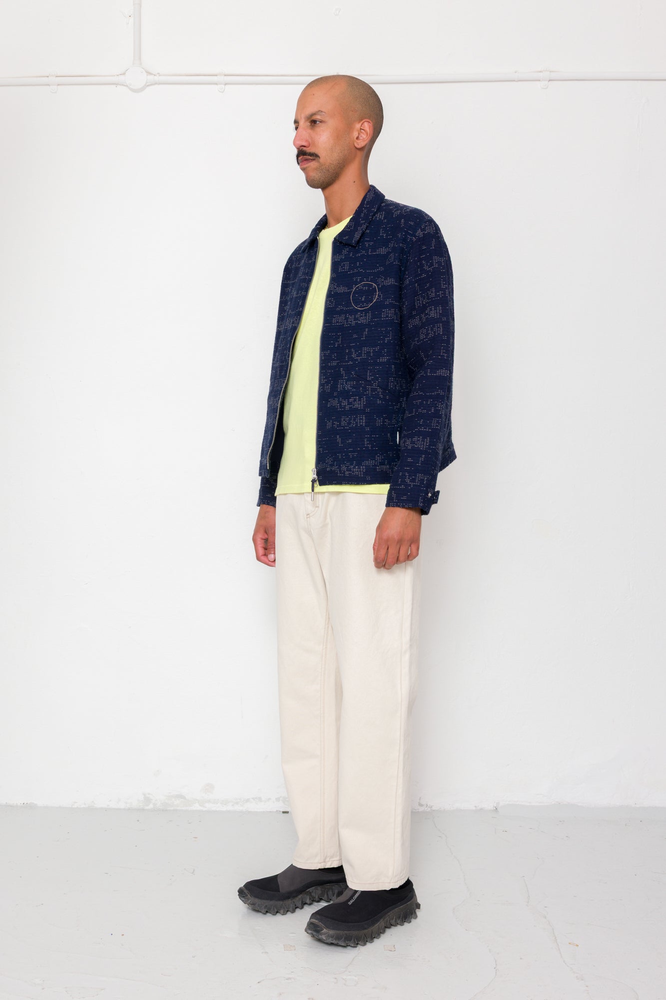 Care // This fabric features floating yarns that form part of the design Please handle this garment with care in-order to avoid snagging. As with all indigo dyed garments, some colour bleeding is expected. The bleeding will reduce after a few washing and wearing.
