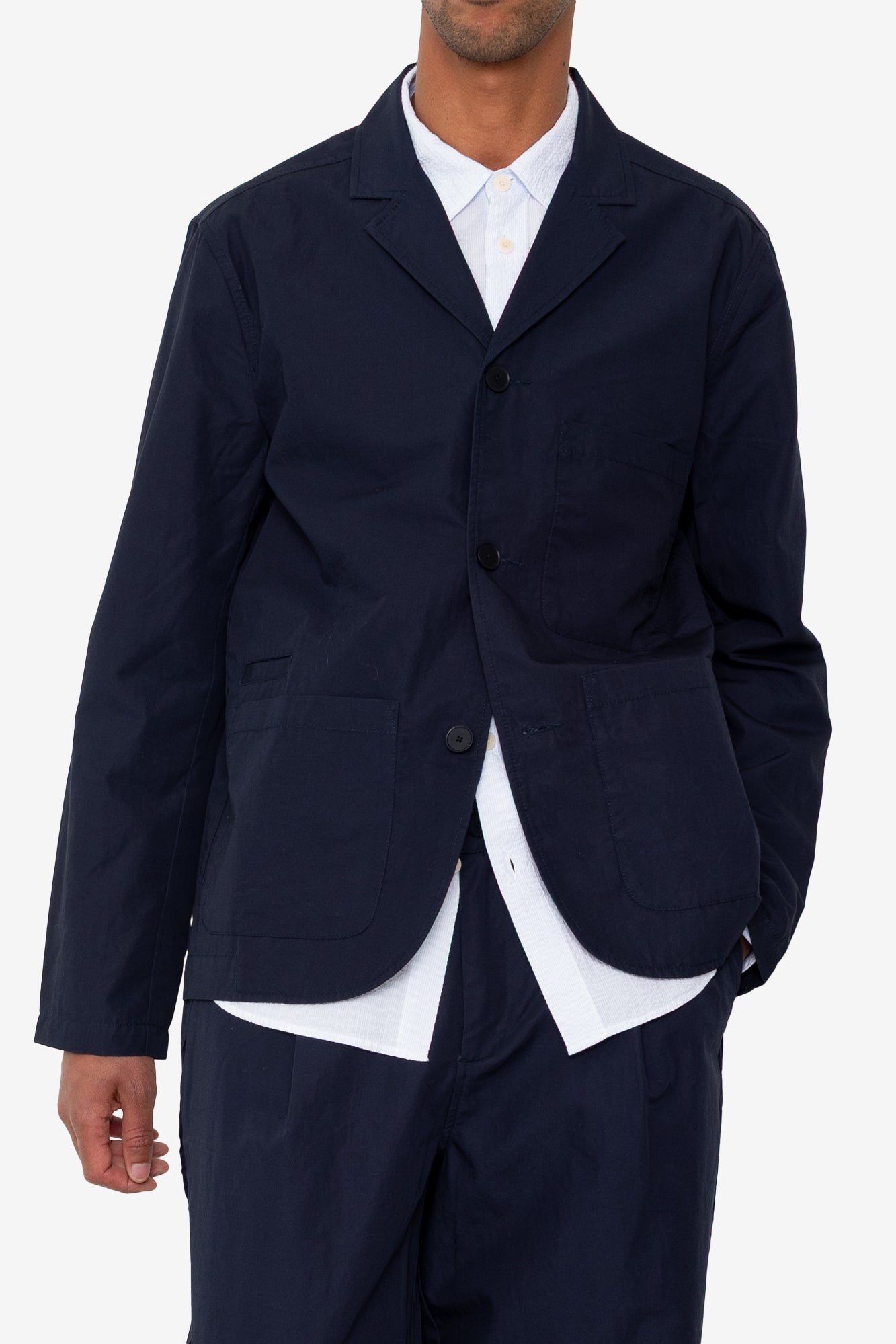 It has been constructed in a cotton linen blend fabric from Japan with a subtle slubbed surface texture.