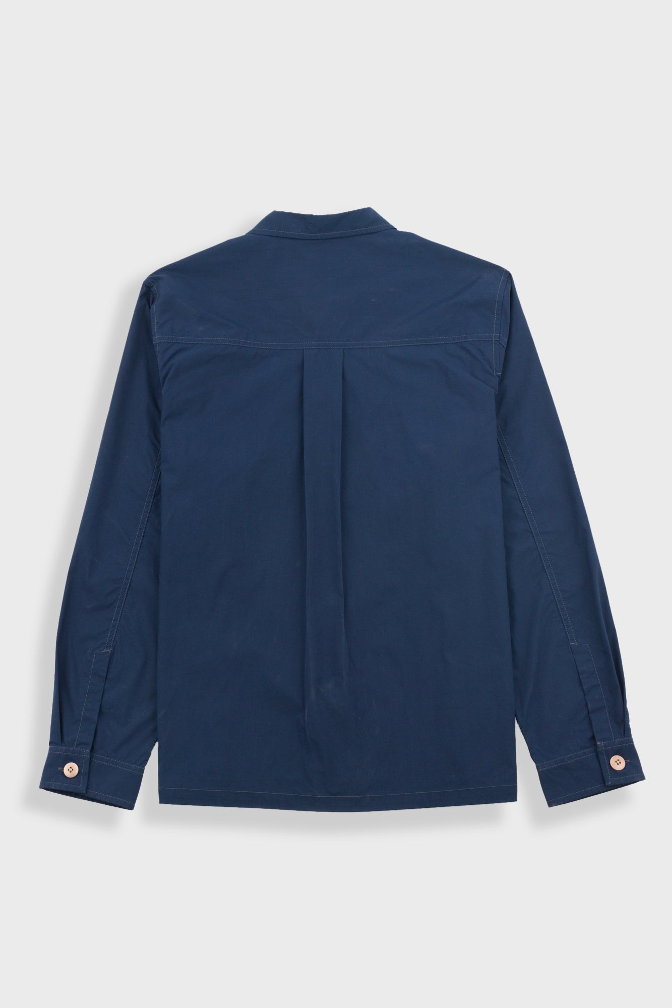 Boxy, relaxed fit shirt block; ideal as layering piece. It has been constructed in a Lightweight compact cotton blend technical fabric with paper-like handfeel.