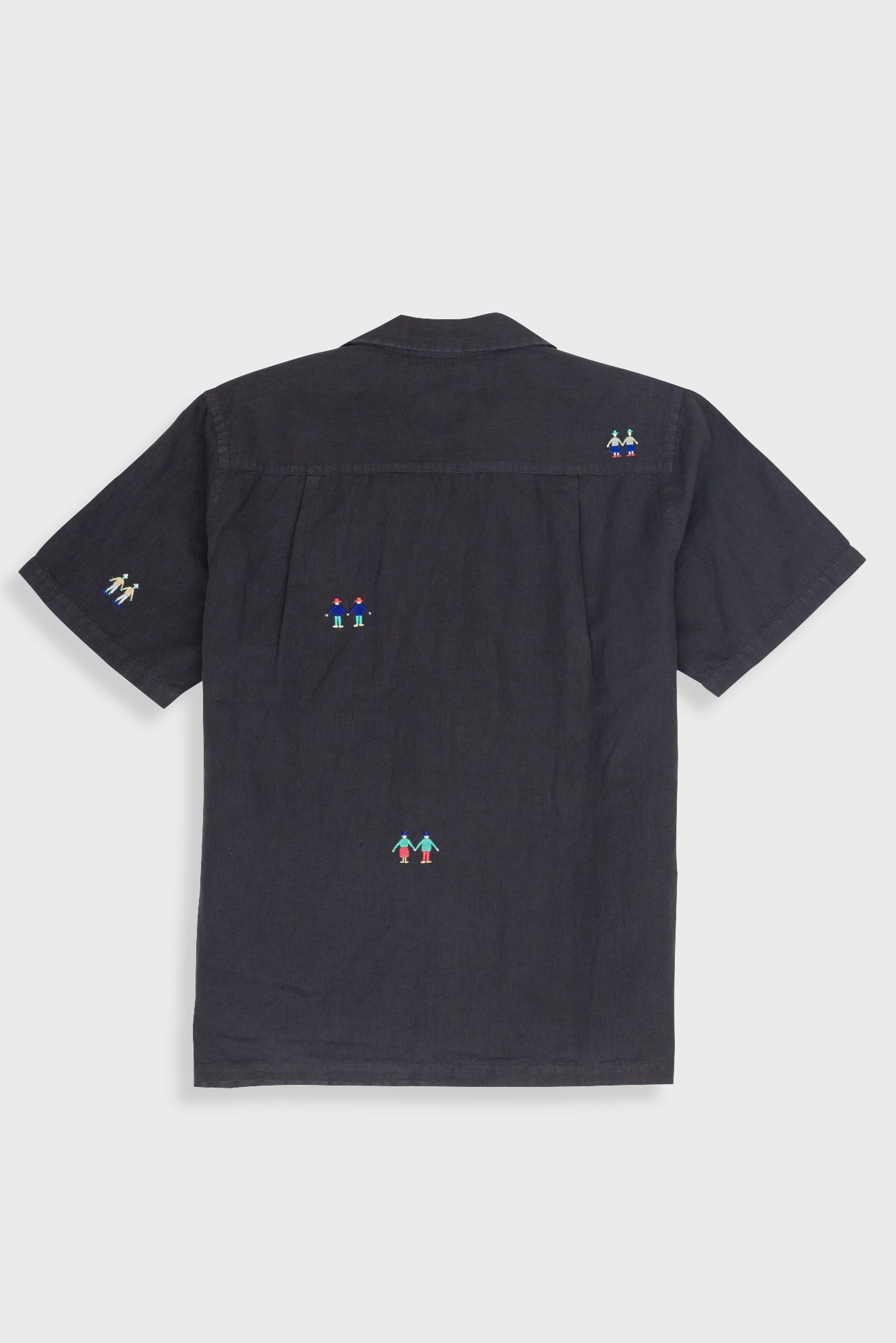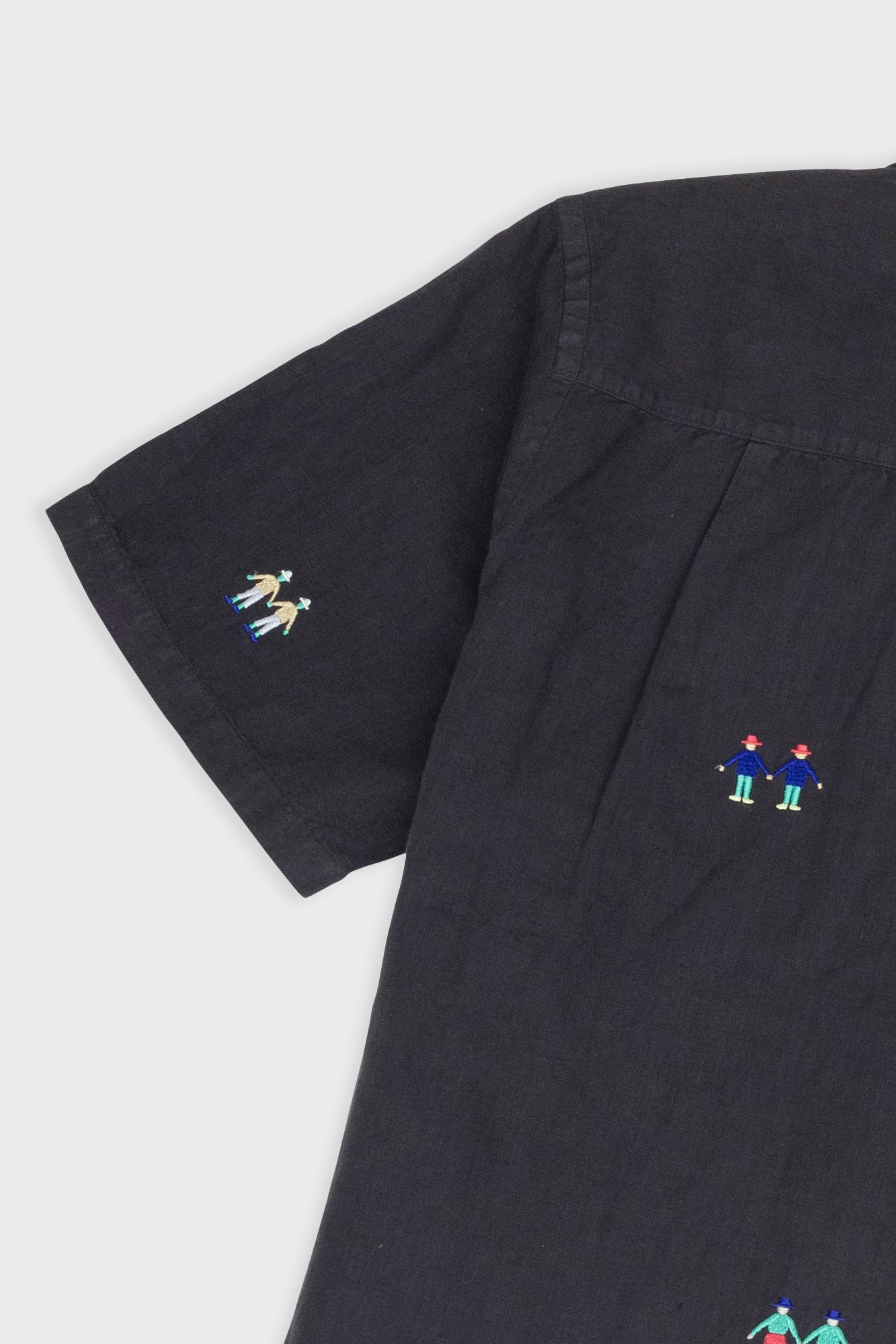 Relaxed Soft Collar Shirt - Soft Black Scattered Embroidery