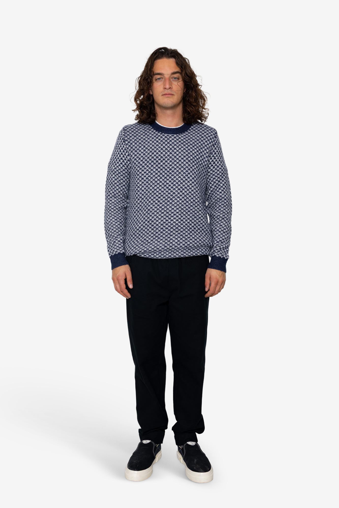 Diamond Jacquard Crew - Blue Mix
