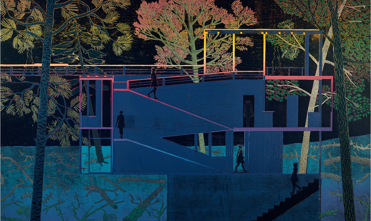 Tom Hammick is a British painter and printmaker based in London. Drawing from a wide range of sources, his depictions of nightscapes explore a dreamy sense of human isolation and loss. We were lucky enough to collaborate with him on our new Winter range, allowing us to bring elements of his depictions into the wearable world (check out the collection here). We sat down with Tom to discuss the new collection, his process, and what drives him to create such beautiful and haunting work.