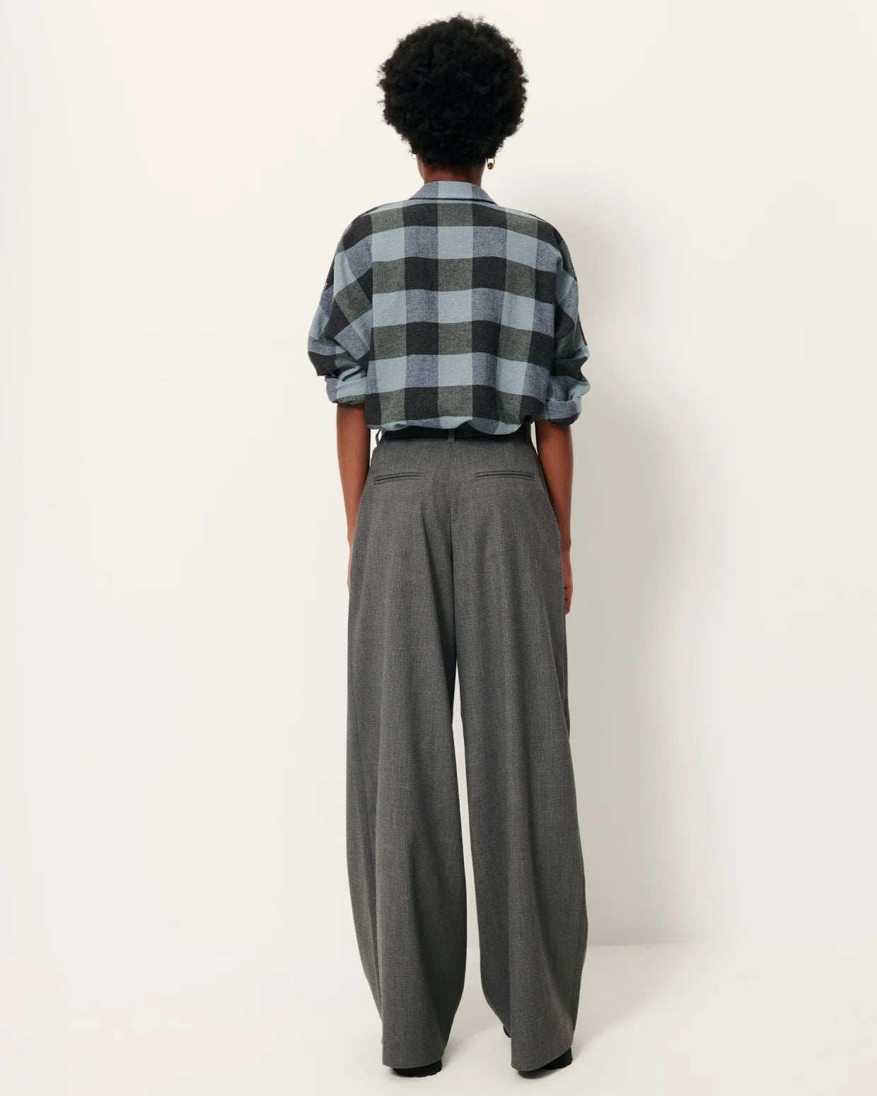 Wide-leg trousers in soft Oxford fabric with a chambray effect.
