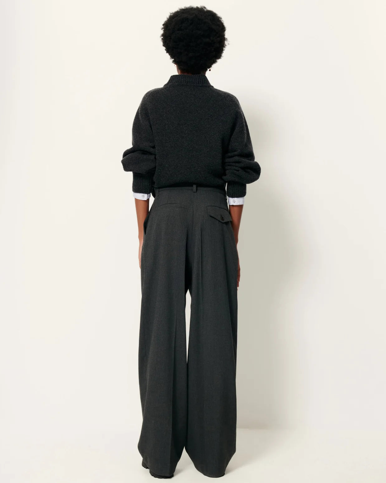 Masculine inspired tailored trousers with knife pleats at the waist in soft chambray-effect Oxford fabric.