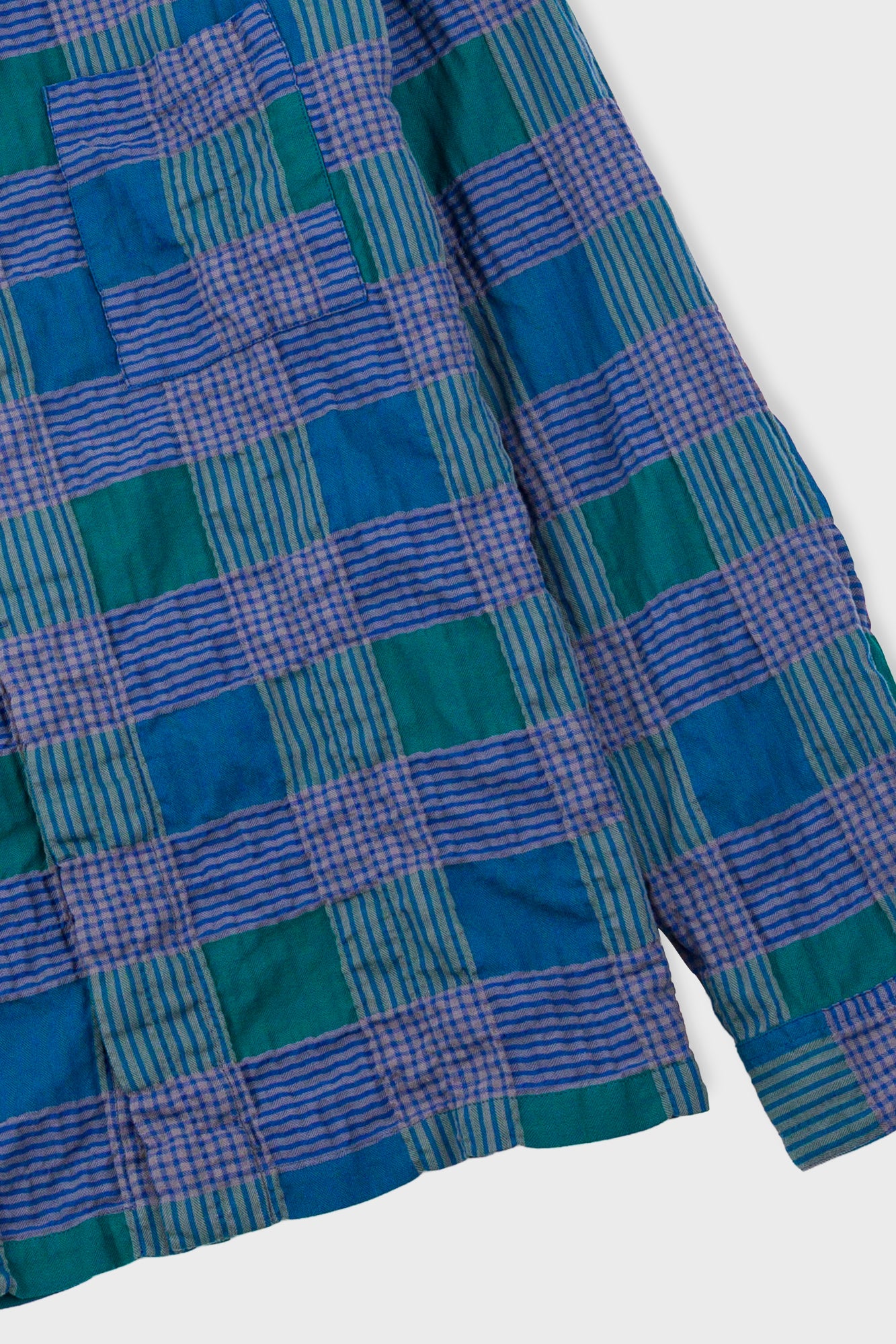 Our Phthalo Green Check offering has a gently crinkled surface texture and has been garment washed for softness.