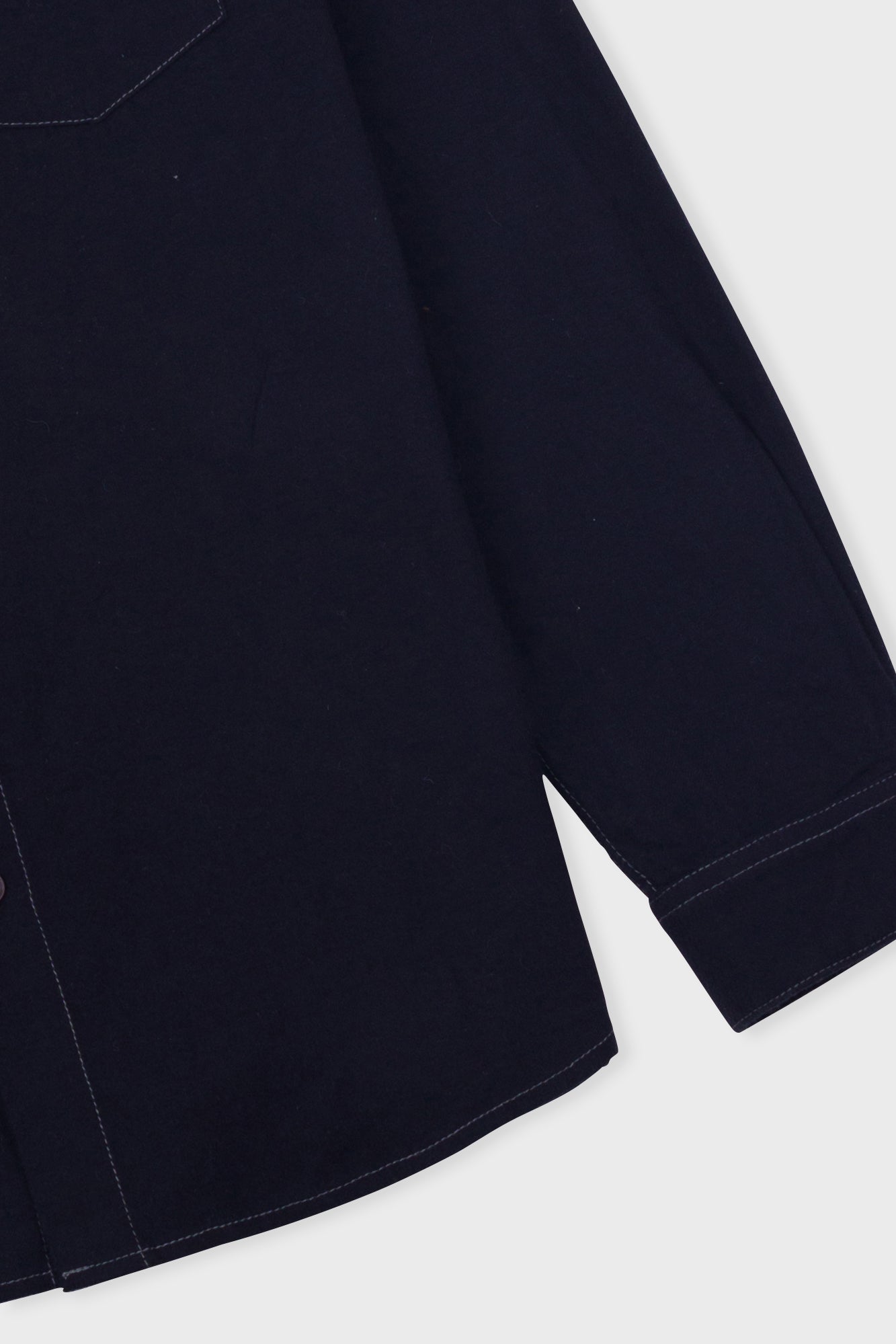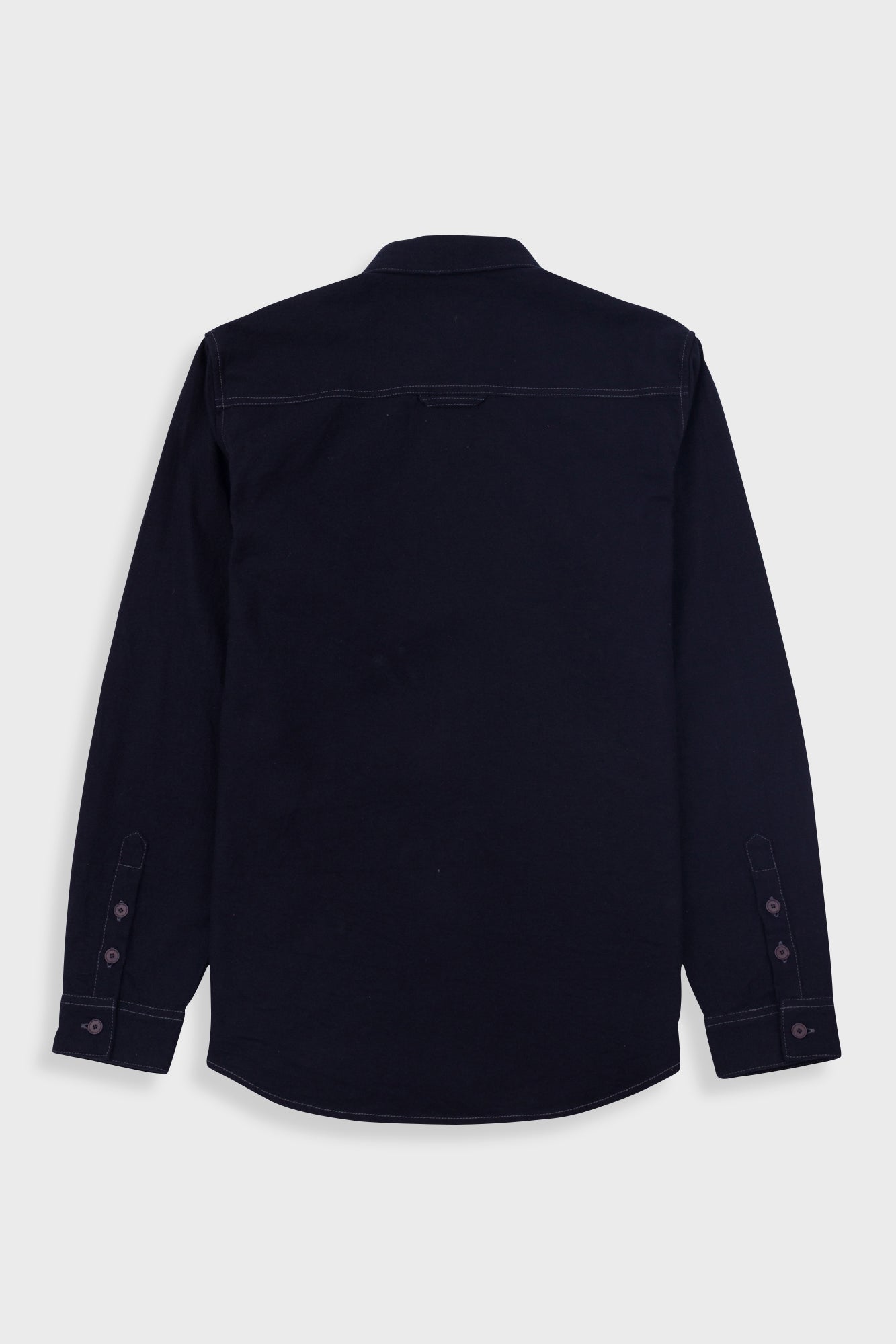 Grown on centre front button placket and button cuff and cuff placket.
