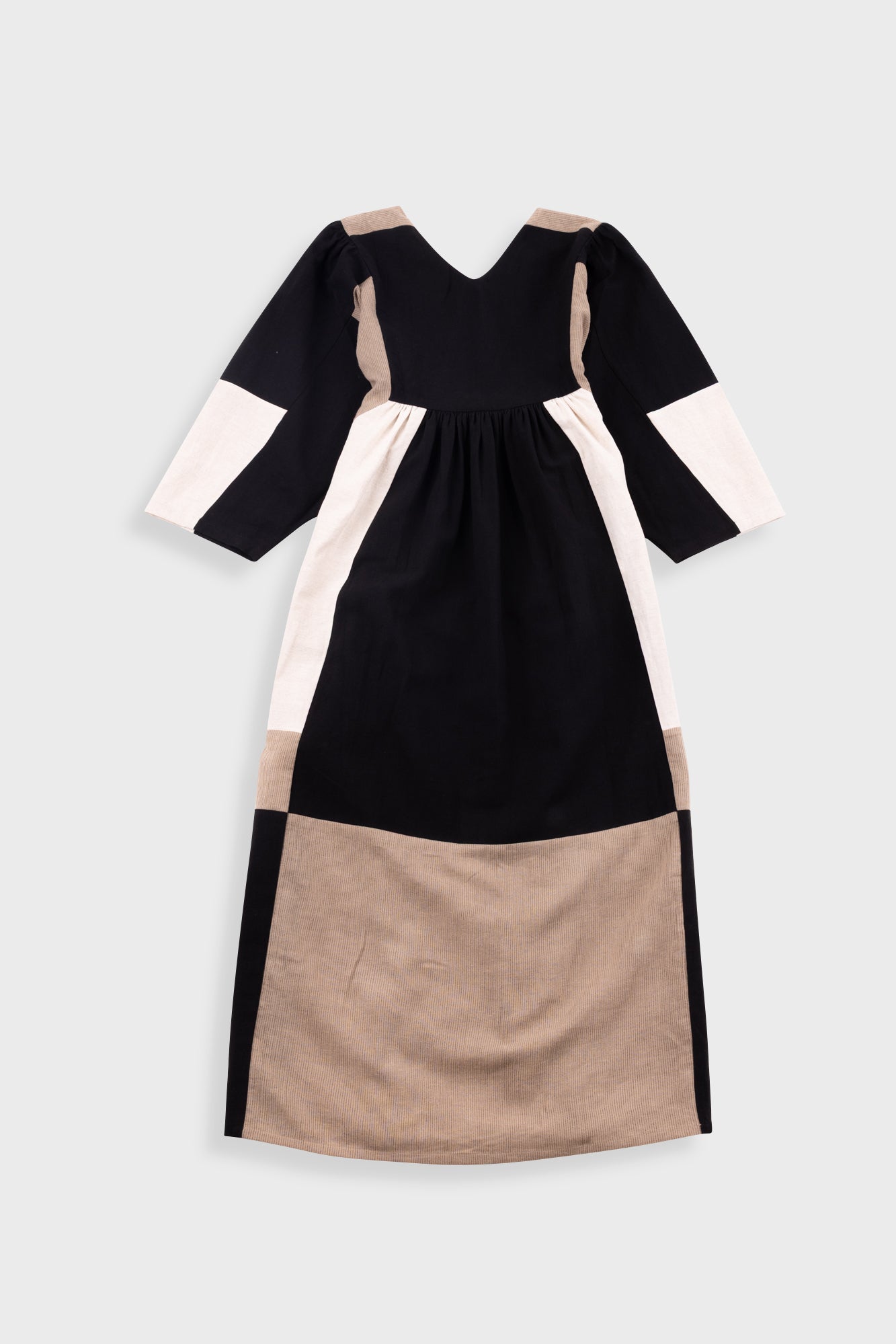 The Betty Dress is a very classic Sideline style with bold panelling and an over-sized fit. This style is crafted from a lovely cotton linen blend fabric in contrasting colours. The Betty Dress is a very easy to wear style and features a flattering v necking at the front and back and covered buttons on the shoulder.