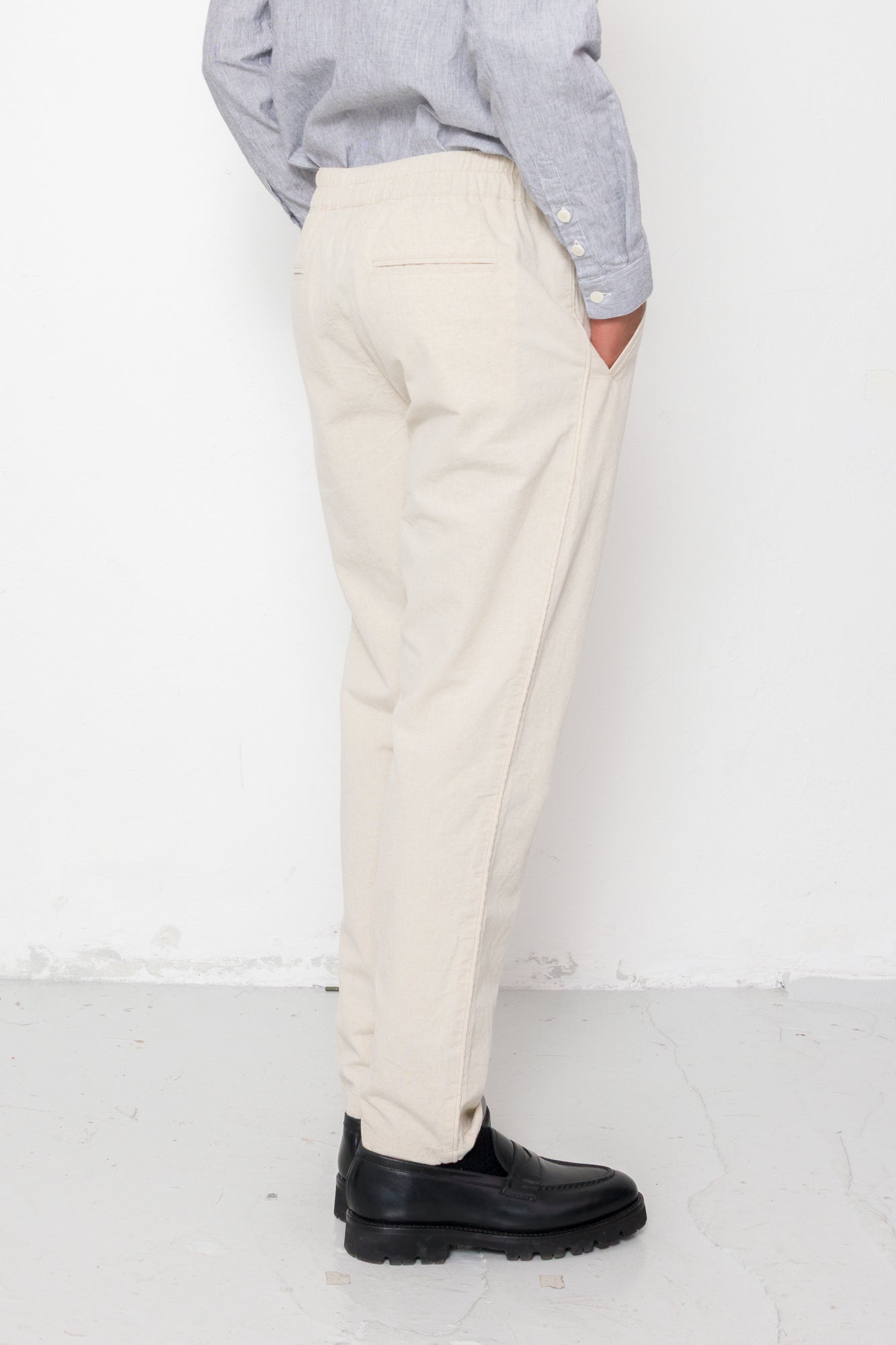 Our Cotton Linen Trouser, fitted with an Elasticated Waist Band, designed in a Summery cotton linen blend fabric which has been garment dyed for character of colour.