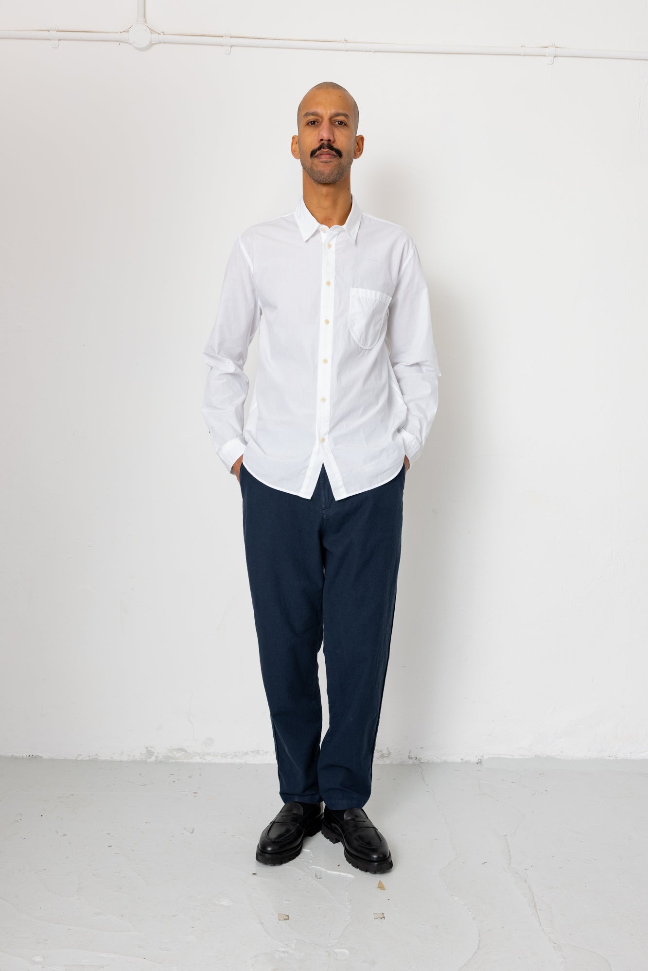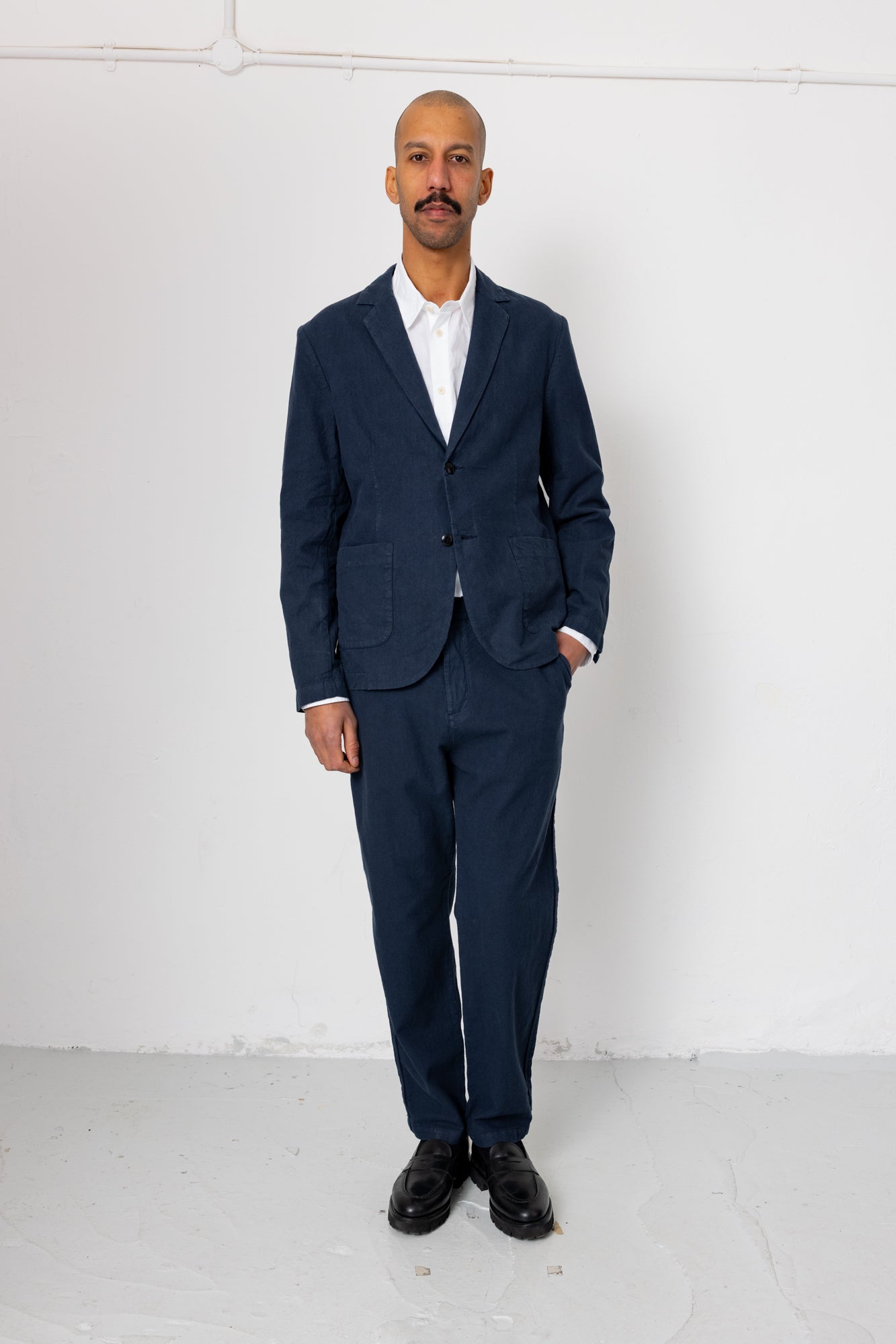 - Relaxed, softly tailored style.
