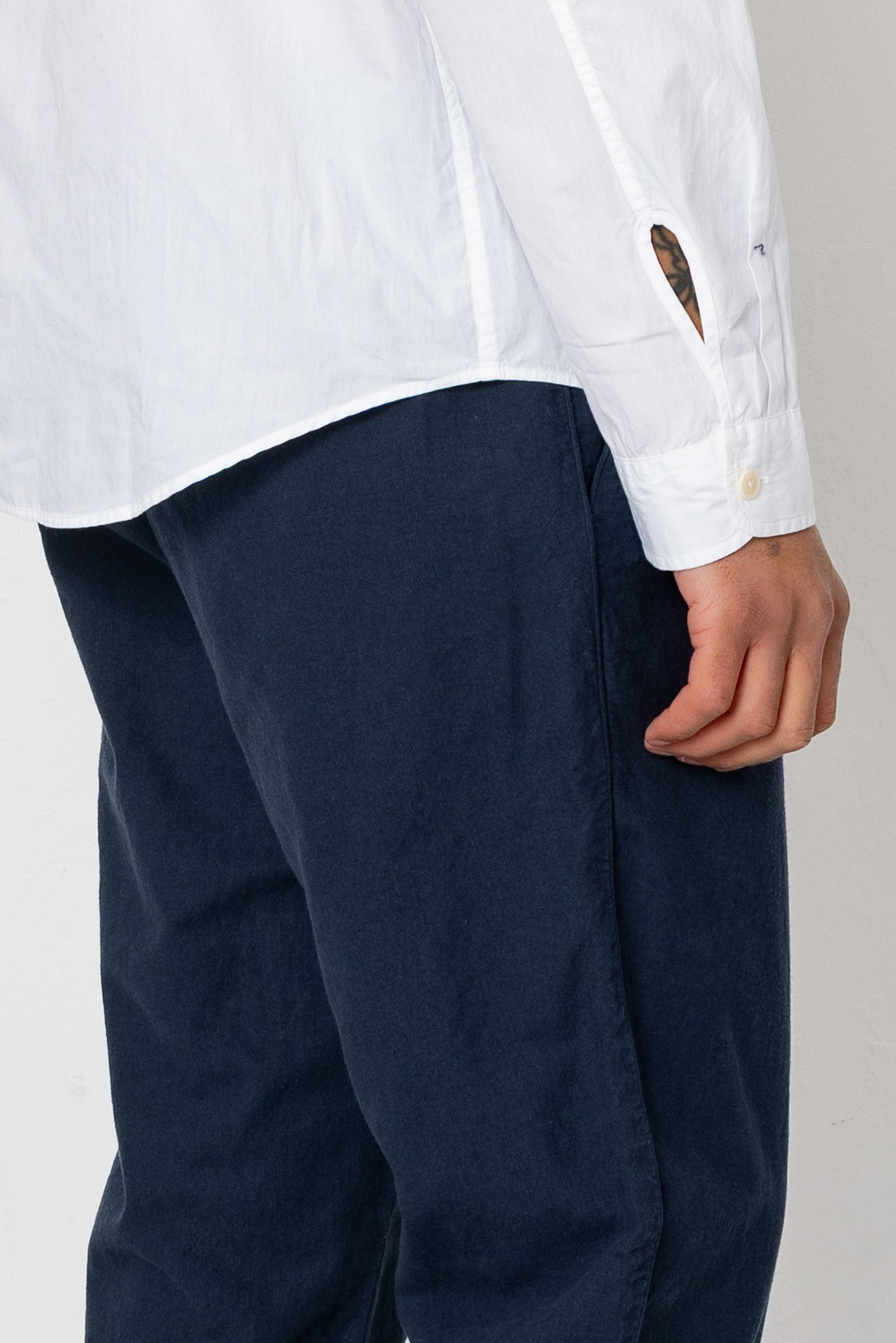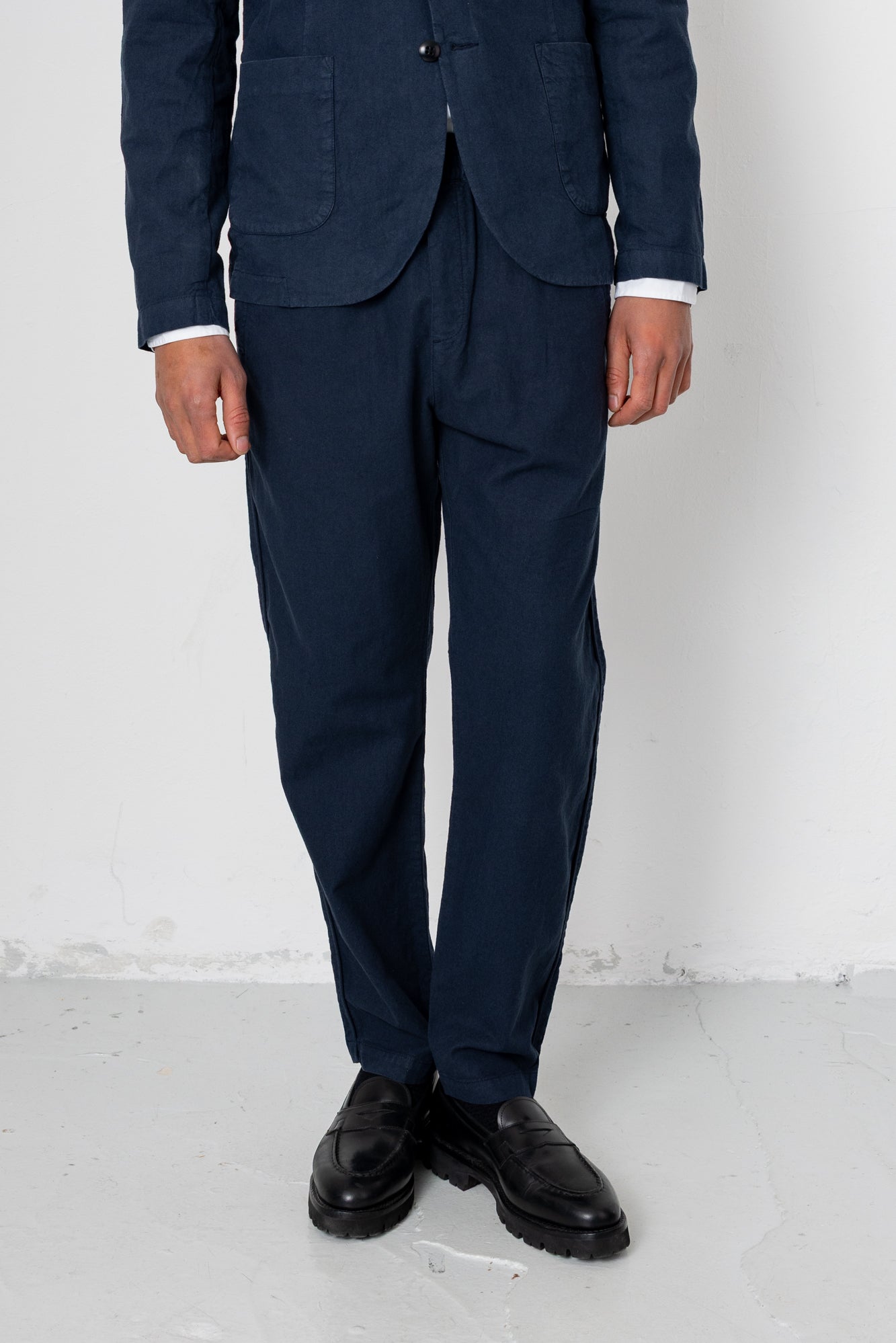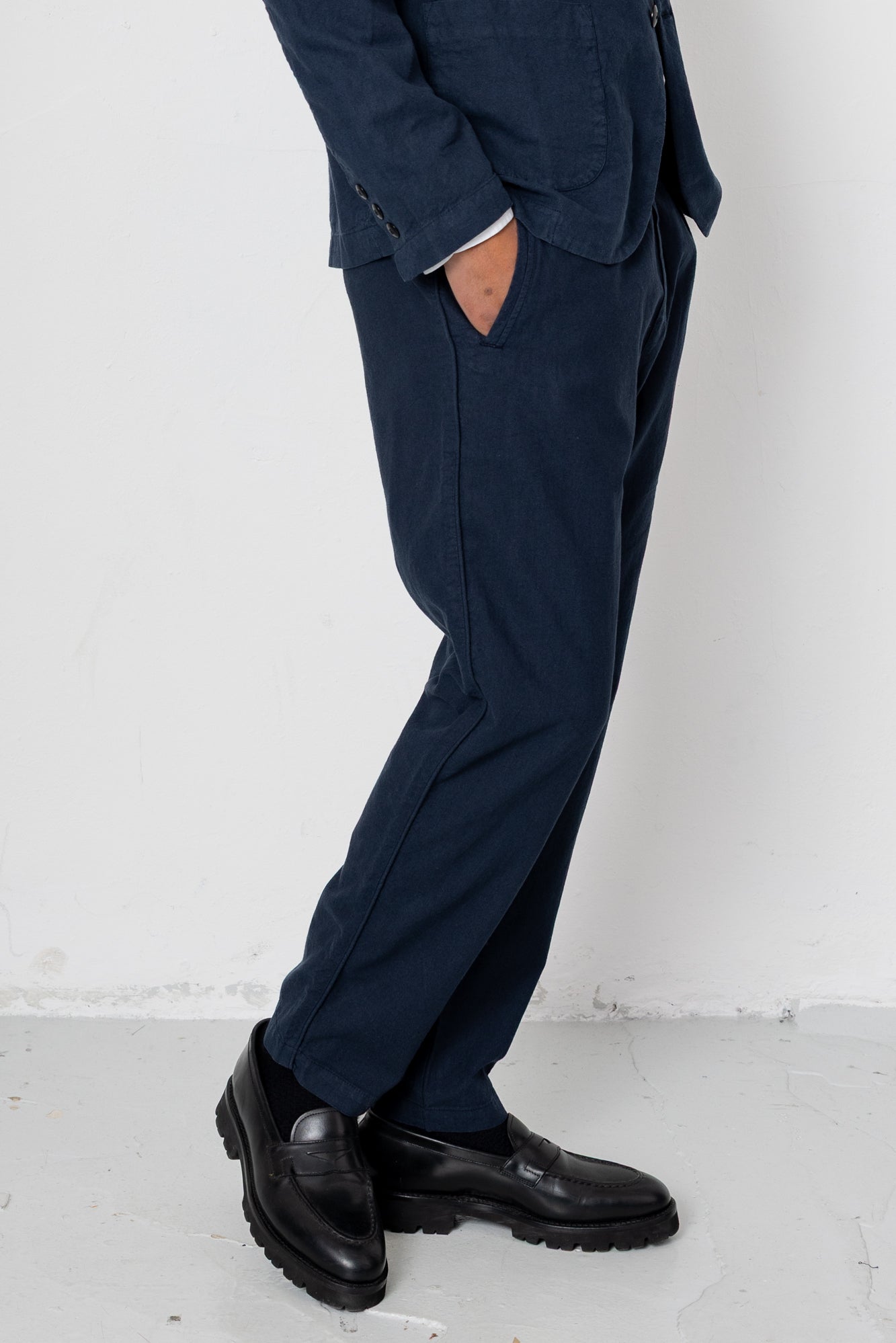 Fixed Waistband Cotton Linen Trouser - Dark Navy