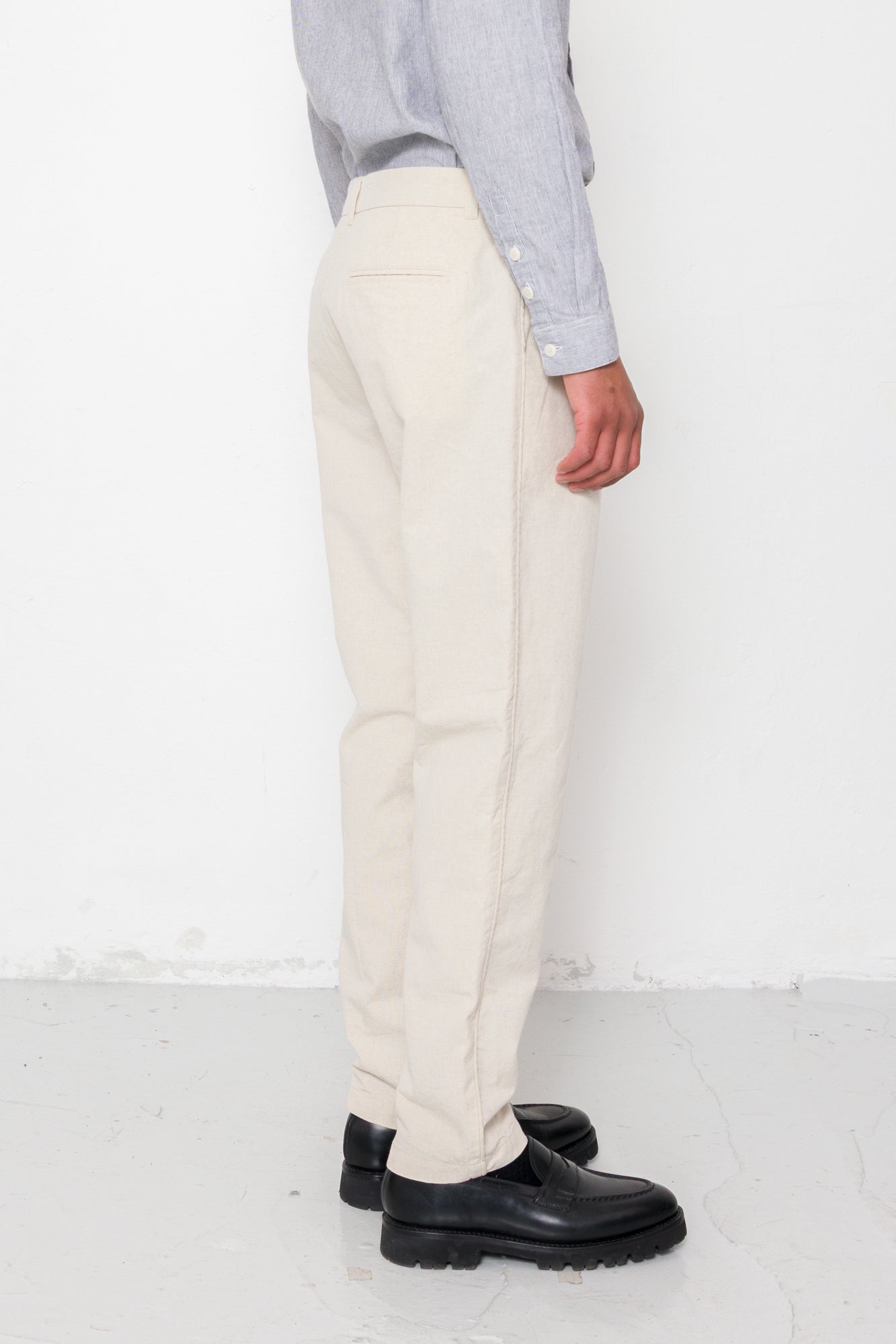 Fixed Waistband Cotton Linen Trouser - Natural Linen Canvas