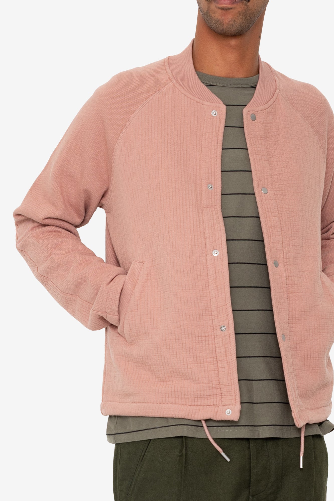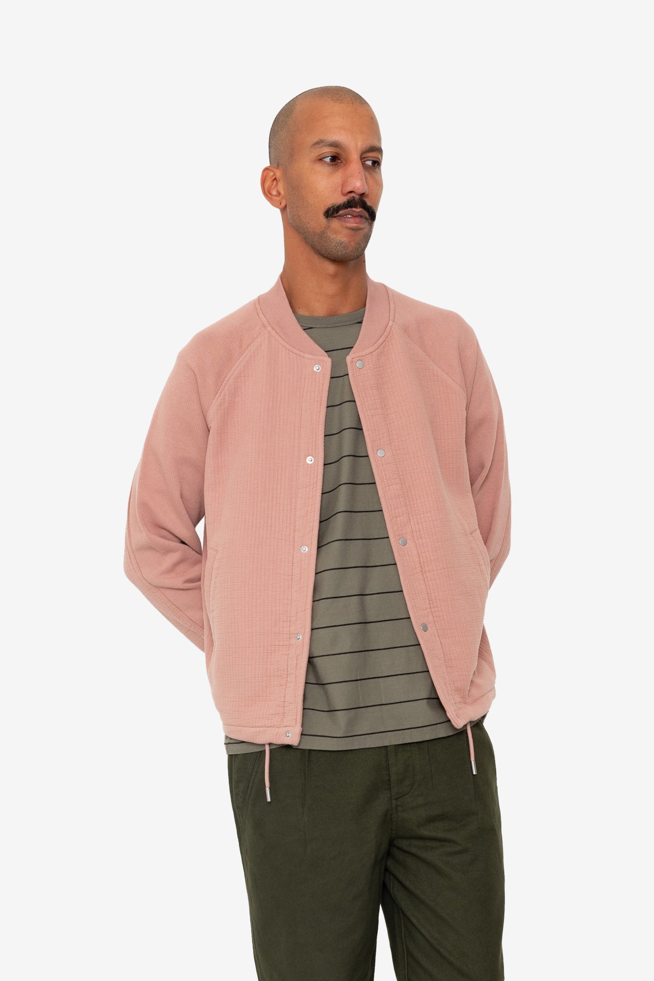 A classic bomber style jacket delivered in a jersey cotton, made using organic cotton fibres.