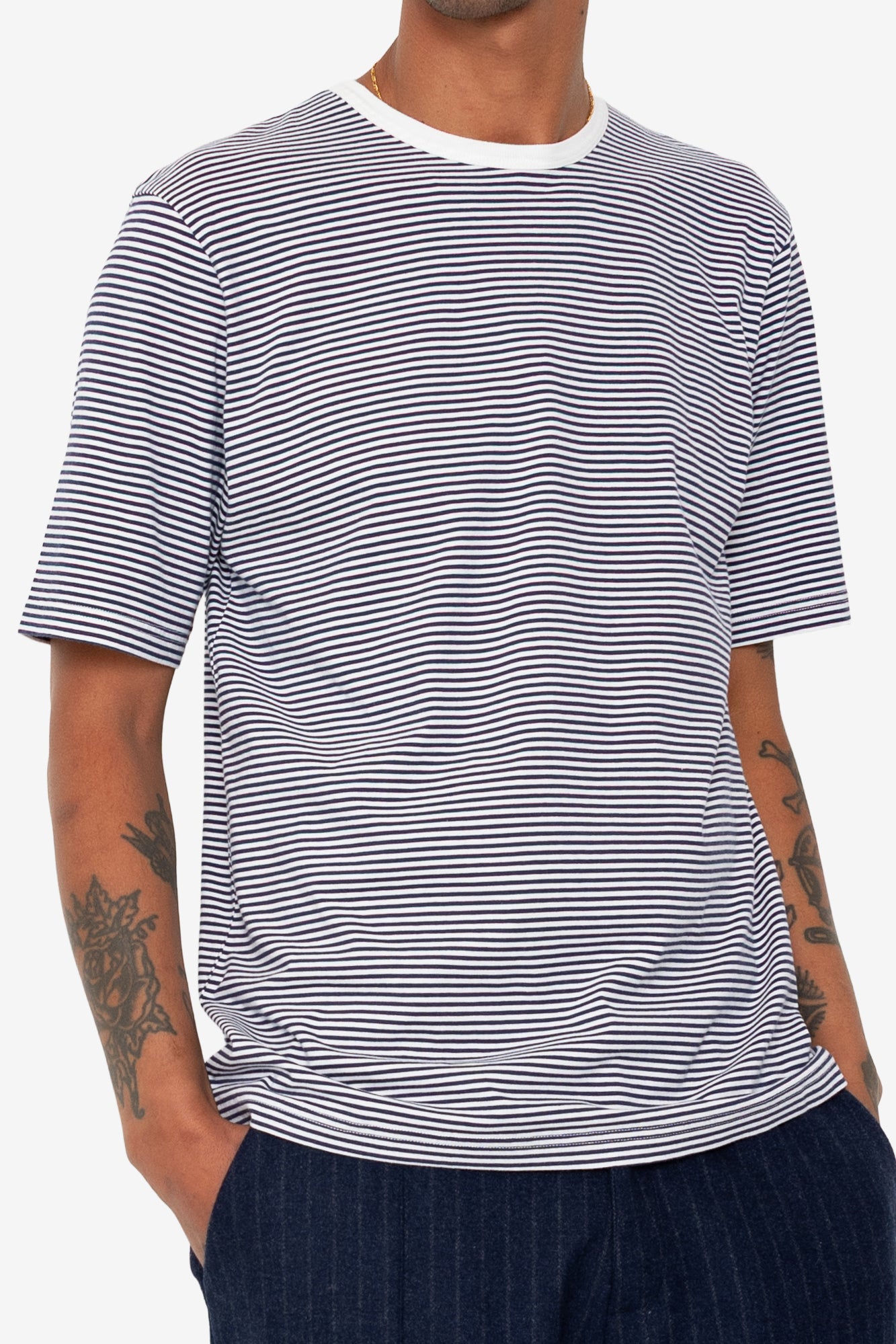 1x1 Striped T-Shirt - Bright Navy / Ecru