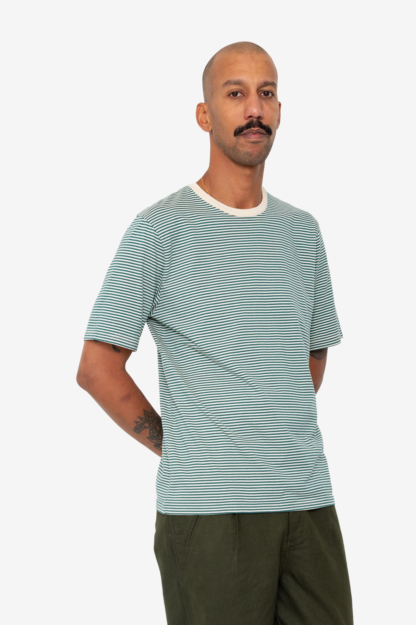 1x1 Striped T-Shirt - Phthalo Green / Ecru