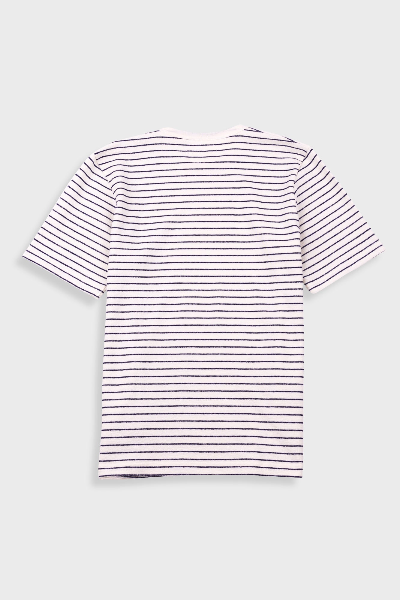 Our Textured Striped T-Shirt has more weight than our other tees and is characterised by its loop jersey fabric that gives it a textured surface finish.