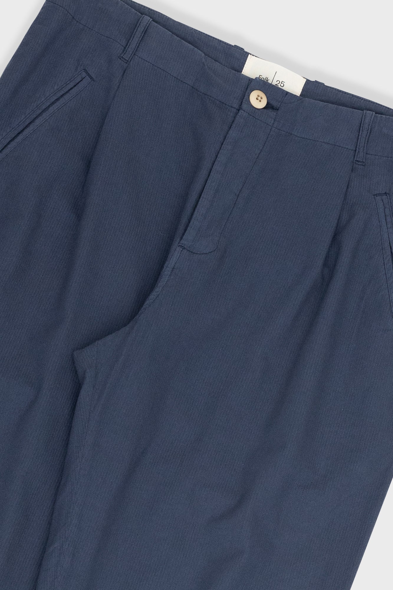 - Grown on waistband with self fabric belt loops.