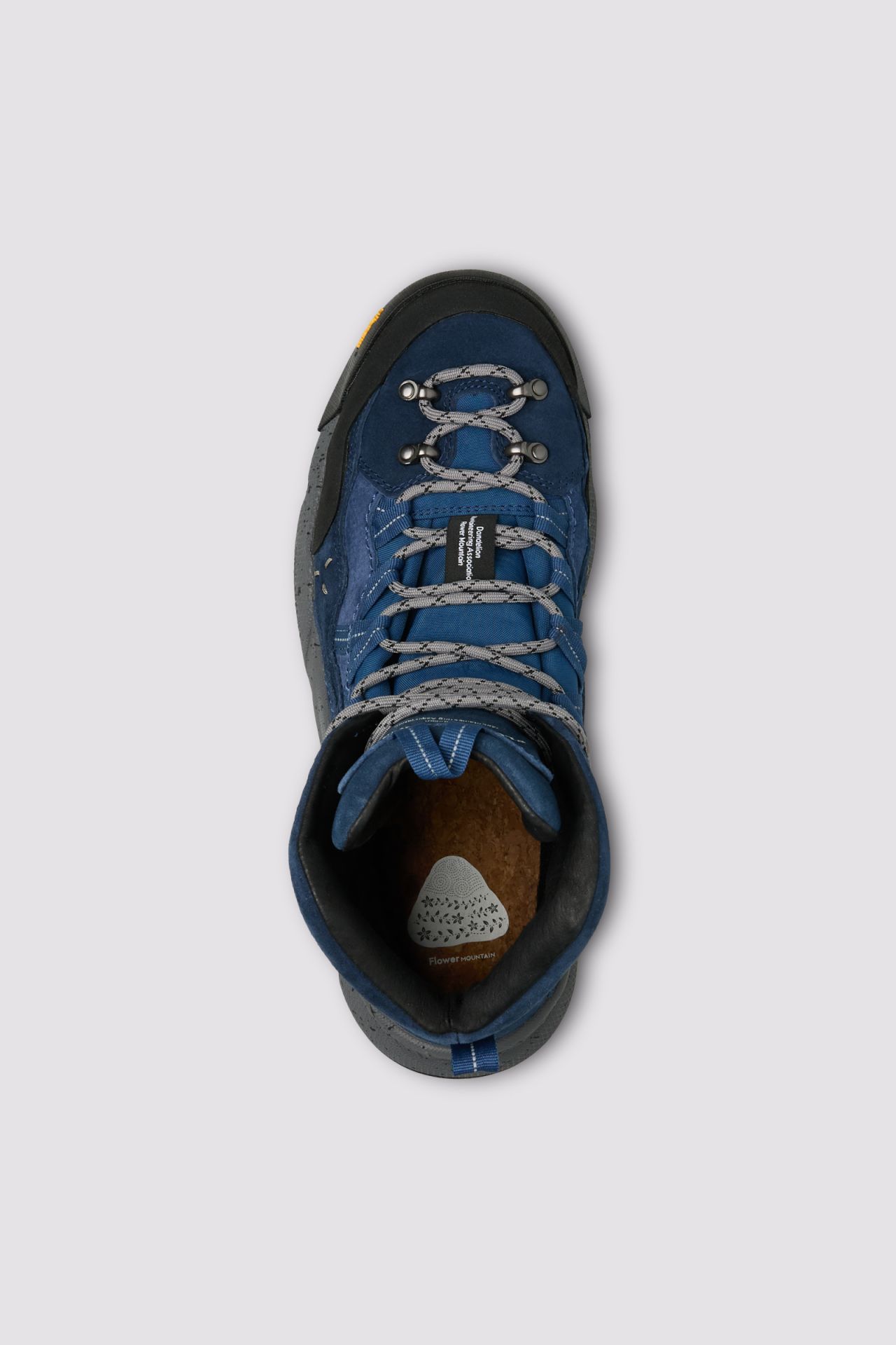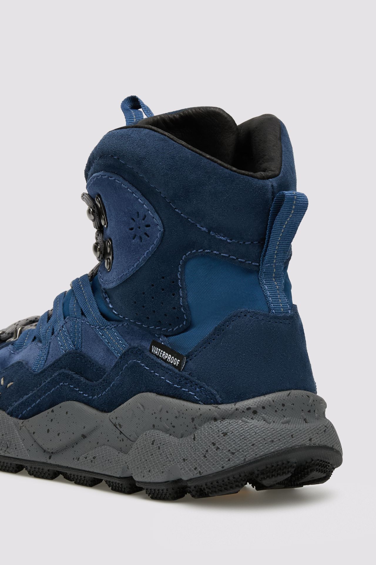 High top sneakers in suede and waterproof fabric. Trekking closure with tubular laces and metal eyelets. Fabric and leather lining, natural antibacterial cork insole. Ultra-lightweight rubber sole with Vibram® tread.
