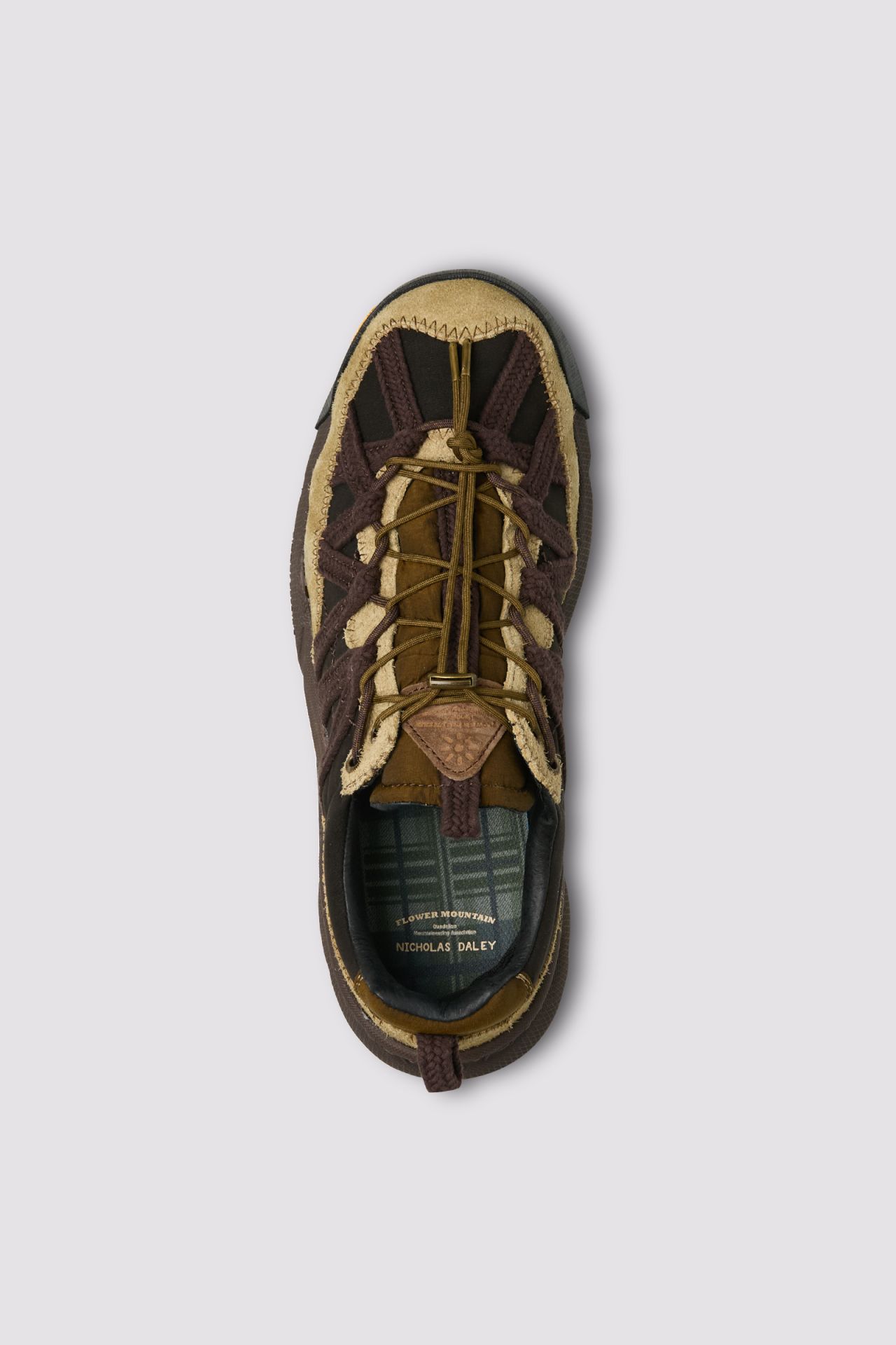 Nicholas Daley x Flower Mountain. Trekking sneakers in suede and technical fabric with a play of stitched laces. Closure with laces and quick stopper. Leather and fabric lining, fabric insole. Rubber sole with contoured edge and Vibram®