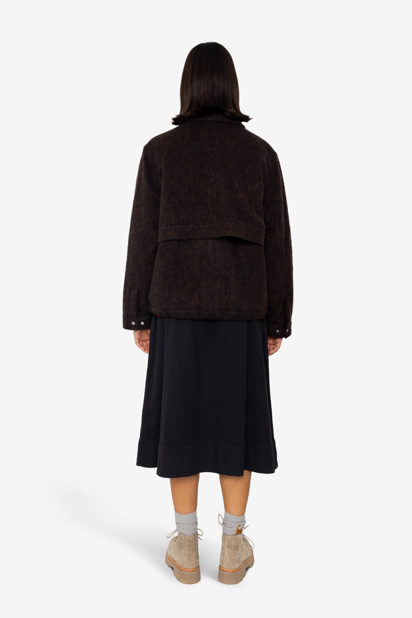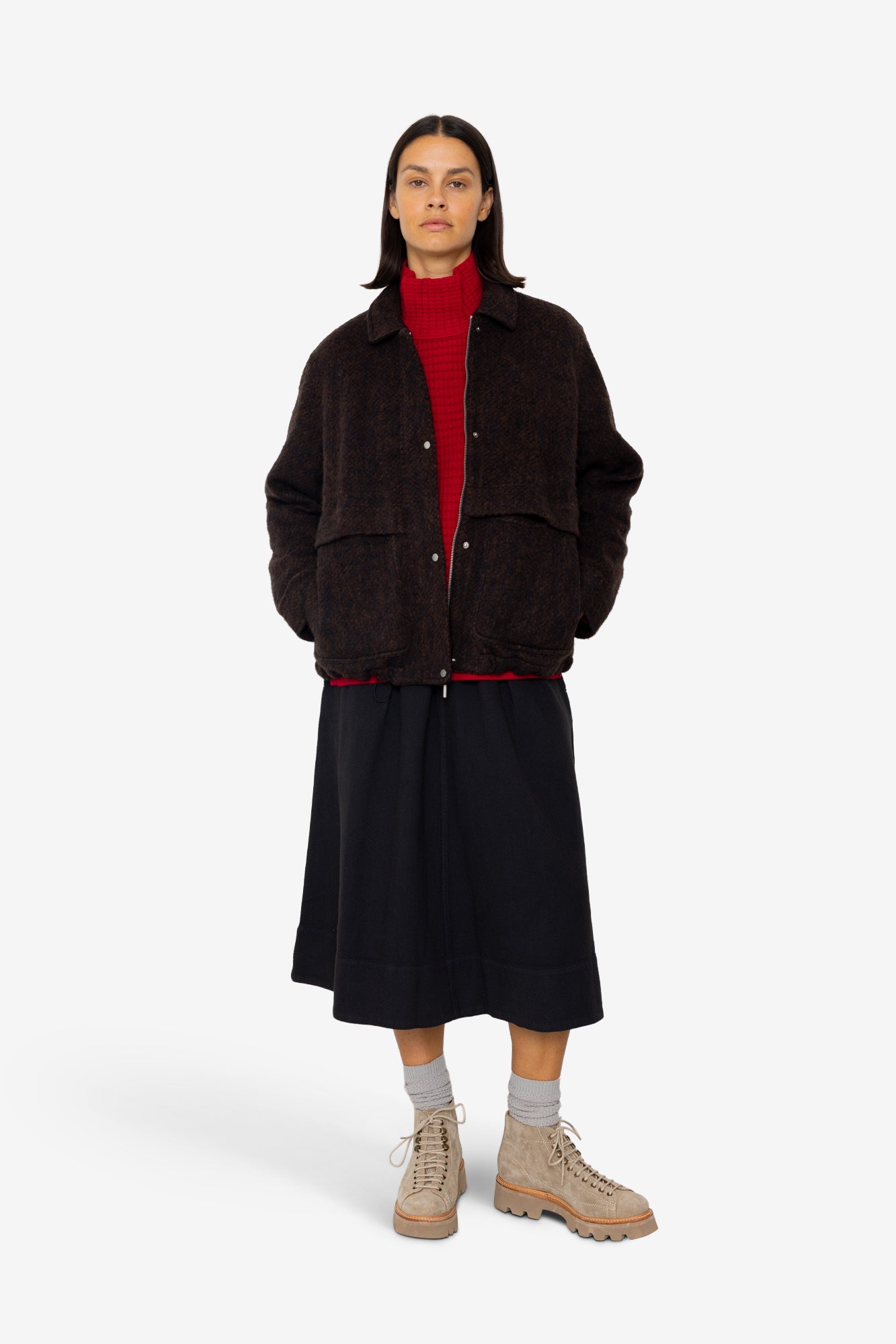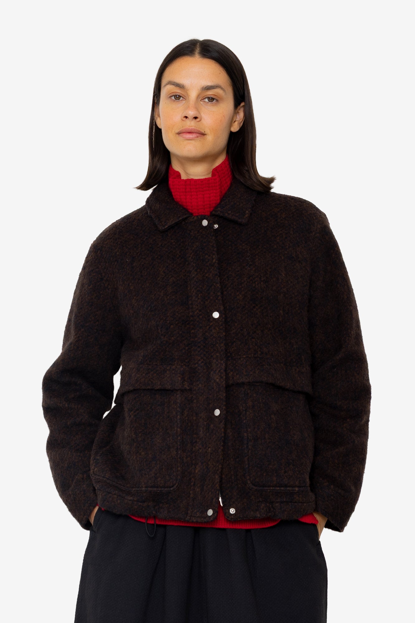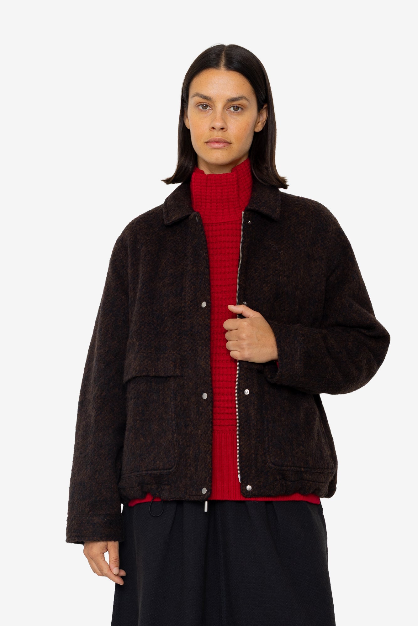 A sporty style jacket, designed in a wool blend fabric from Italy with brushed surface texture.
