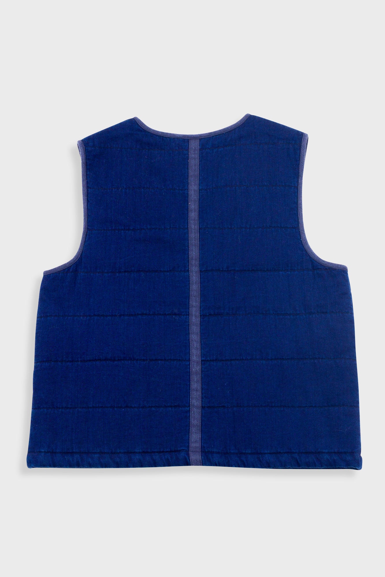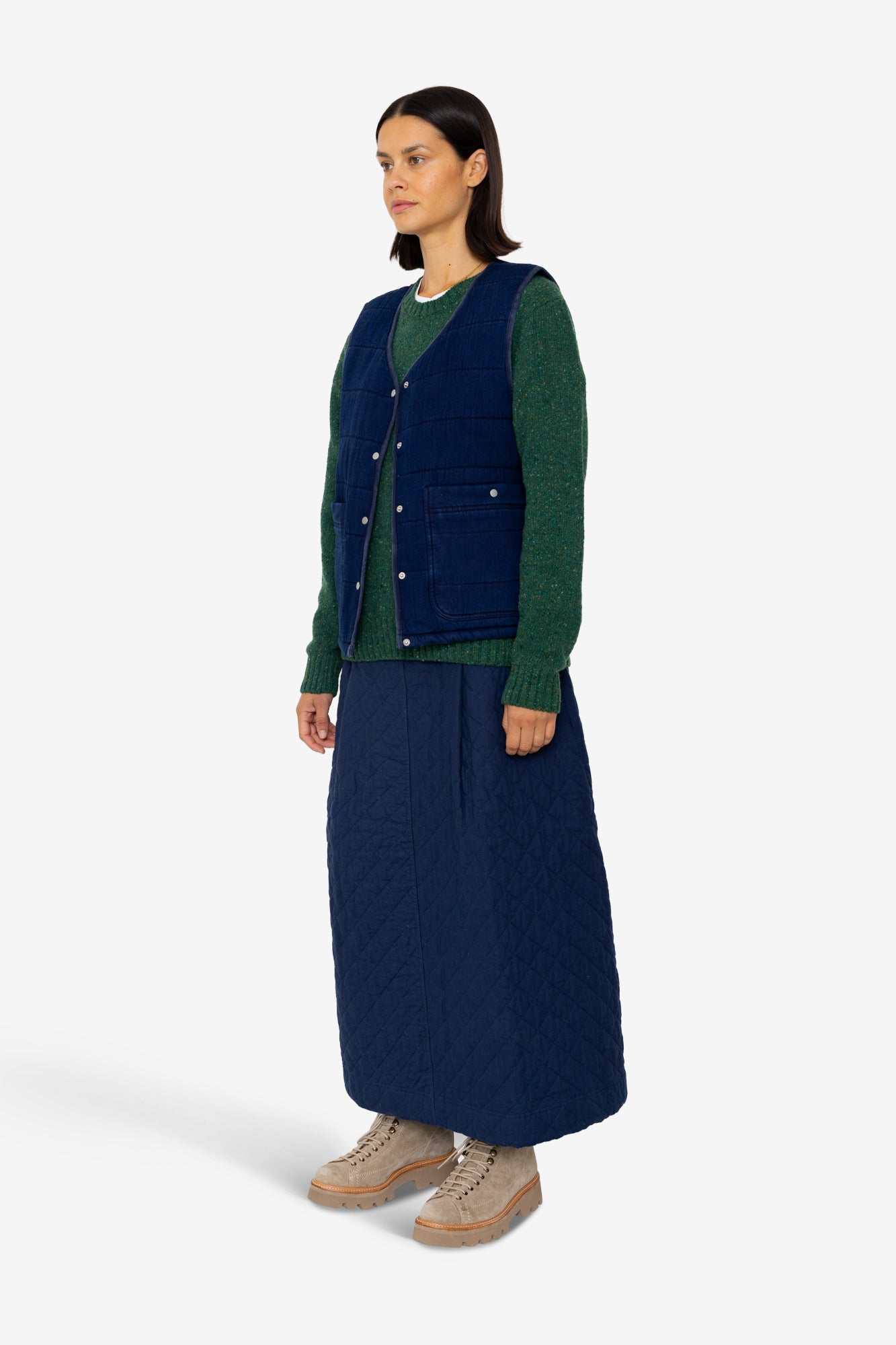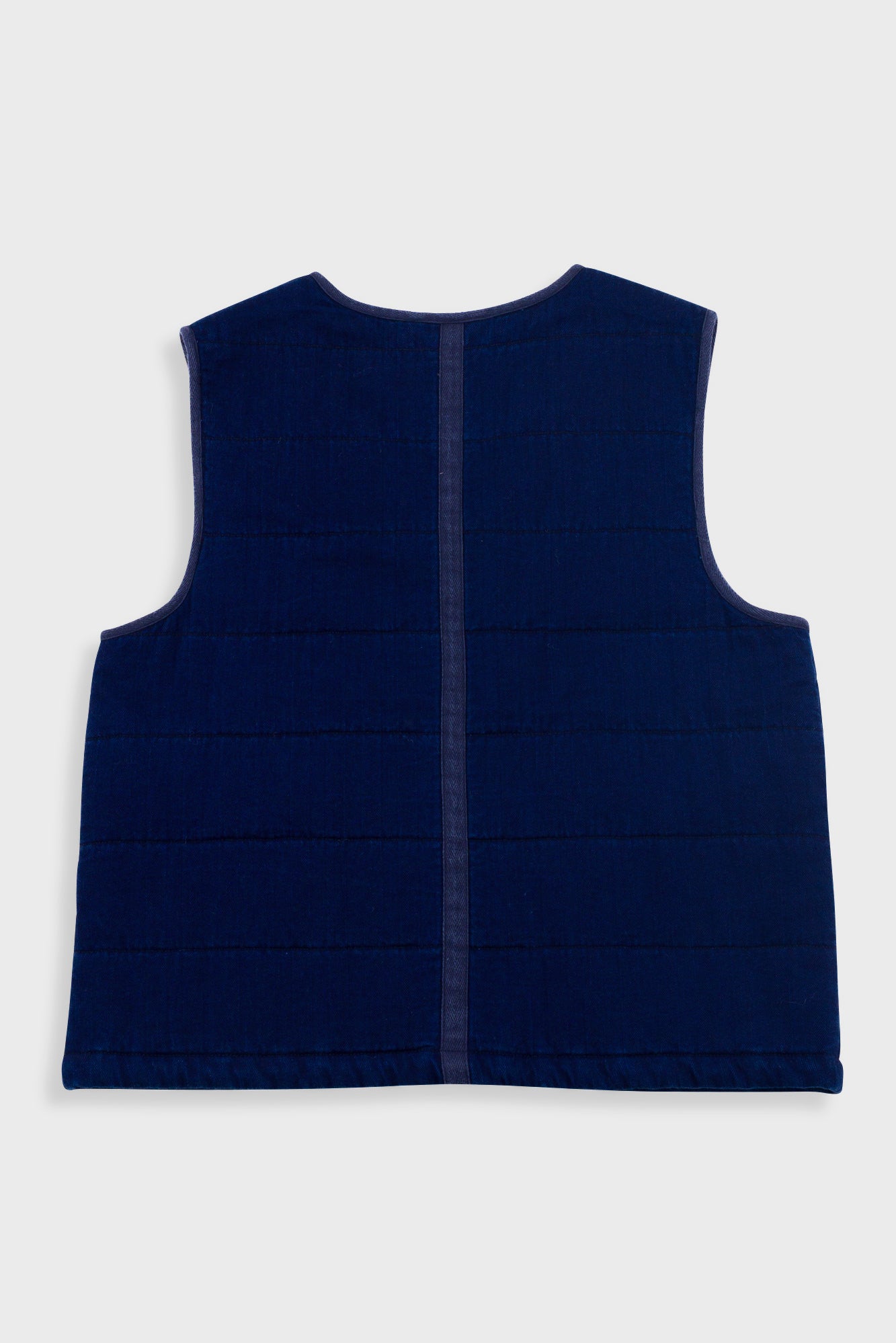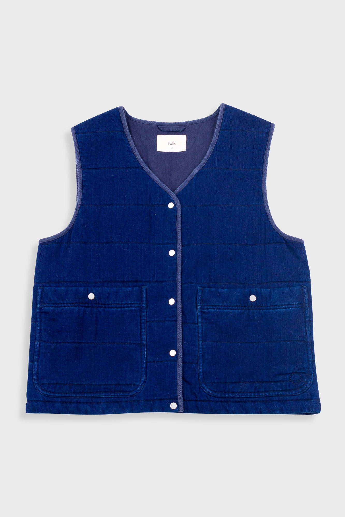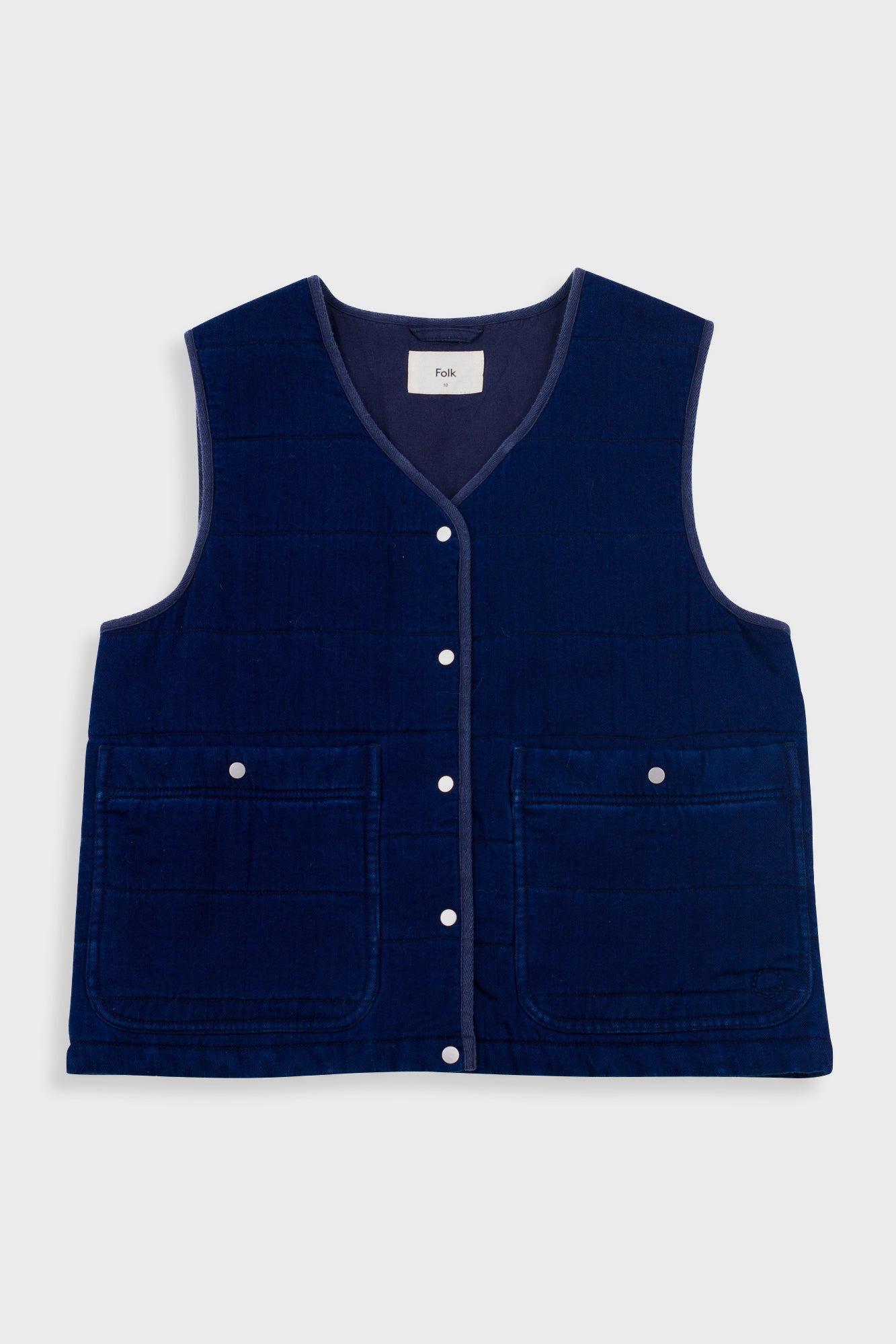 A casual style quilted gilet with a slightly oversized an boxy fit; the perfect layering piece. It has been designed in a soft cotton fabric, gently padded, and garment dyed for texture and character of colour.
