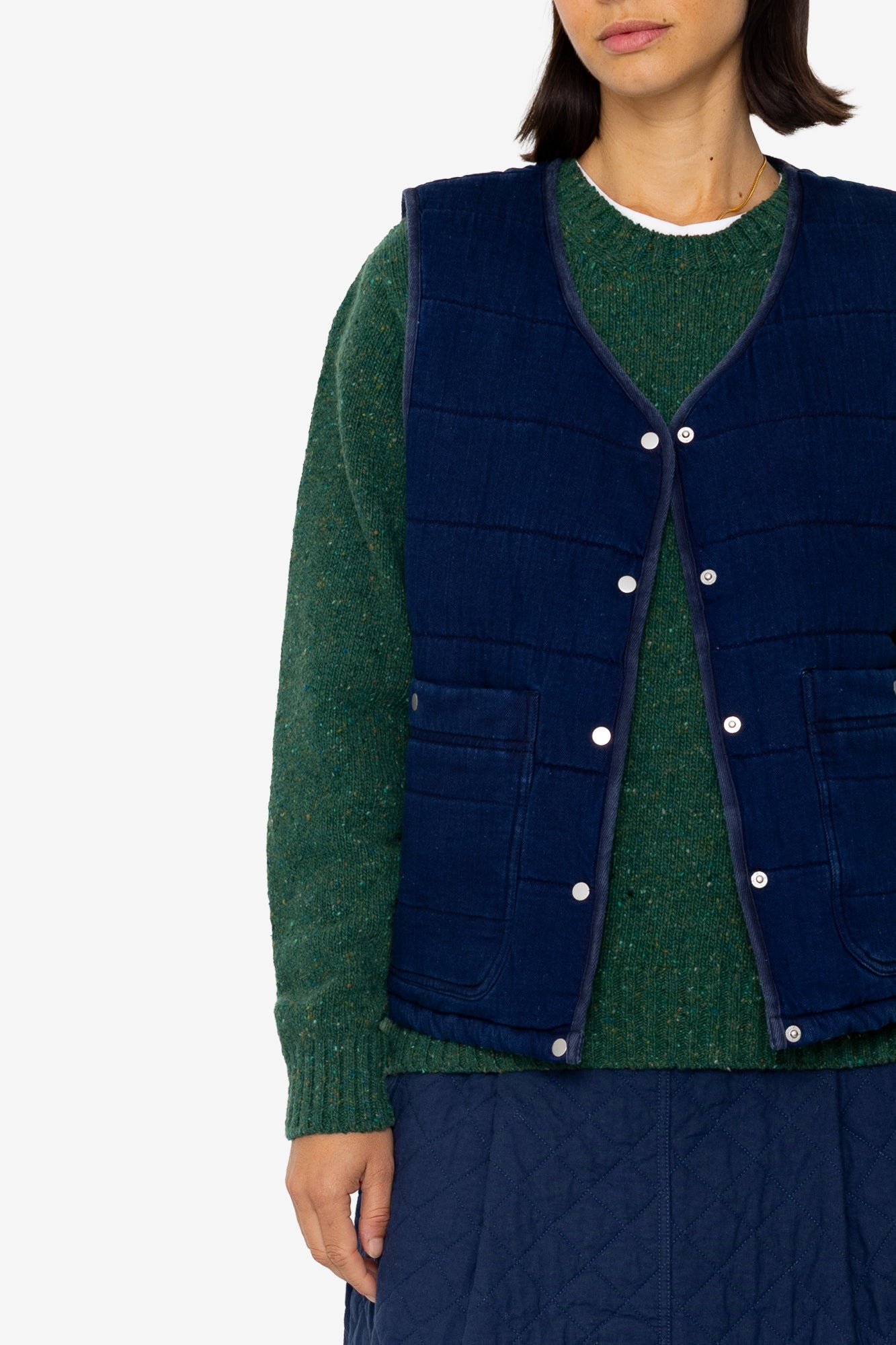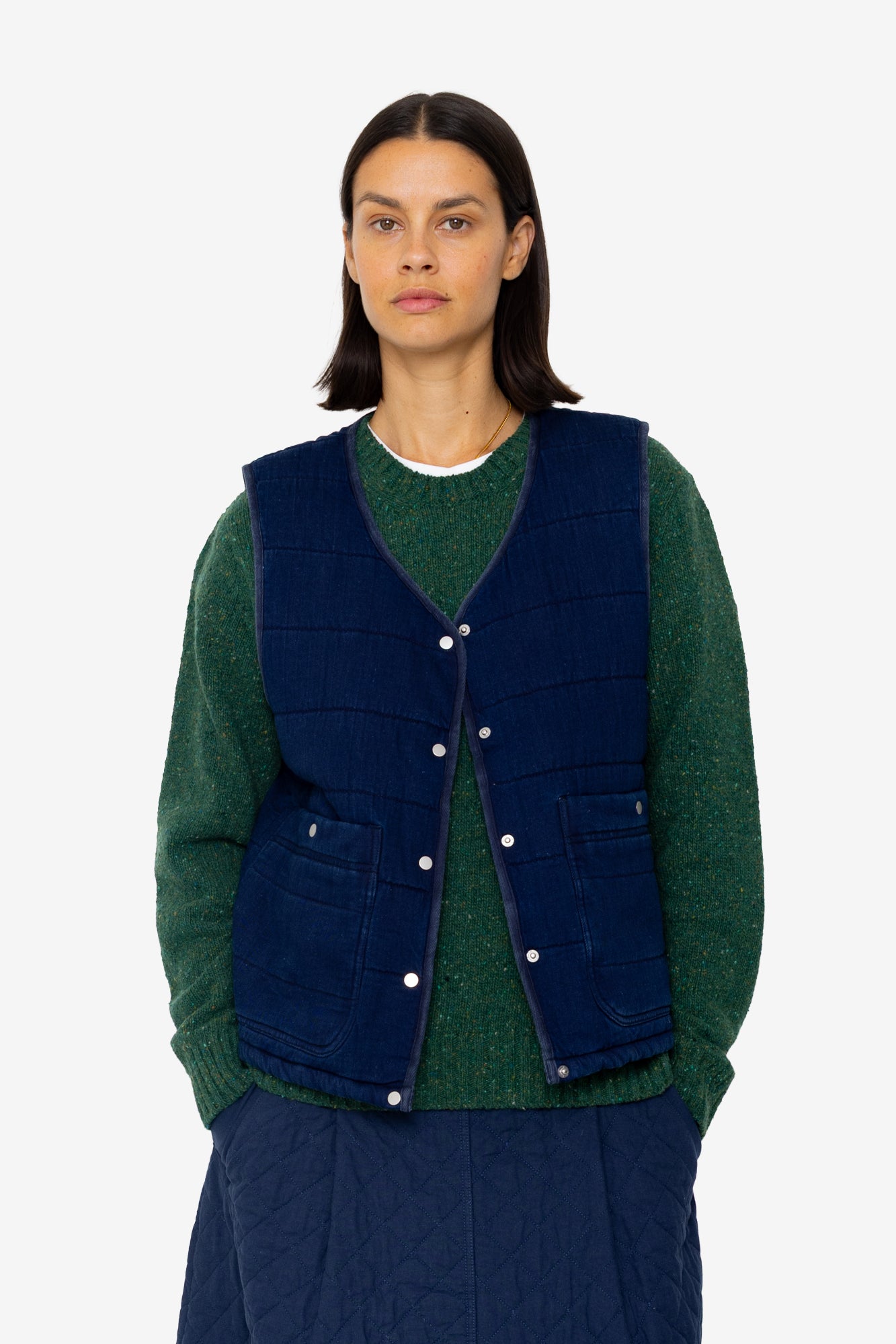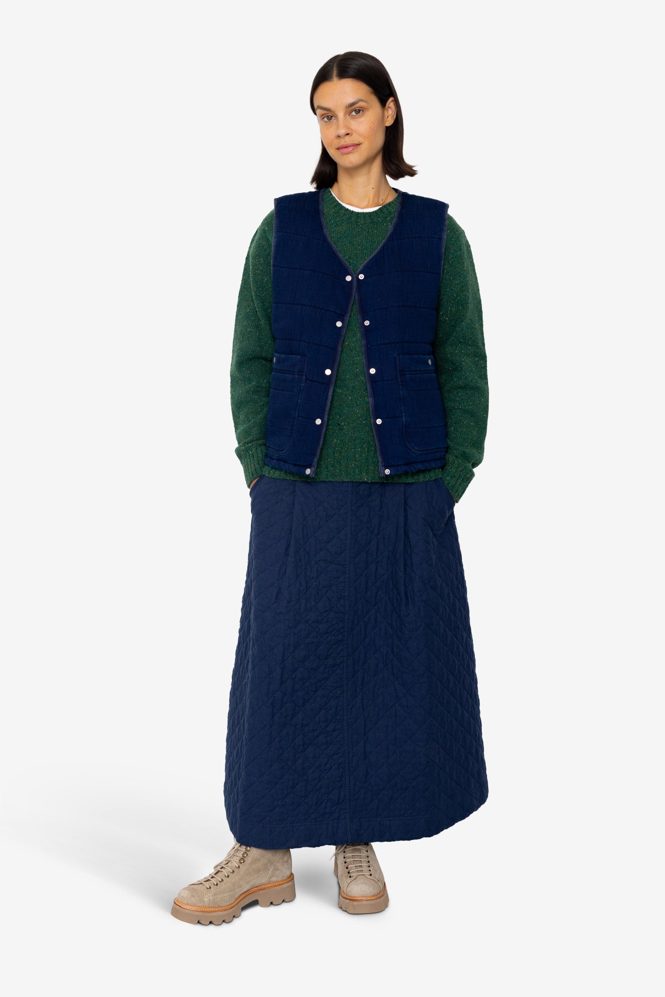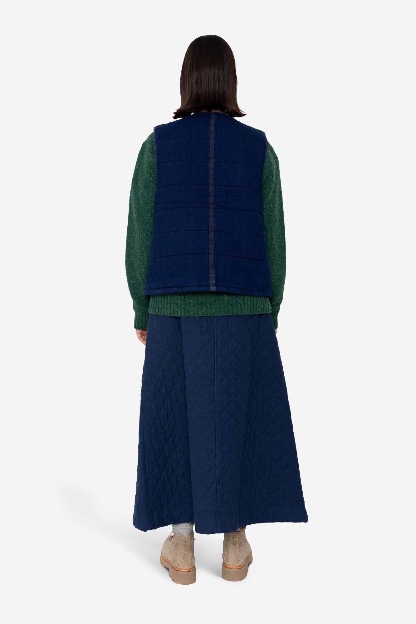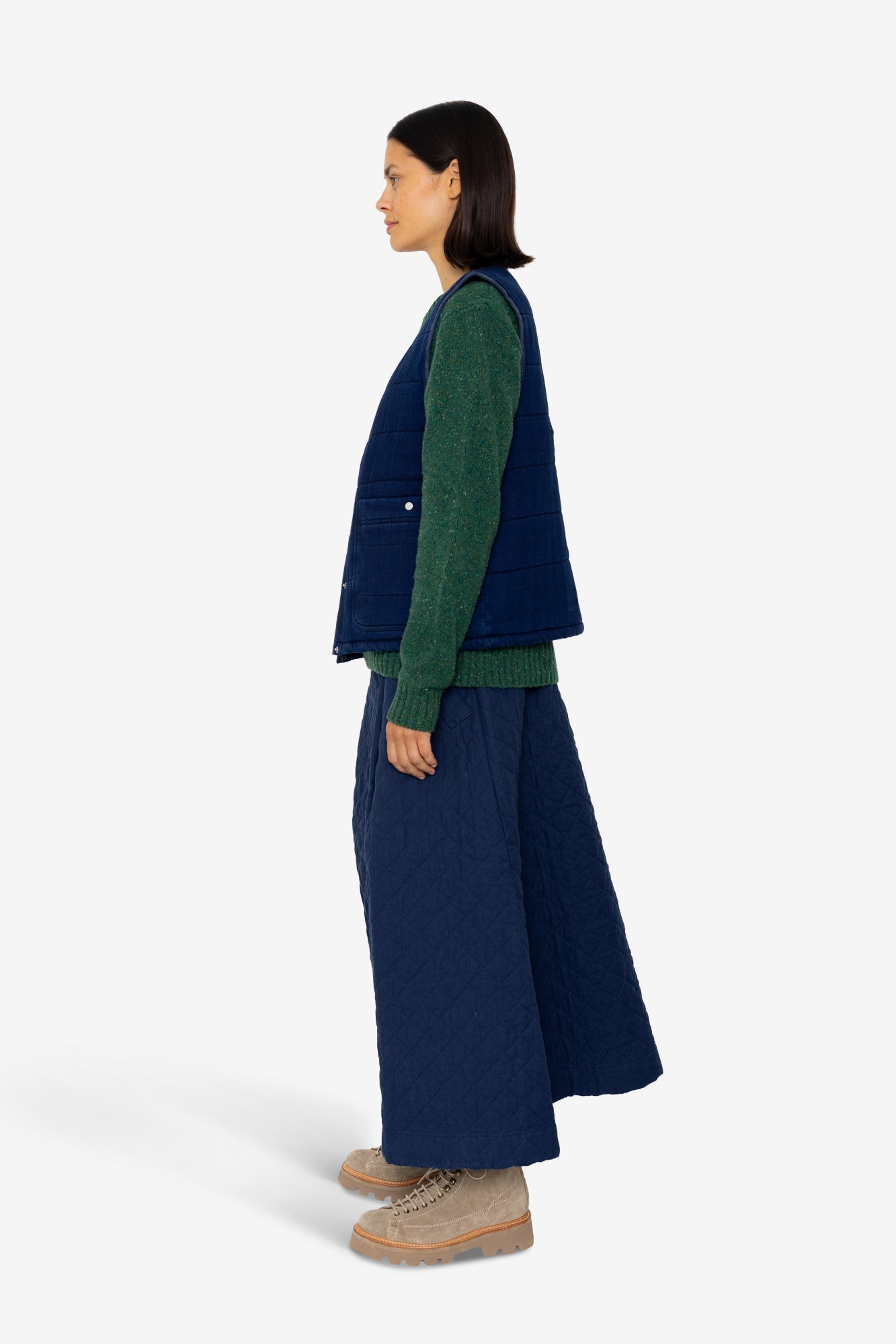 A casual style quilted gilet with a slightly oversized an boxy fit; the perfect layering piece. It has been designed in a soft cotton fabric, gently padded, and garment dyed for texture and character of colour.