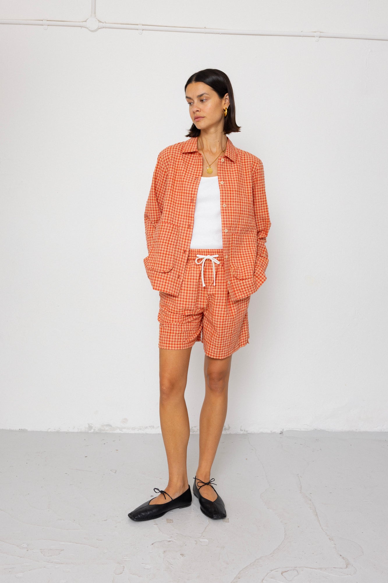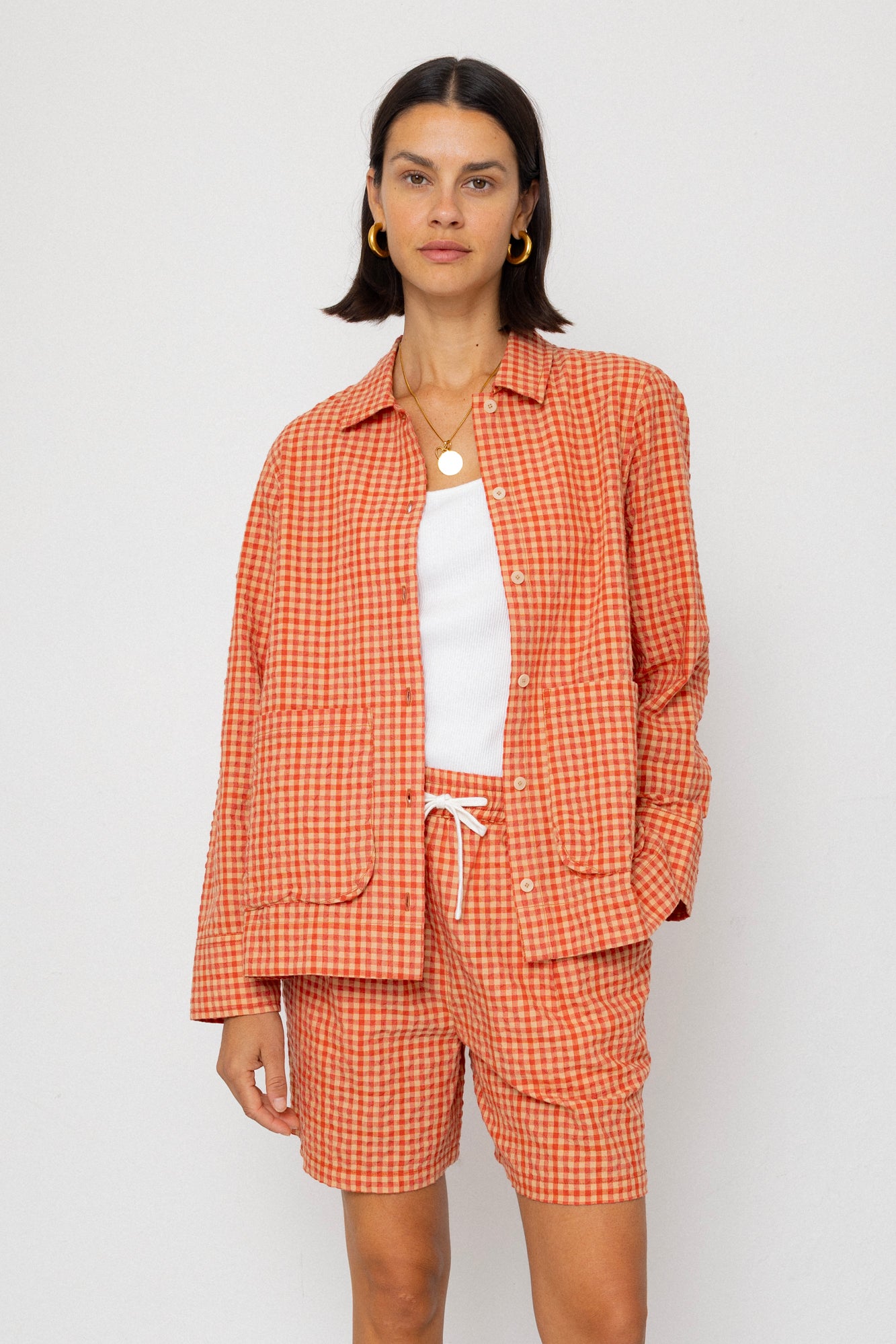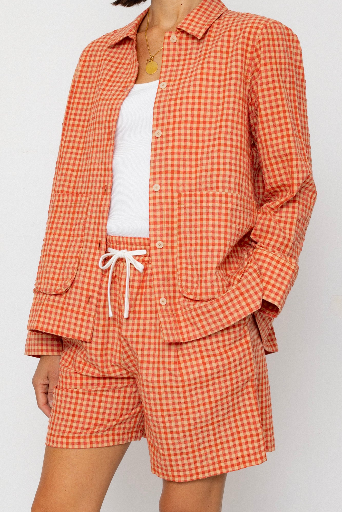 Wide Signal Shorts - Red Oxide Textured Check