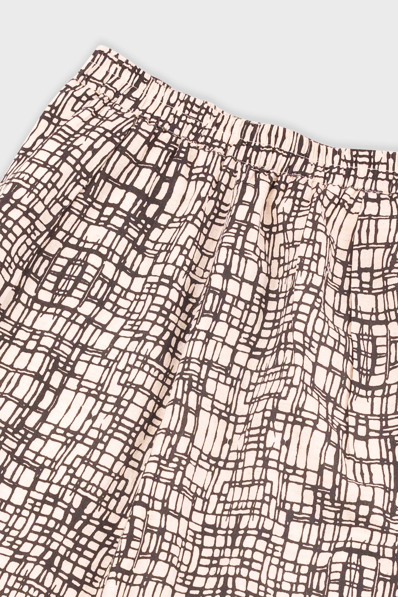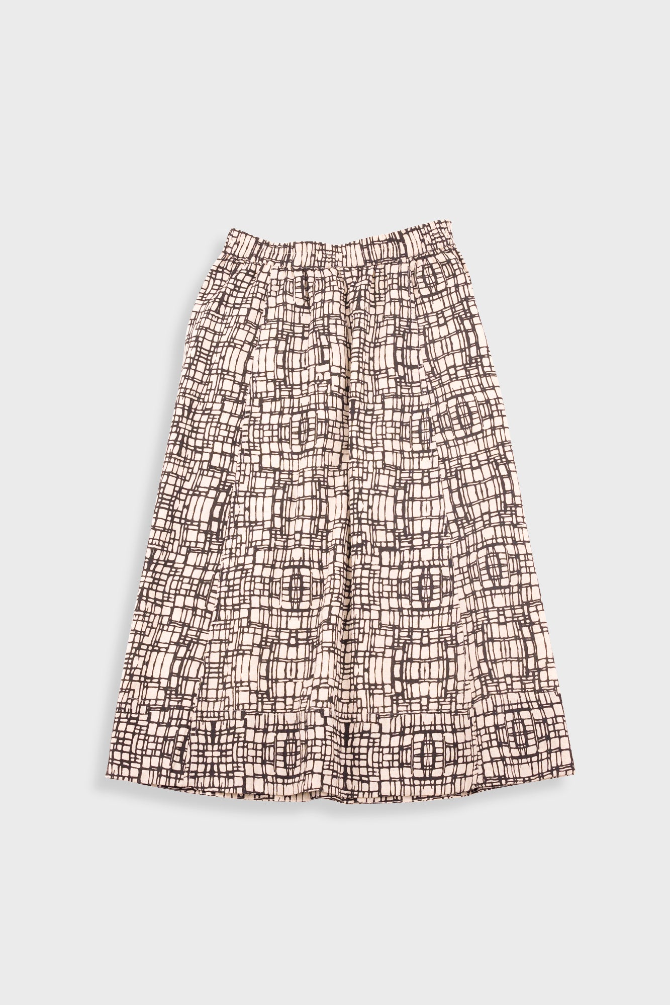 Our Full Seam Skirt is a mid-length skirt with flowing, easy volume. It has been designed in a printed cotton linen fabric with open weave structure.
