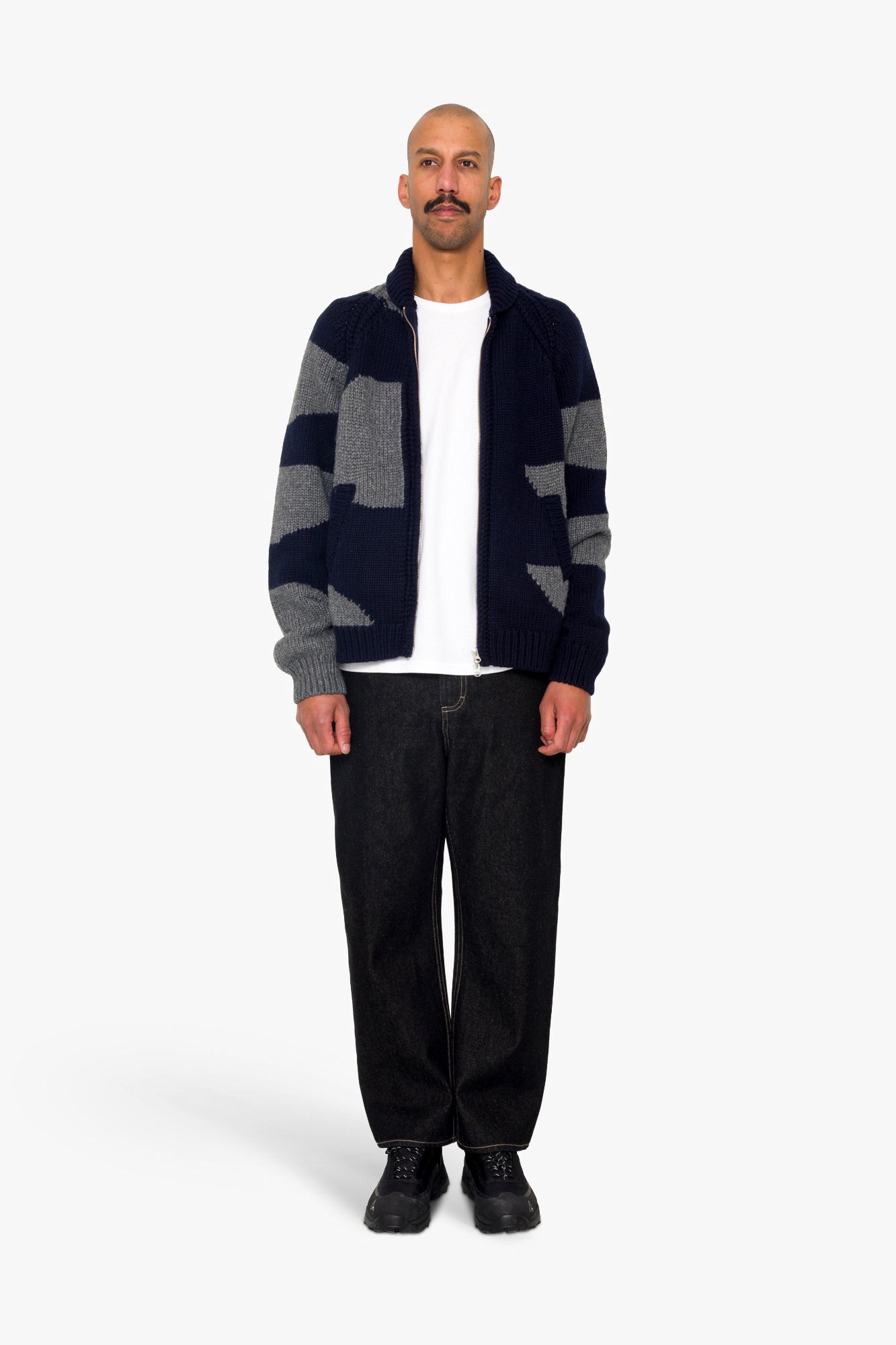 Designed in a limited run exclusively for our 25th Anniversary, this ultra-heavyweight knitted zip through cardigan features thick ribbed sleeve hems and a shawl collar. It has been constructed in a hand crafted geometric knit pattern.