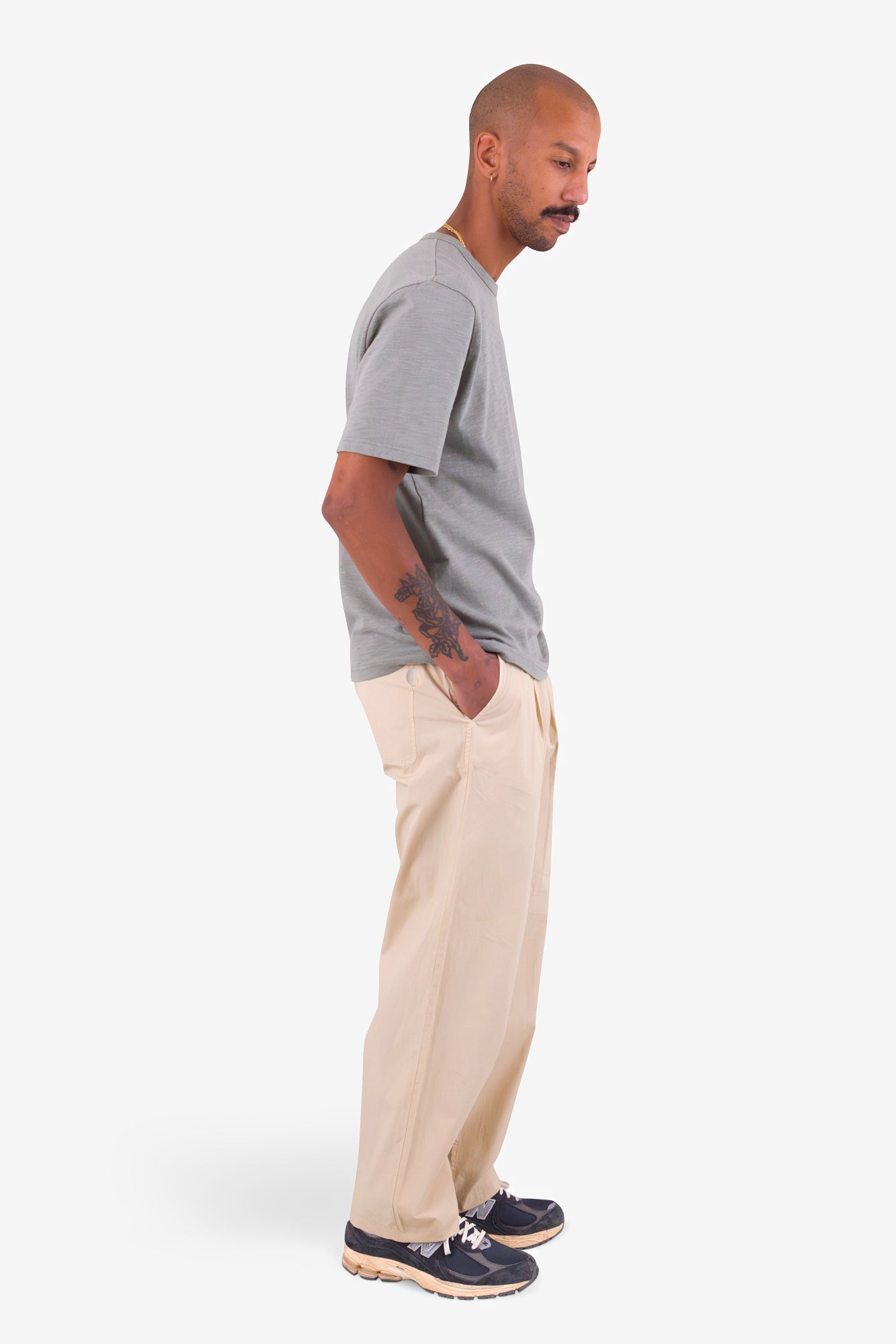 Wide, loose fit trouser with single pleats and a straight leg shape.